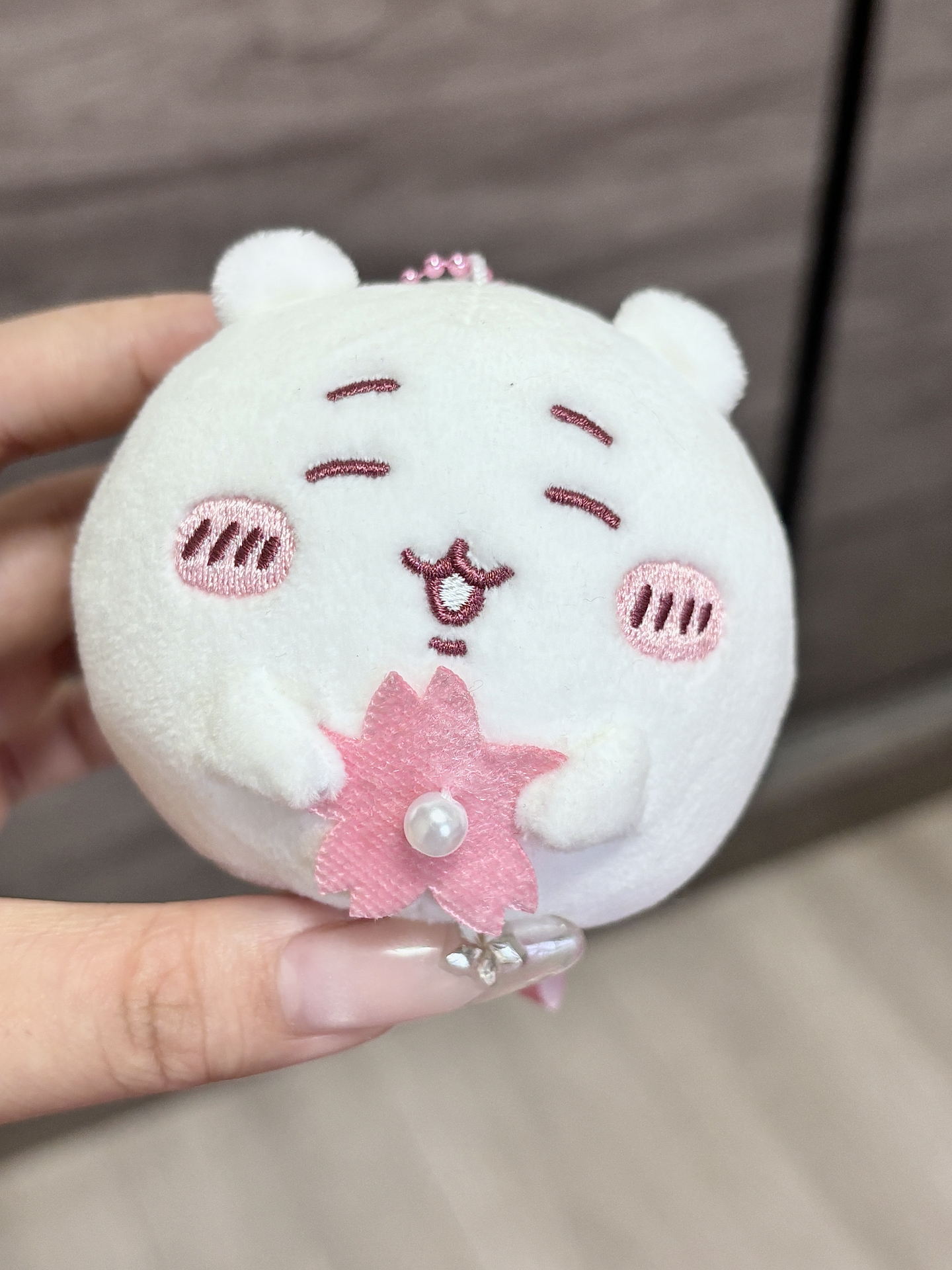 是名创优品和chiikawa樱花限定 吉伊圆滚滚的手感无敌! 就是大福本福 手里还捧着一朵樱花 表情也是粉色的哎 超可爱的。图源网络侵删