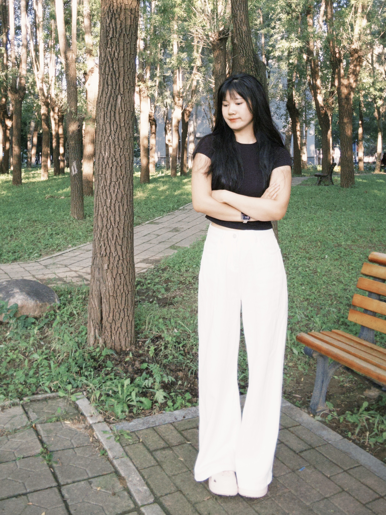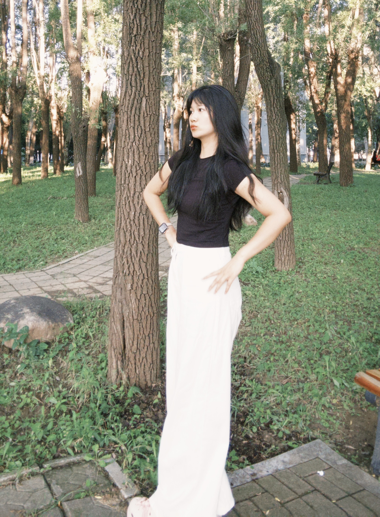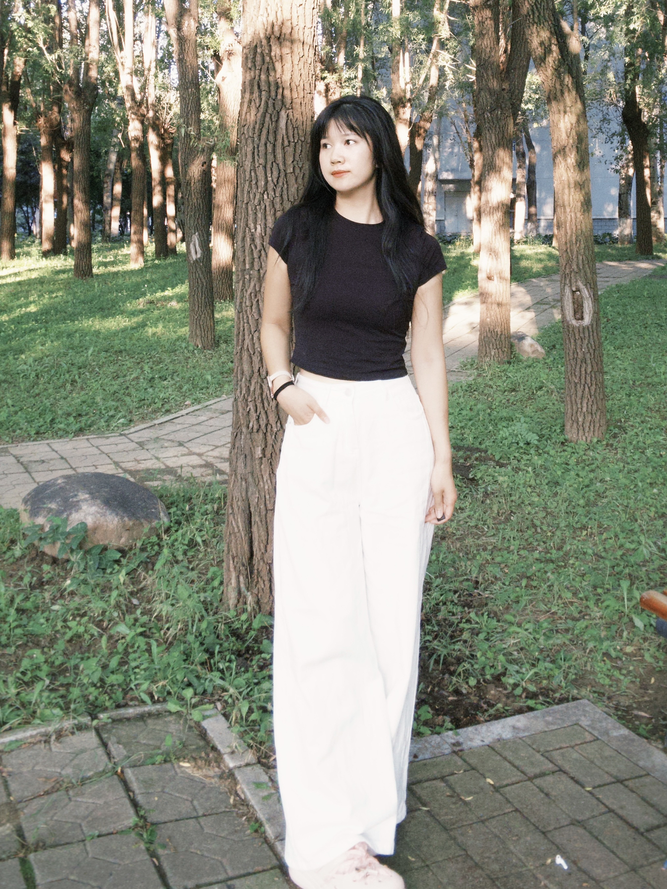 谁懂这个天气出去玩的魅力呀 感觉一整个吸氧满满的~ 黑色小短袖搭配白色裤子简简单单的出去玩啦!