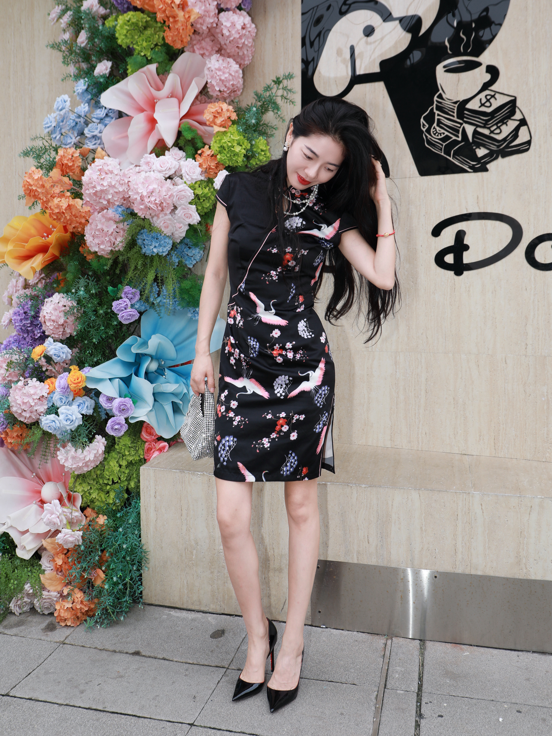 当红唇吻过大地时 优雅有了具象化的表达👏 数不清这是本月的第几双高跟鞋👠 莫代尔这双高跟鞋👠 确是独特又扎眼的一双 黑色漆面,在不同光线下 呈现出了不一样的光泽和色调 而它又是那么的百搭,即使上身旗袍 那种张扬又冷冽感扑面而来 配上红色的水钻鞋底 藏着隐于步履之间的闪耀星河🥰 我常常觉得莫代尔的高跟鞋就像一朵暗夜玫瑰 足弓处的那抹叛逆红 在步履间肆意的绽放着烈焰与浪漫💕 红底鞋才是私藏的高跟鞋密...