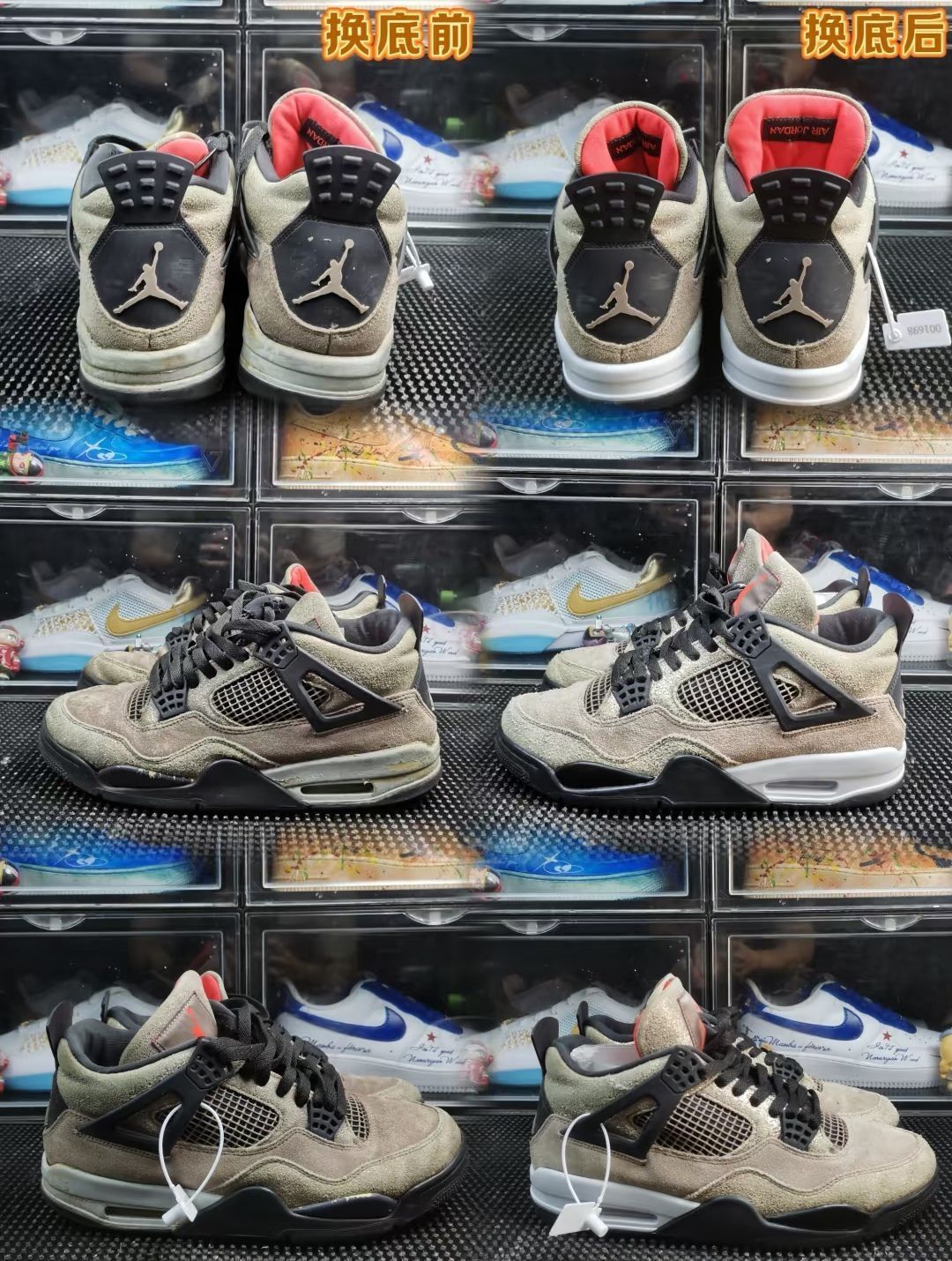 你的AJ4鞋底磨平了回忆?别急,专属换底修复来了!采用原工艺大底,精准匹配原厂数据,无缝贴合鞋身,拒绝开胶隐患。专业团队手工操作,保留经典脚感的同时,让爱鞋重获新生✨。无论是OG白水泥还是经典黑红,都能恢复巅峰颜值!上脚依旧能打,继续陪你征战球场~