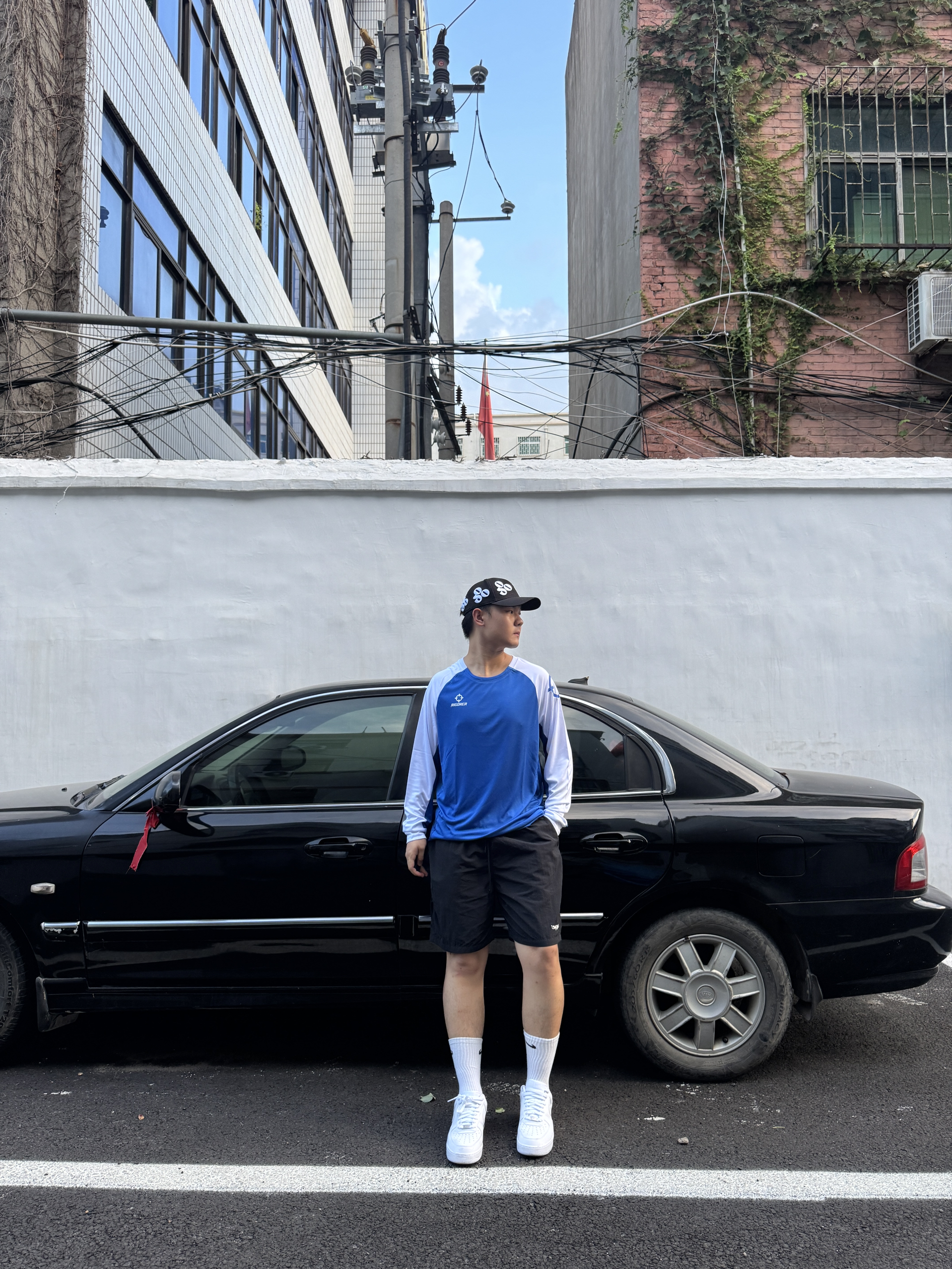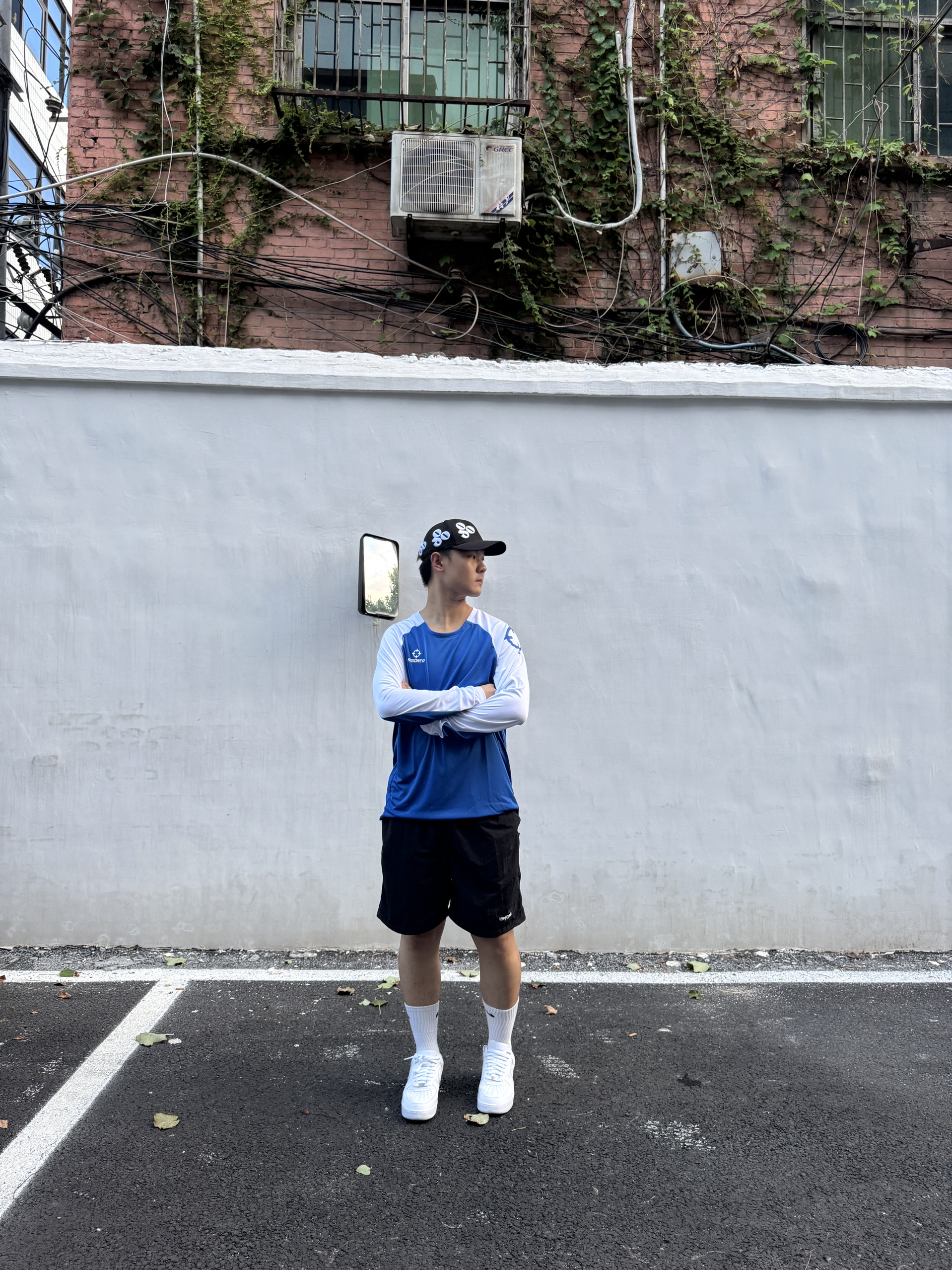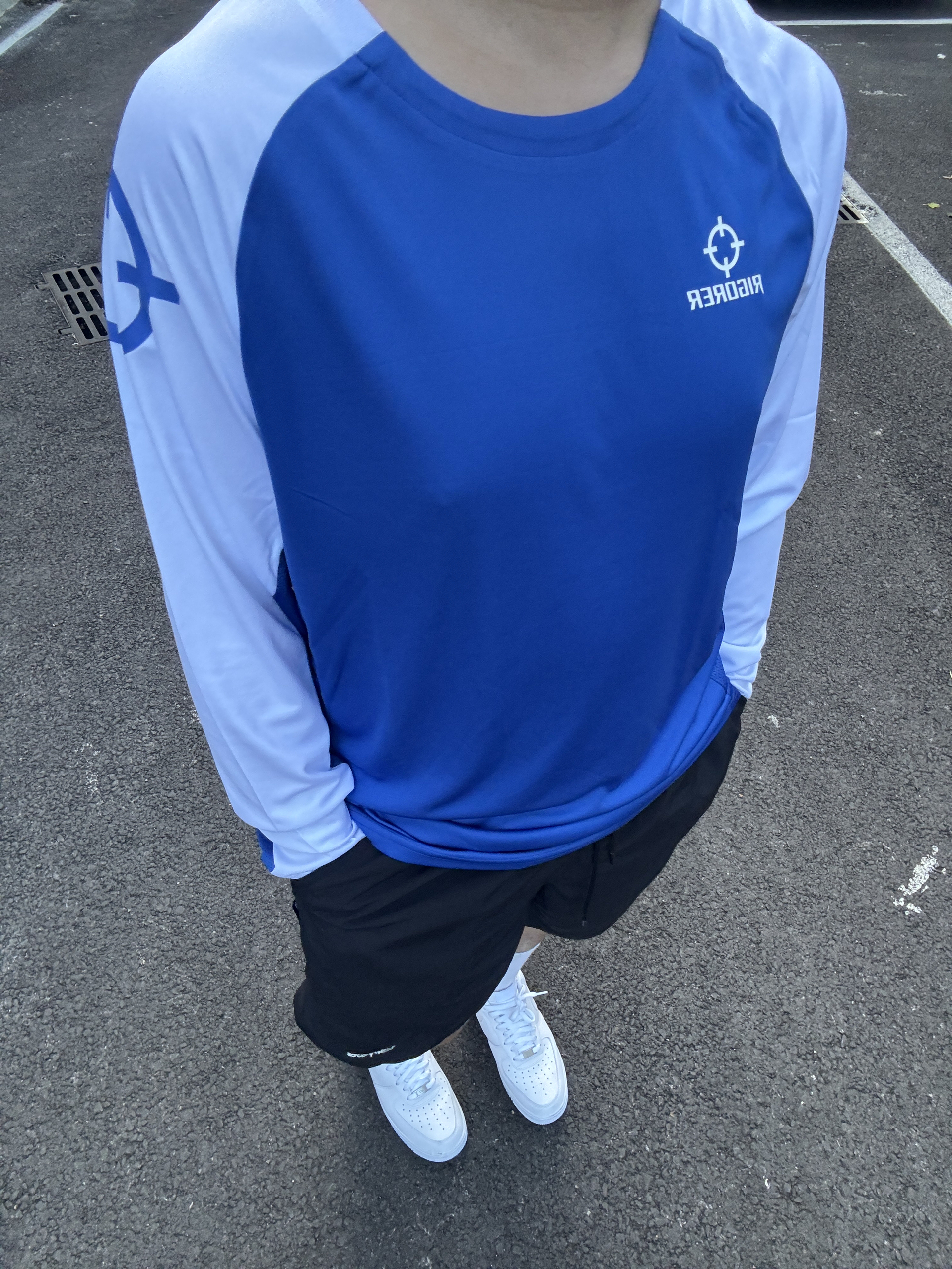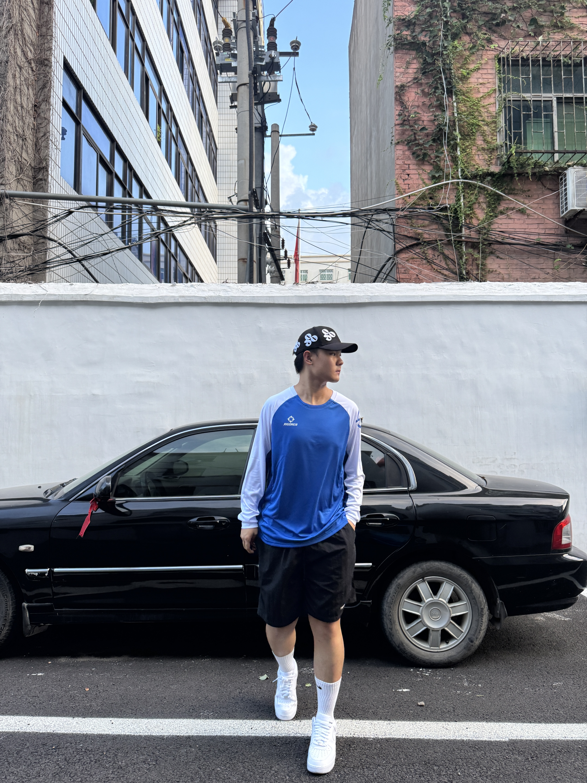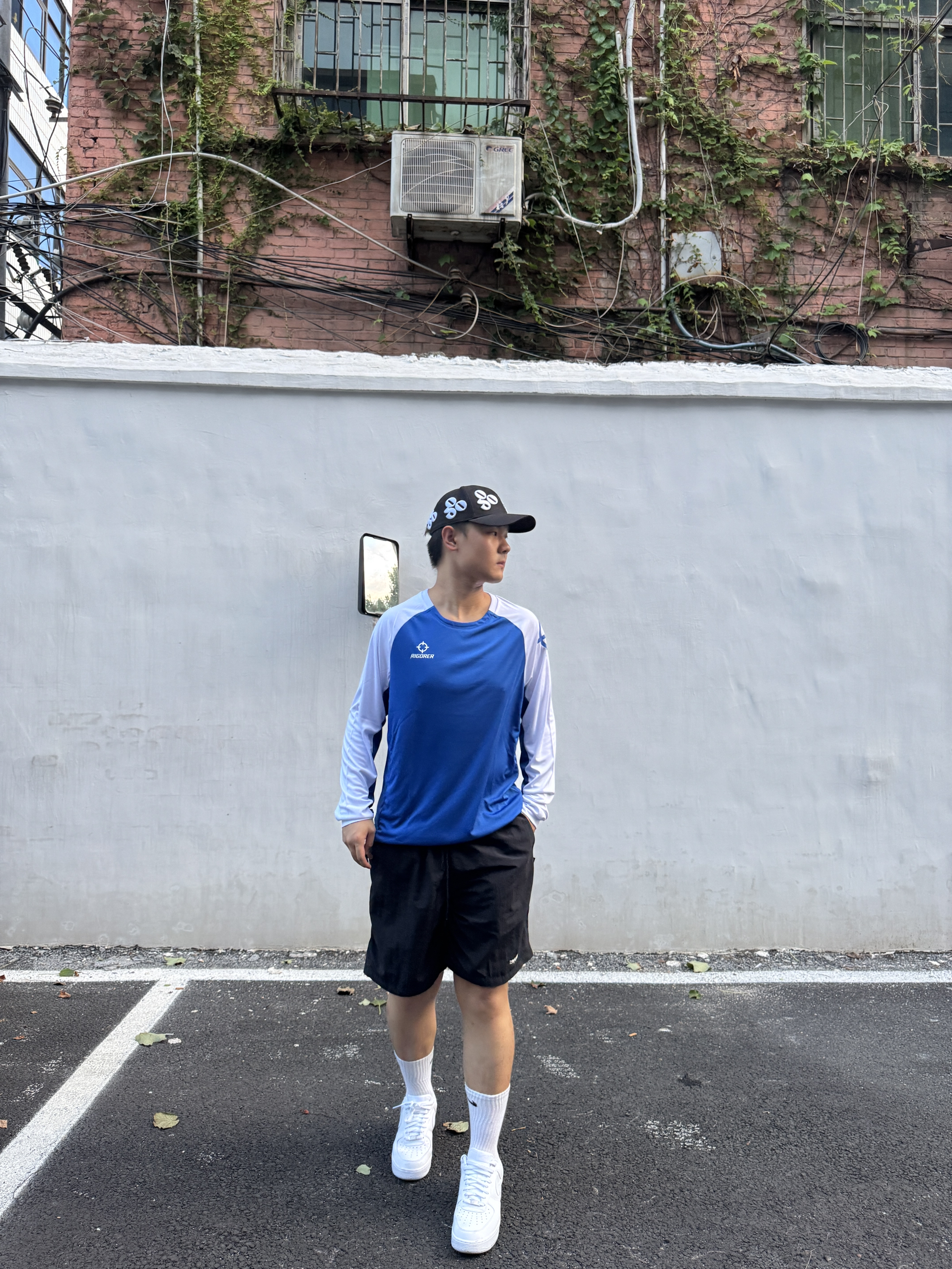 今天穿的是 准者 RIGORER 这个配色也是搭配的很好 感觉跟天空的颜色很融合 穿上之后搭配运动鞋也是很帅 日常穿起来也很舒服 很亲肤,透气性不错 我身高180体重80kg穿xl码