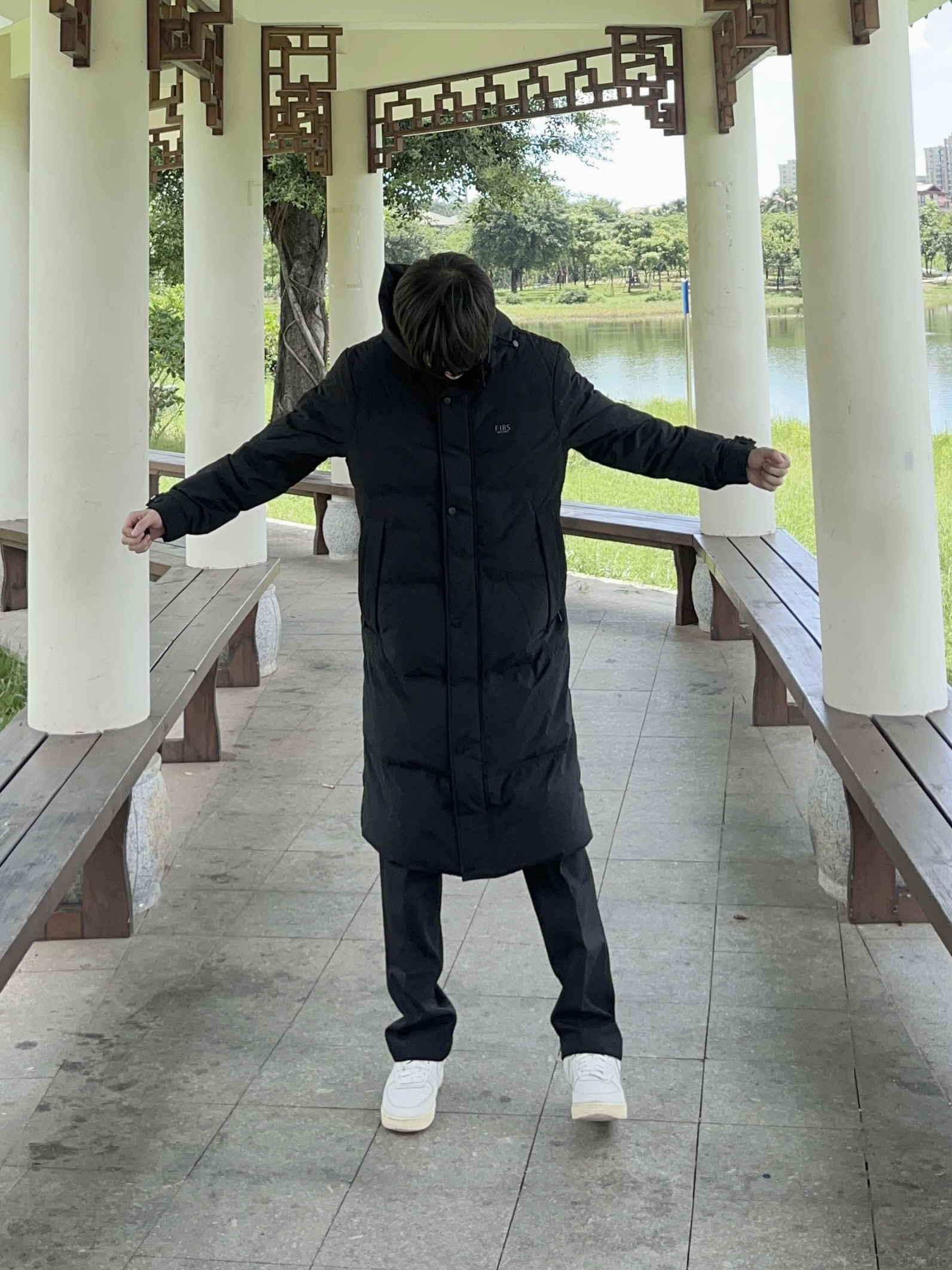 今日份穿搭分享look👀 衣服是 FIRS 的黑色长款羽绒服卫衣👔 采用鹅绒面料保暖抗皱 三防科技质感满满🔥 再上身一条 FIRS 休闲直筒裤修饰腿型👖 一套搭配下来 秋冬出街预热一下🤩