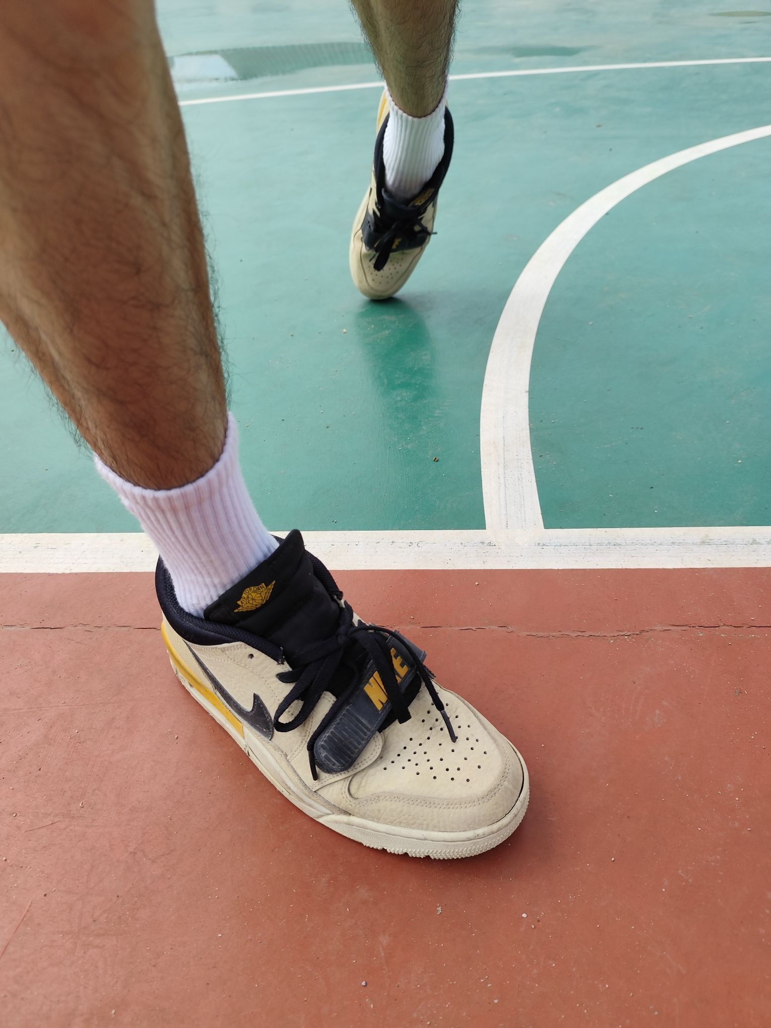没看错,这是一双不打篮球的篮球鞋,穿了一年多了,复古篮球鞋,颜值超高。 但它的材质,我不穿它打球。我平时穿41码的鞋子,这双故意选大一码,日常通勤穿,脚感更舒适,夏天也不会闷脚。 鞋的抓地力也不错,今天地面有积水,但可以放心穿。 看着明媚的阳光好想打球,有穿这双打球的吗?[思考_blue] #一人一张球鞋美照