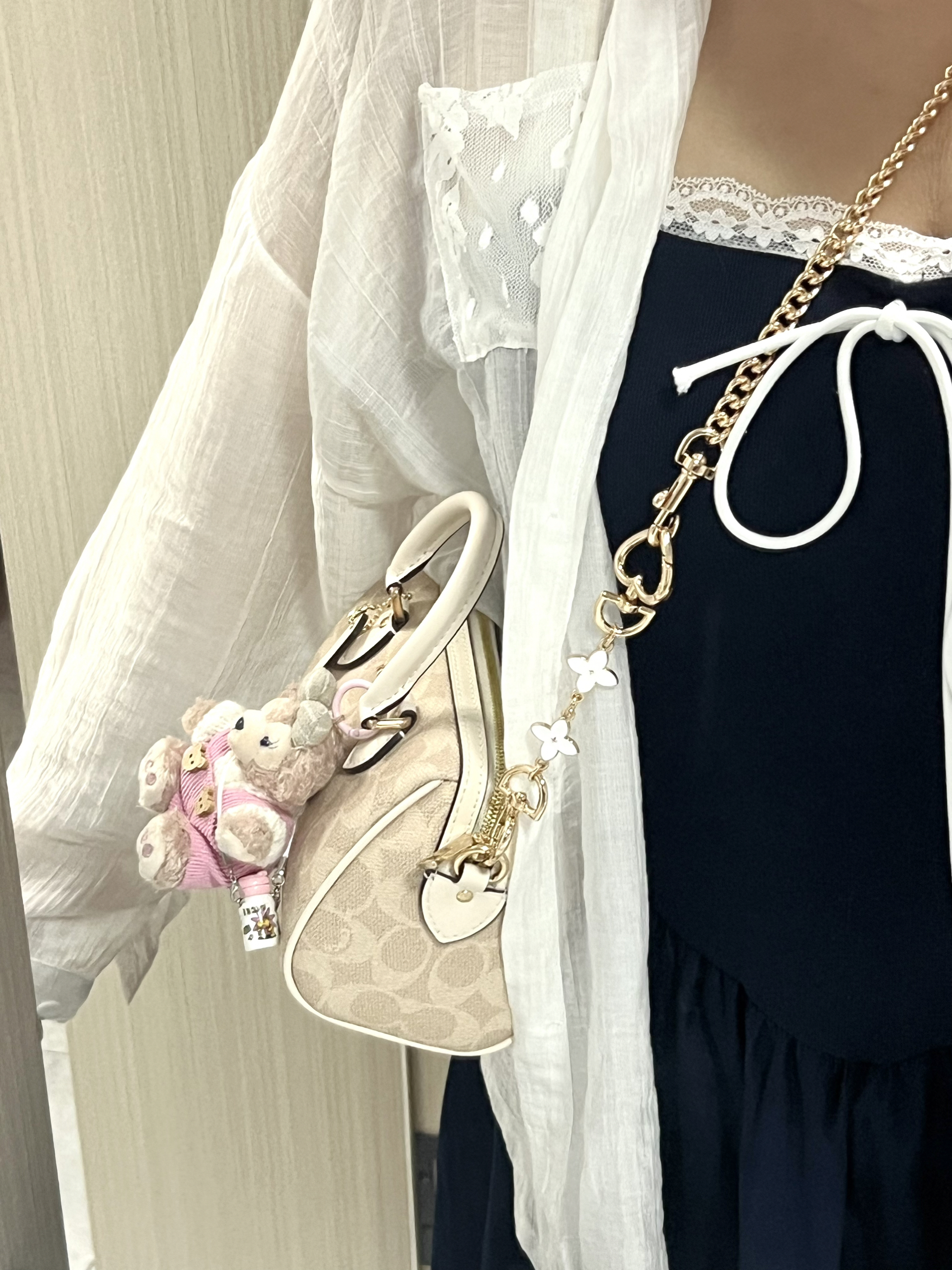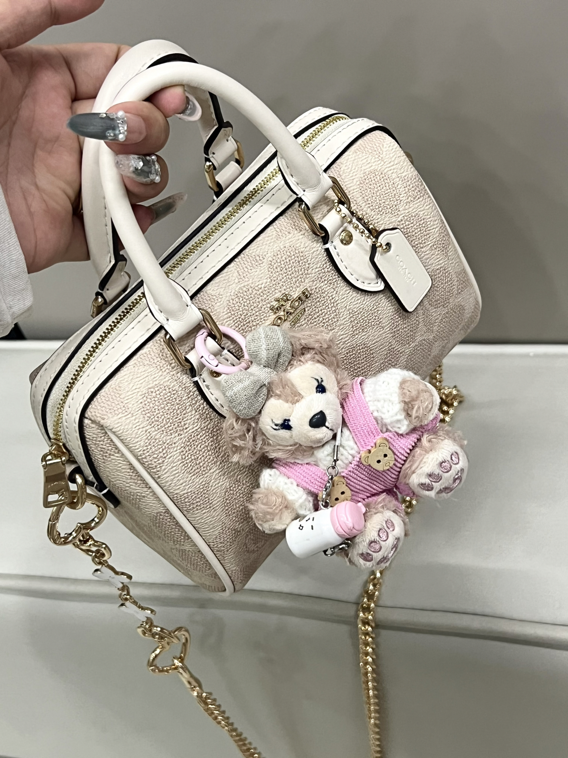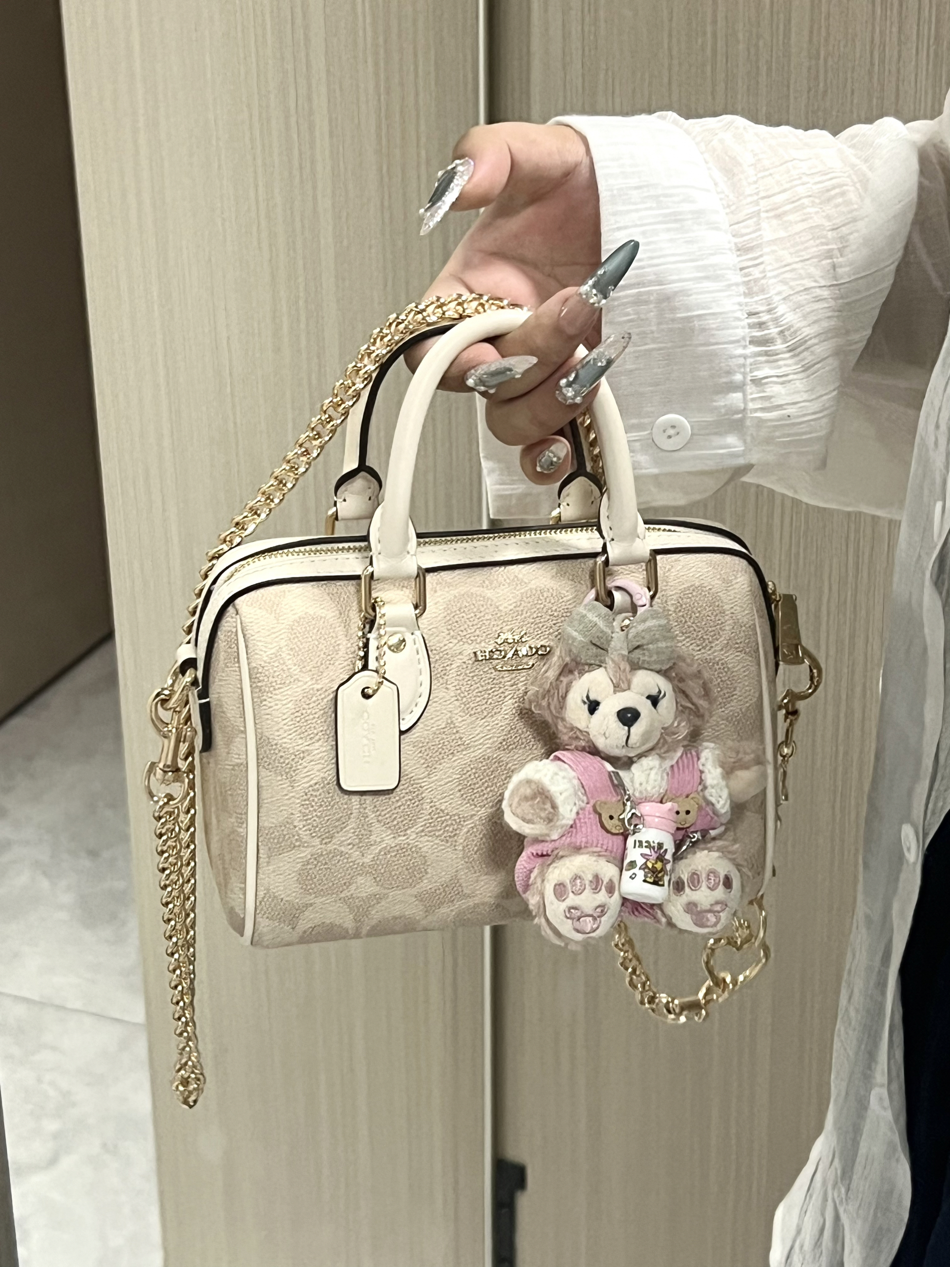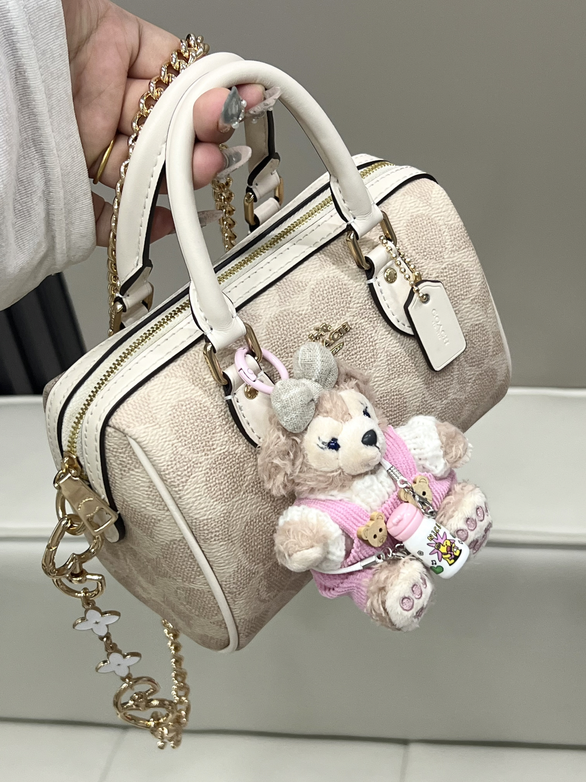 本篇笔记关联了Disney/迪士尼 达菲和他的朋友们系列 雪莉玫 毛绒挂件 坐姿 东京迪士尼、适用于蔻驰麻将包延长装饰链条包链改造包包腋下替换肩带单买配件 直金色链+爱心扣白色款长度60CM、Coach Rowan 18 小号 涂层经典老花印花拉链开合PVC拼皮单肩斜挎手提包 奶茶拼白等商品,为用户提供真实的使用体验和购买参考。