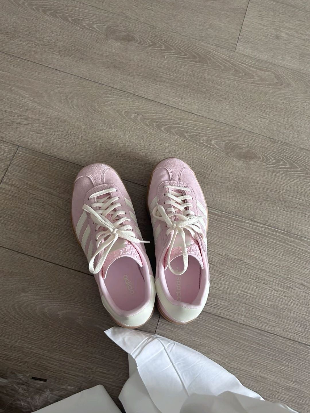 救命!这双阿迪粉鞋真的戳中我少女心了! 拿到手就被这温柔的粉色拿捏住,麂皮质感摸起来软乎乎的,上脚舒适度绝了,搭配我这条浅蓝牛仔裤,休闲又甜妹,出门逛街一整天也不觉得累。 鞋舌的三叶草标设计好特别,系上鞋带蝴蝶结,感觉自己就是元气少女本人。镜面一照,连倒影都这么好看,每次穿它都忍不住多臭美一会儿。 真的是近期心头爱了,日常出街或者和小姐妹约会都超合适,每次穿都被问链接,这种被认可的感觉...