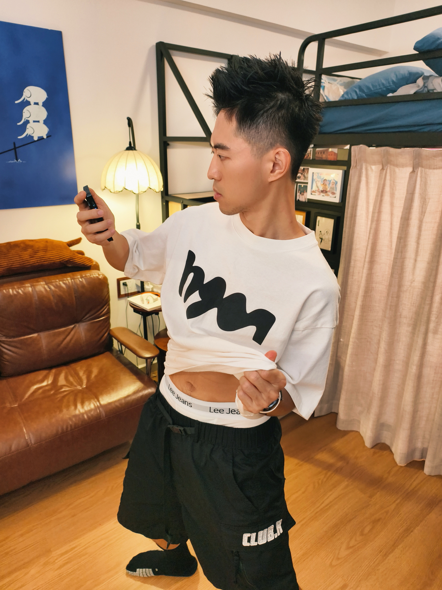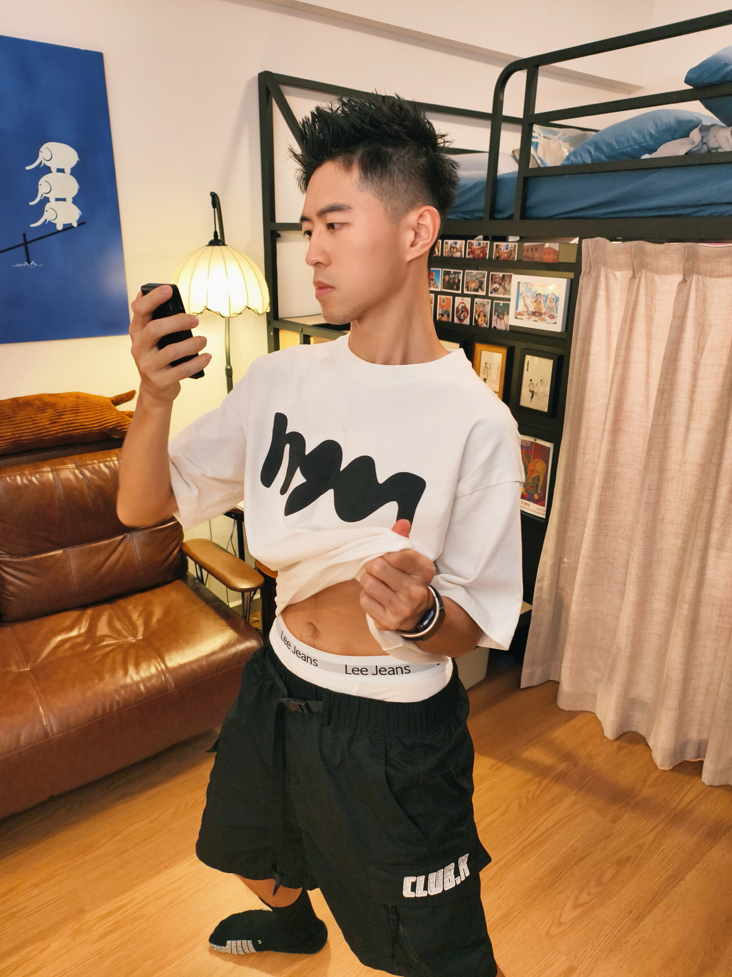 OOTD|今天走少年感风👦 👕白色字母印花短袖好有少年感!简约的黑色字母设计,干净又清爽,宽松的版型穿起来随性又自在,少年感直接拉满。 🩳搭配黑色短裤,口袋上的白色字母细节感满满,和上衣搭配起来和谐又有层次,青春又活力。 🩲里面是一条 #Lee 白色纯棉内裤!面料透气舒适,穿起来还挺舒服的!而且还是内裤礼盒包装设计,想要送对象也挺合适的! 🧦黑色长袜和整体穿搭适配度超高,为造型增添了一丝...