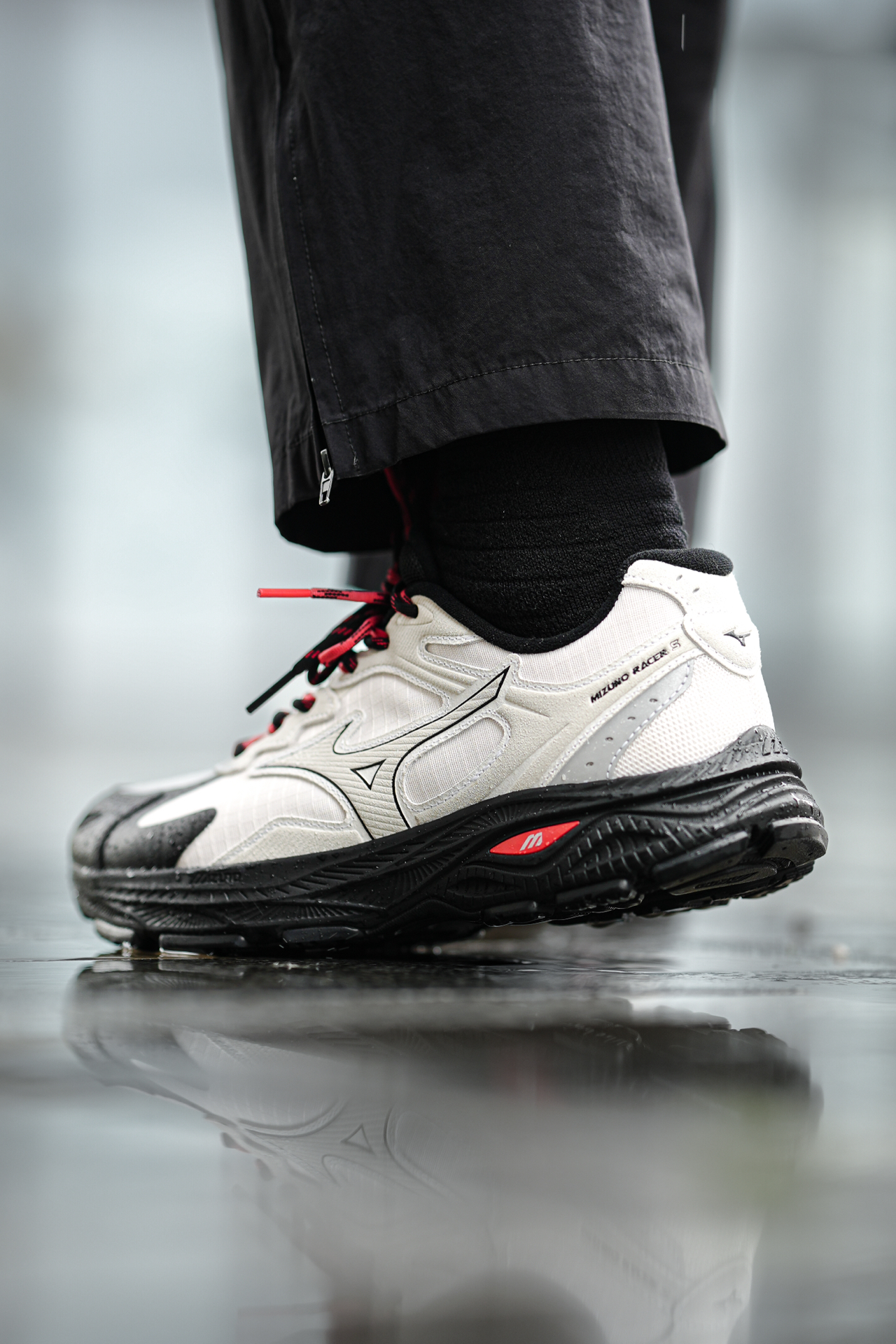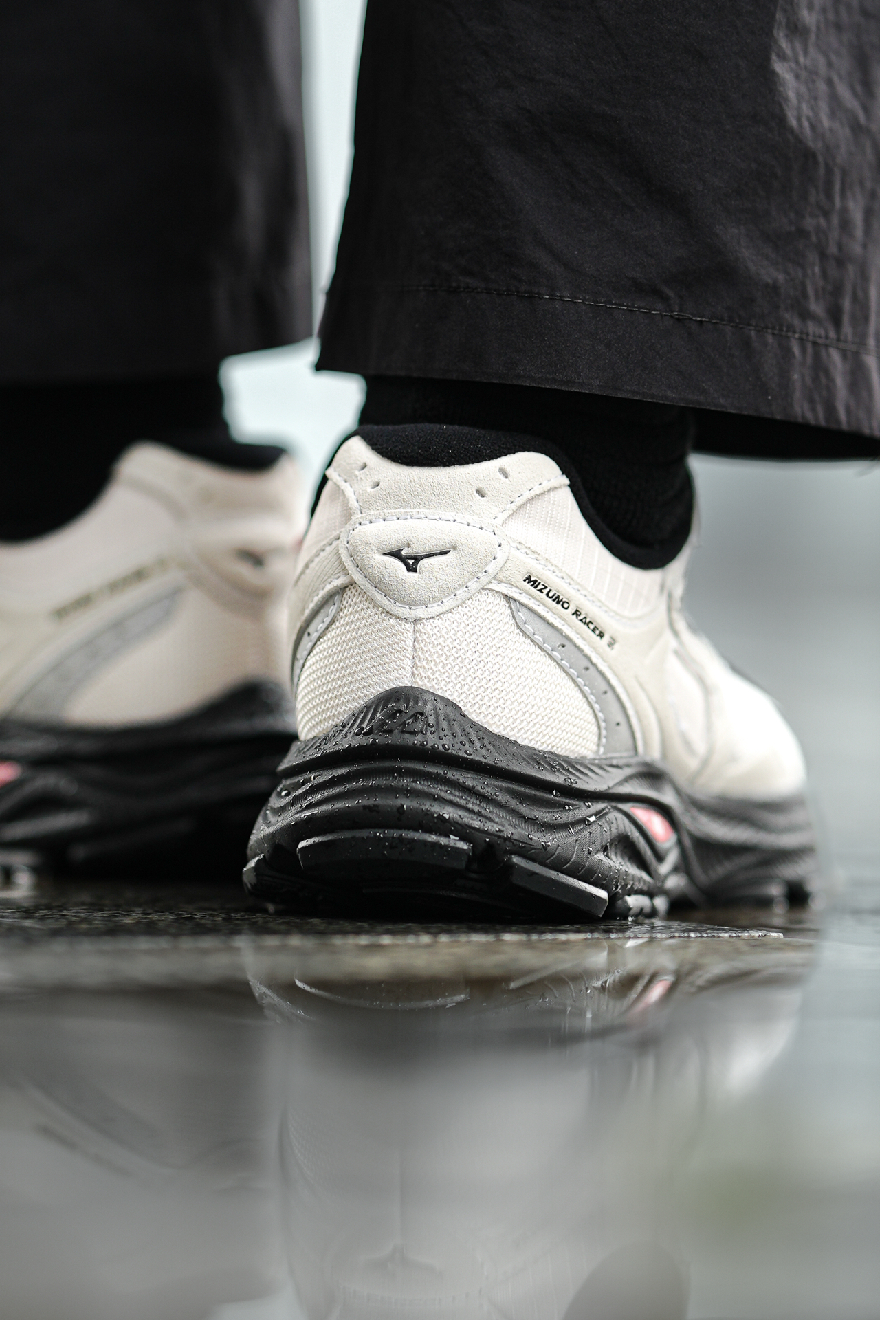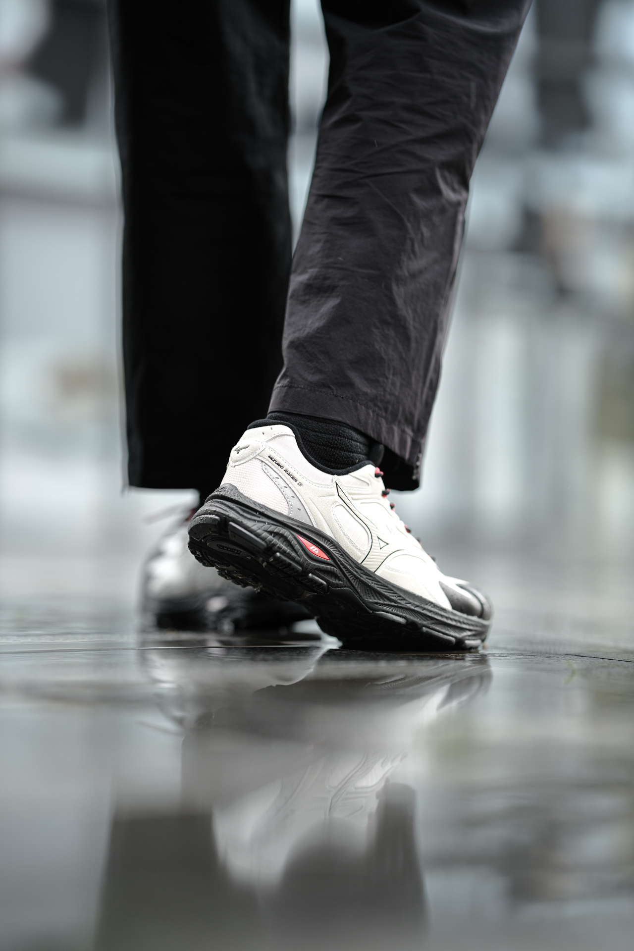 ☔️这一周成都都在下雨! 💼出门通勤首选了这双美津浓RACER S的防泼水版! 真心太实用了,应对雨天路面真不打湿鞋内,干干爽爽! ⚠️但要注意,只是防泼水不是能泡在水里不渗透哈! 👟外观上比较偏城市户外山系,这个配色也蛮特别的,但搭配还是比较简单,图2-3兄弟们觉得我这样穿色调如何呢? 🚶脚感上偏轫一点,没有过软的感觉,这样长期走支撑会比较好不累脚酸脚,而且中底是比较厚的,有2CM增高效果还不错...