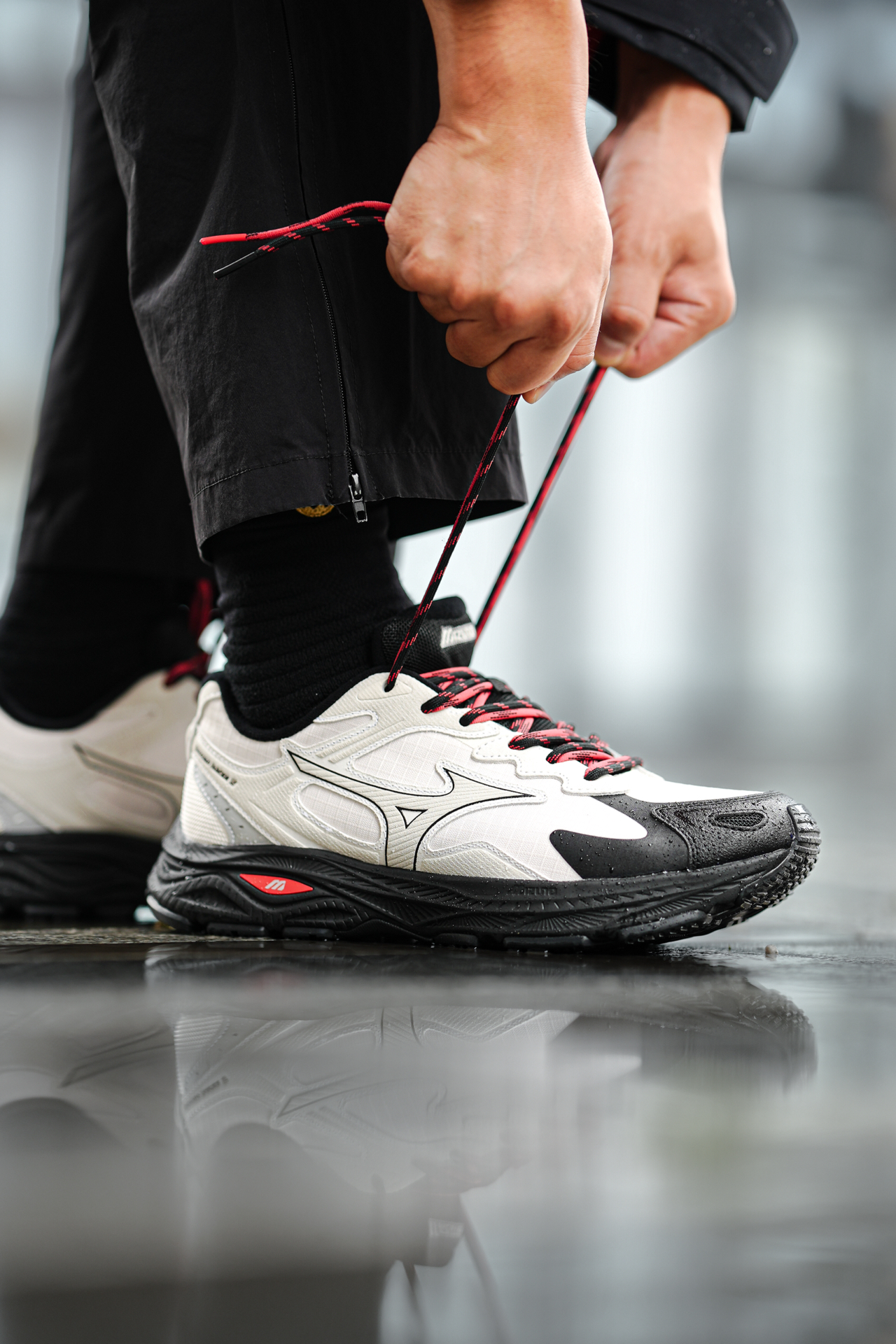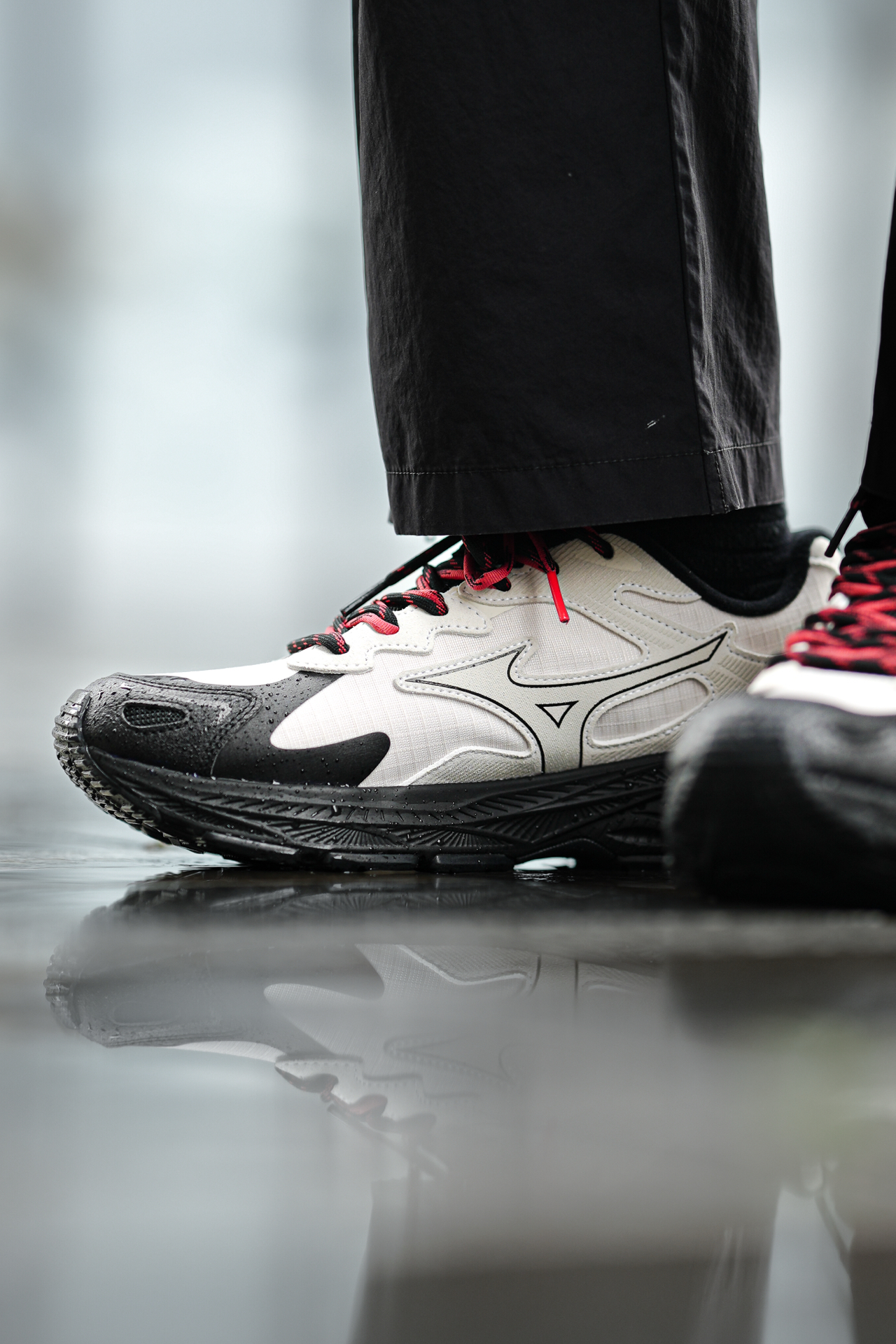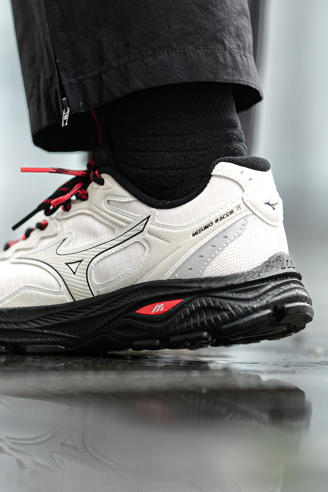☔️这一周成都都在下雨! 💼出门通勤首选了这双美津浓RACER S的防泼水版! 真心太实用了,应对雨天路面真不打湿鞋内,干干爽爽! ⚠️但要注意,只是防泼水不是能泡在水里不渗透哈! 👟外观上比较偏城市户外山系,这个配色也蛮特别的,但搭配还是比较简单,图2-3兄弟们觉得我这样穿色调如何呢? 🚶脚感上偏轫一点,没有过软的感觉,这样长期走支撑会比较好不累脚酸脚,而且中底是比较厚的,有2CM增高效果还不错...