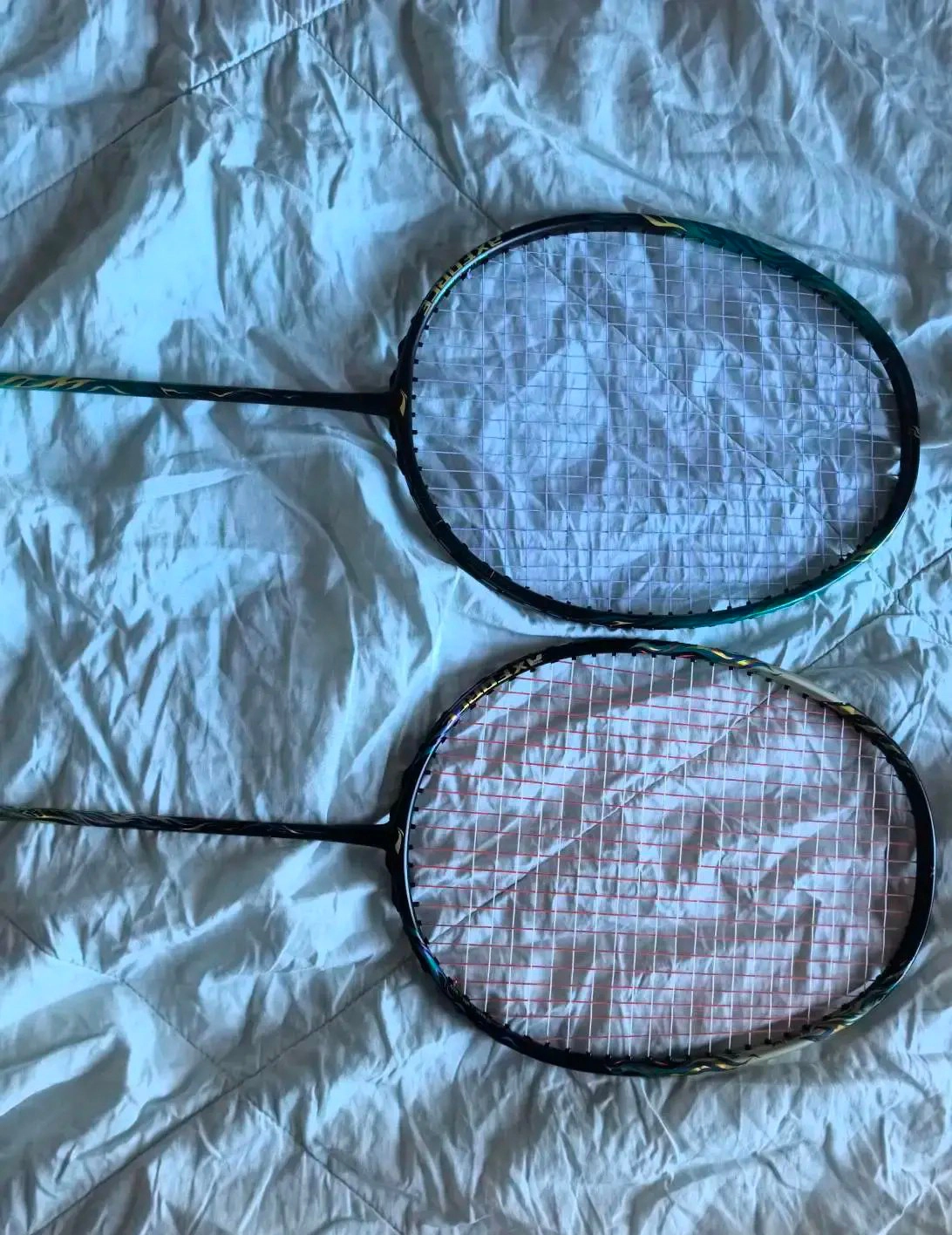 我入了雷霆100二代羽毛球拍~漆水是哑光磨砂,没一代亮但打感更友好!中杆软点控球舒服,高磅也不震手,进攻防守都不赖,业余党可冲👏!