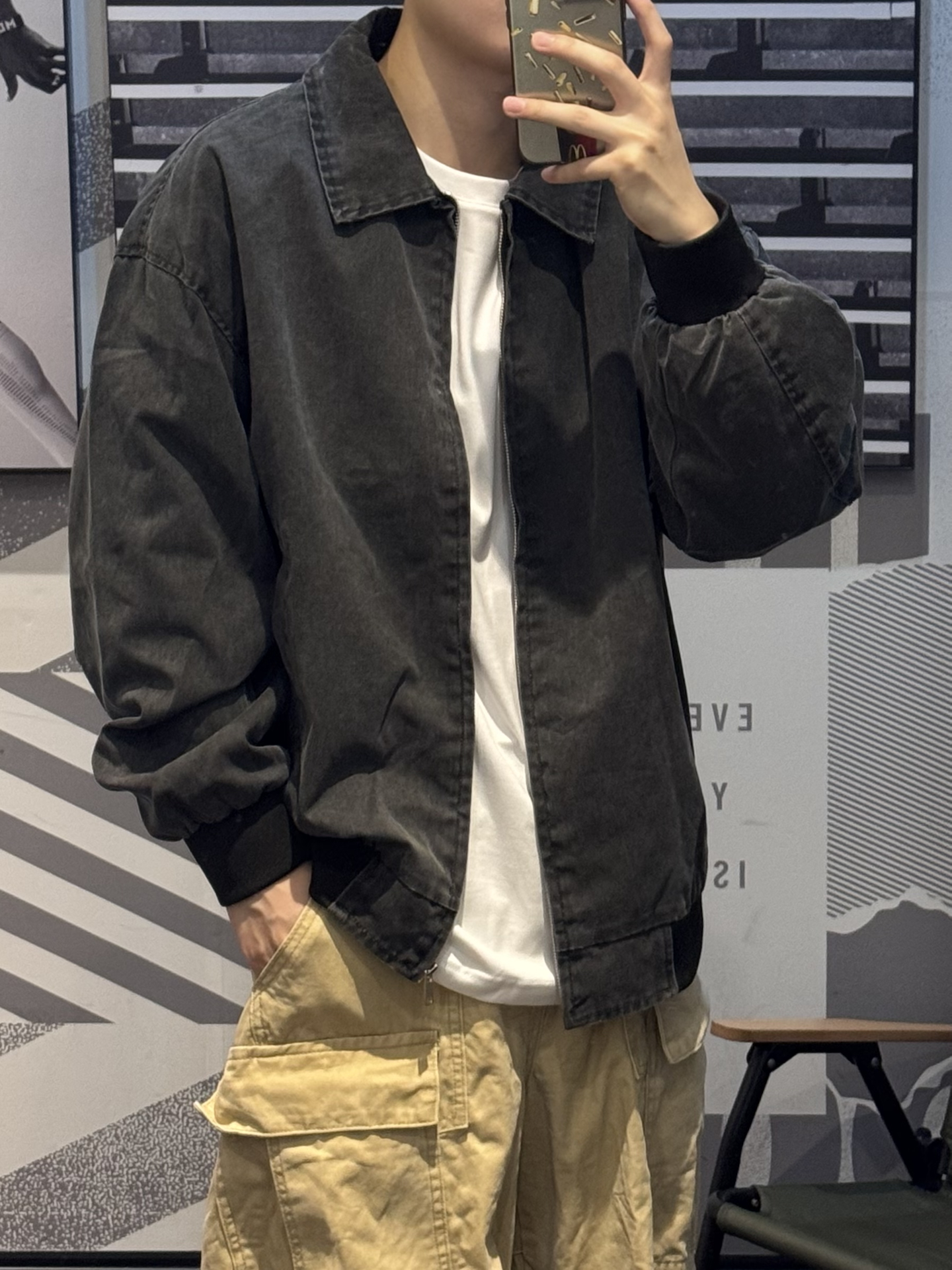 分享一件宝藏外套 #Warrior/回力 水洗黑色自带做旧复古感~ 夹克版型下摆是收边设计 贼拉显腿长 翻领造型内搭一件白T恤or卫衣都超合适 一件入秋 #买到了我的人生外套 #一件单品横跨夏秋 #预热一下秋冬穿搭 #3秒简单穿出高级感 #男大学生秋日OOTD