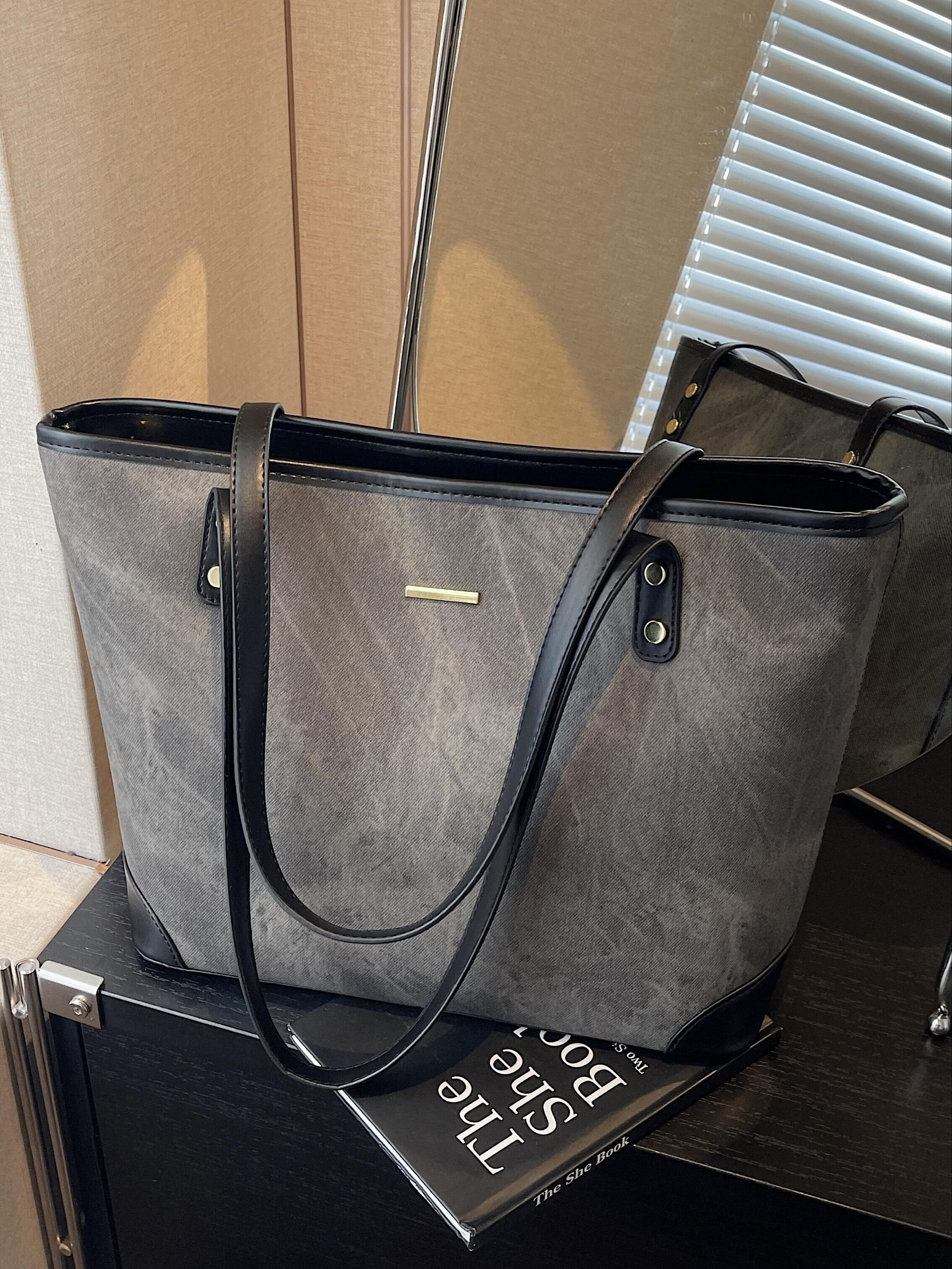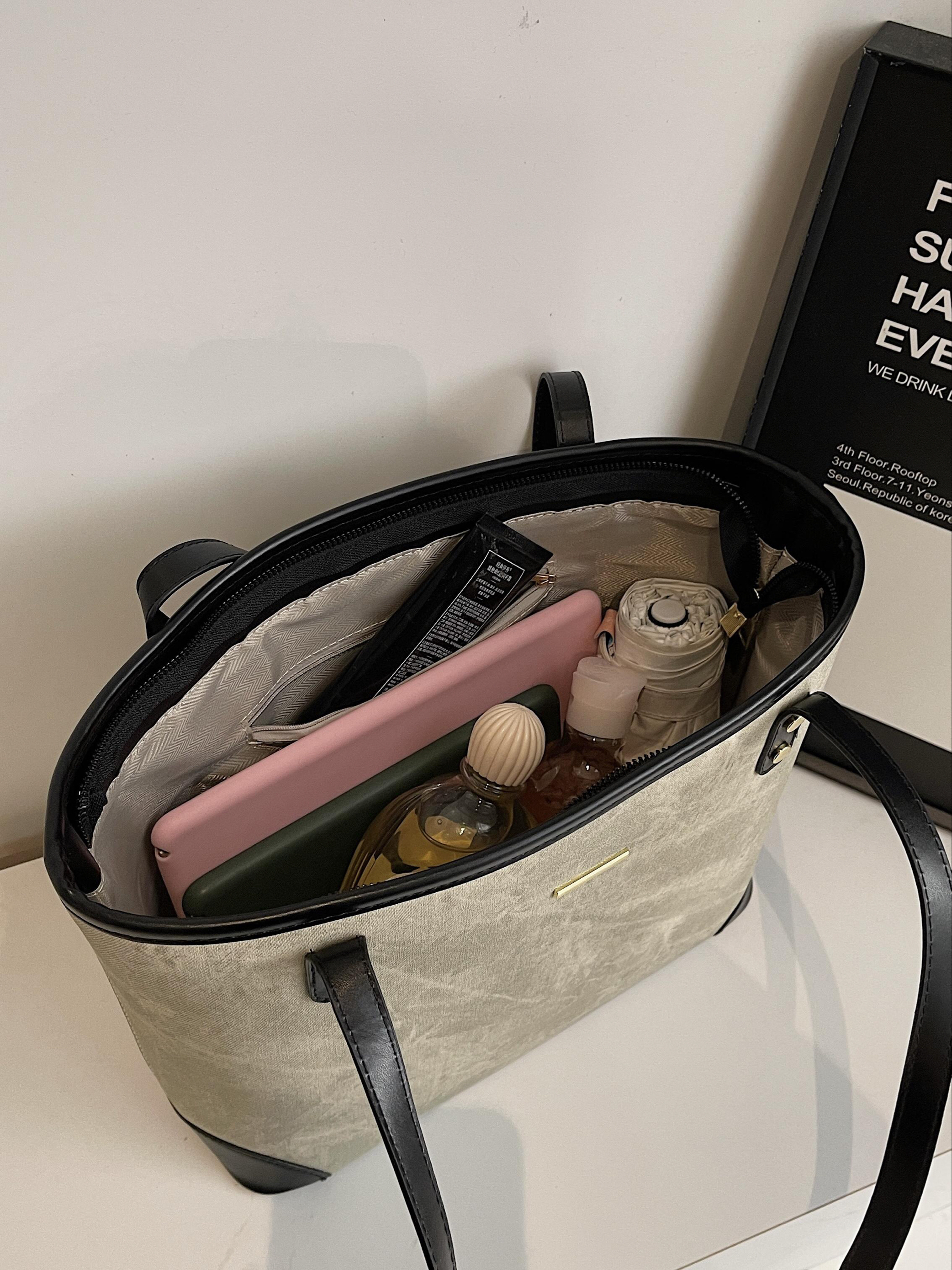 尊滴爱惨了介只大容量托特包 容量很大 书本iPad都能放下 面料硬挺不塌质感敲好 日常通勤背确实不错 实用又百搭 学生党上课背也🆗