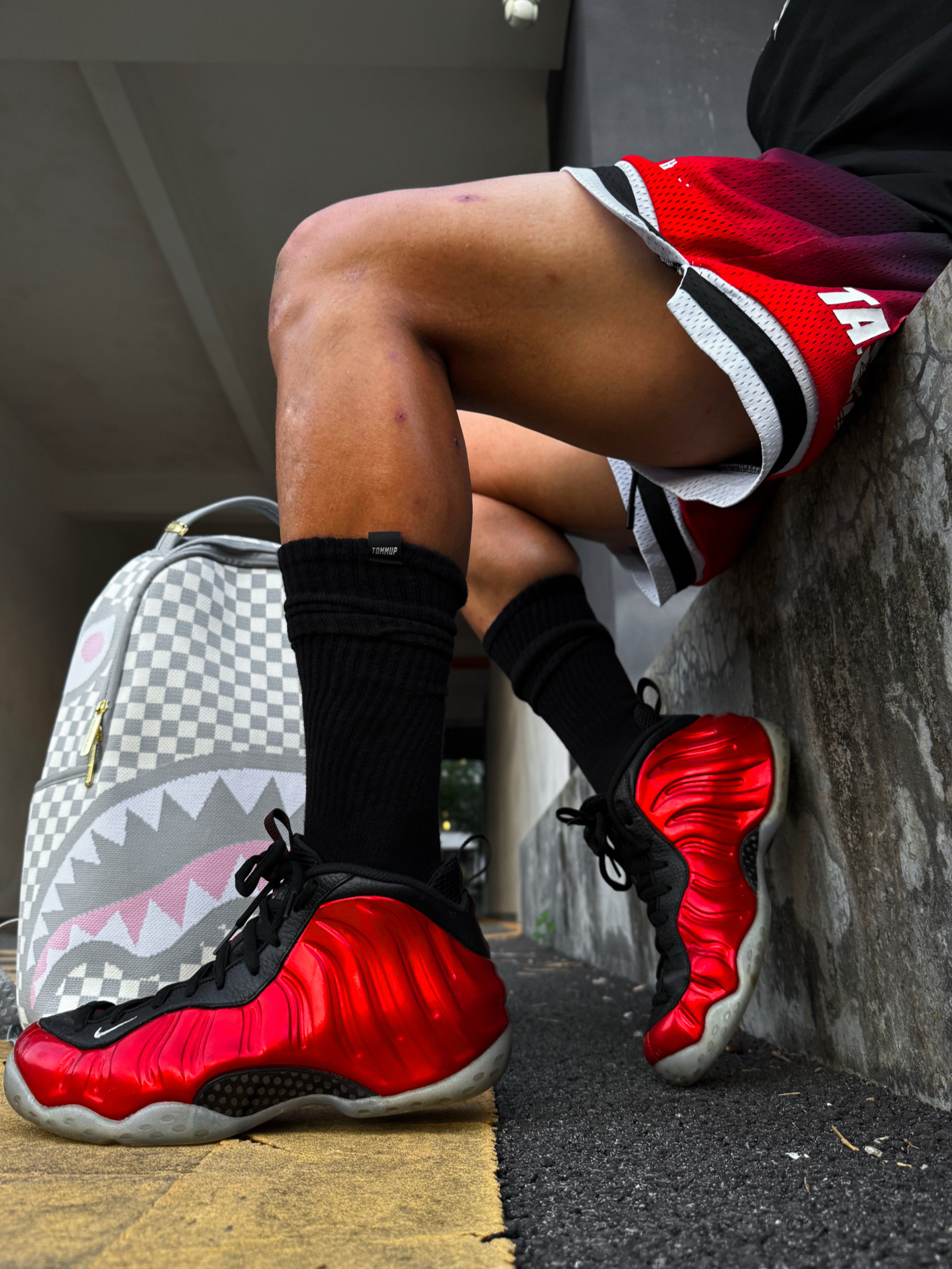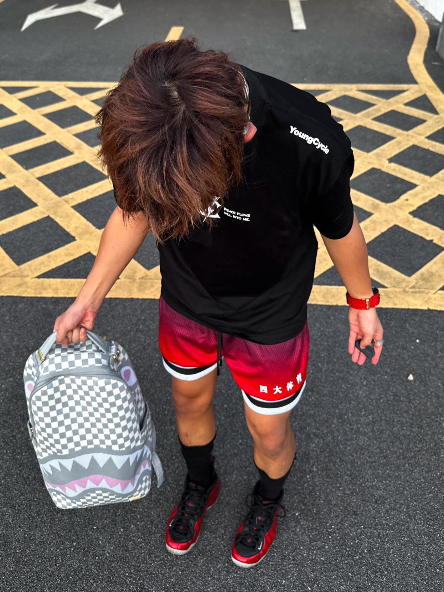 Hey bro‼️这里是小熊的球鞋日记 🩳红色渐变星星美式四分裤 热情似火 👟上脚自带金属质感的电光红喷 标志性沟壑造型 辨识度依旧超高 🎒鲨鱼大logo棋盘格背包 潮流有设计感 今天这双电光红喷超能出球鞋大片♨️ #一人一张球鞋美照 #每日拍张球鞋照 #红黑配色鞋子太好看了 #今天只发鞋 #球鞋大片