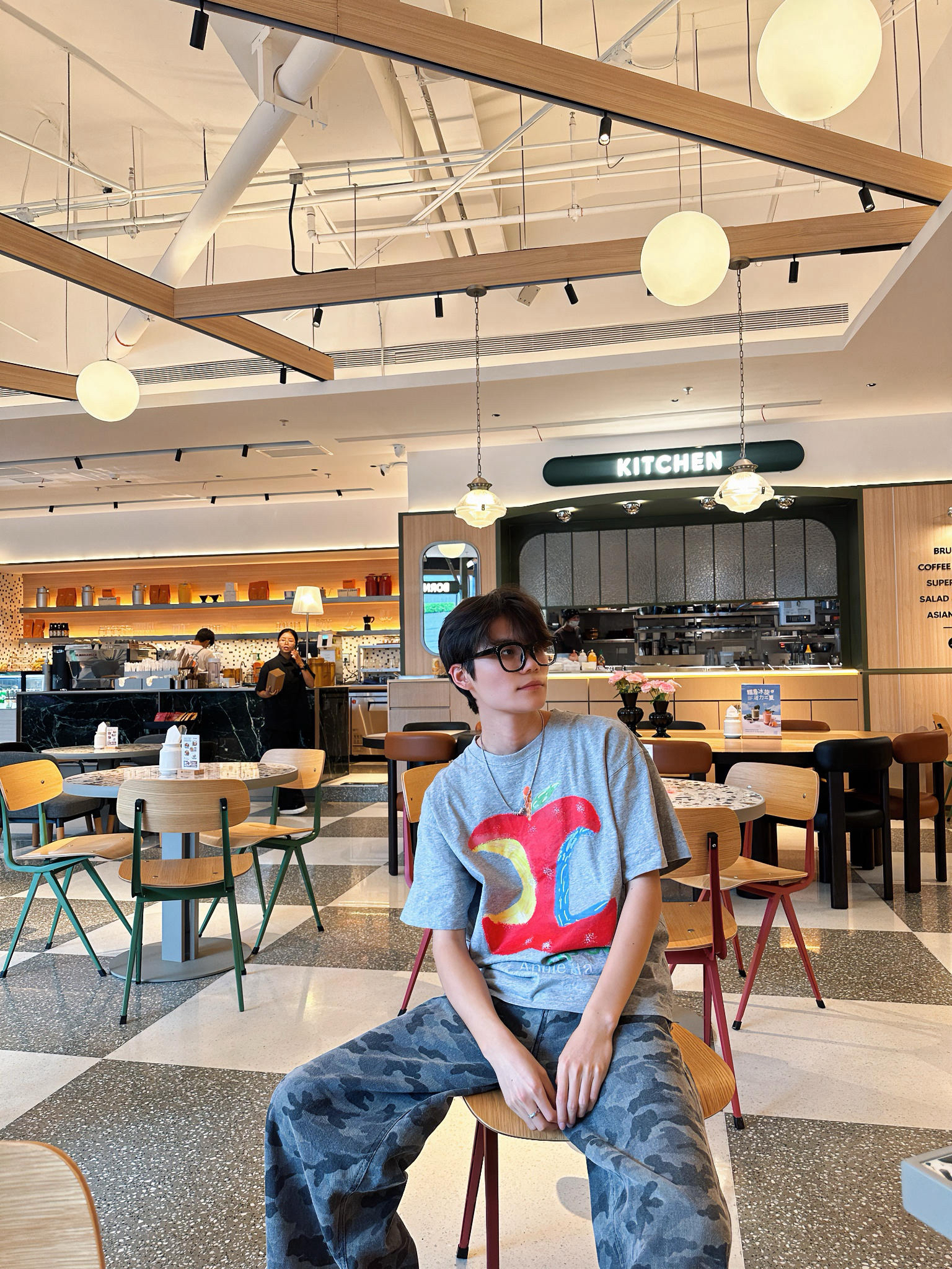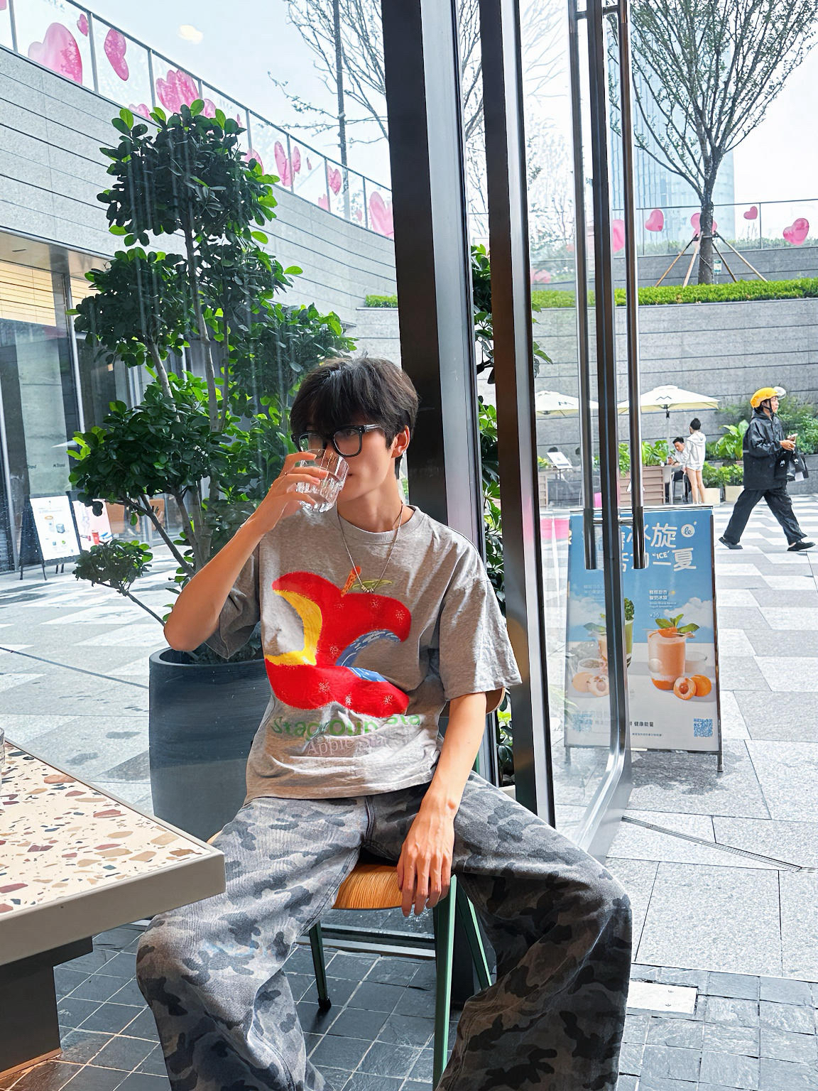 灰色苹果🍎T趣味吸睛,迷彩阔腿裤拉满松弛感,搭配厚底洞洞鞋,潮酷叠穿,轻松打造街头达人既视感,出街炸场就靠这一套!💯