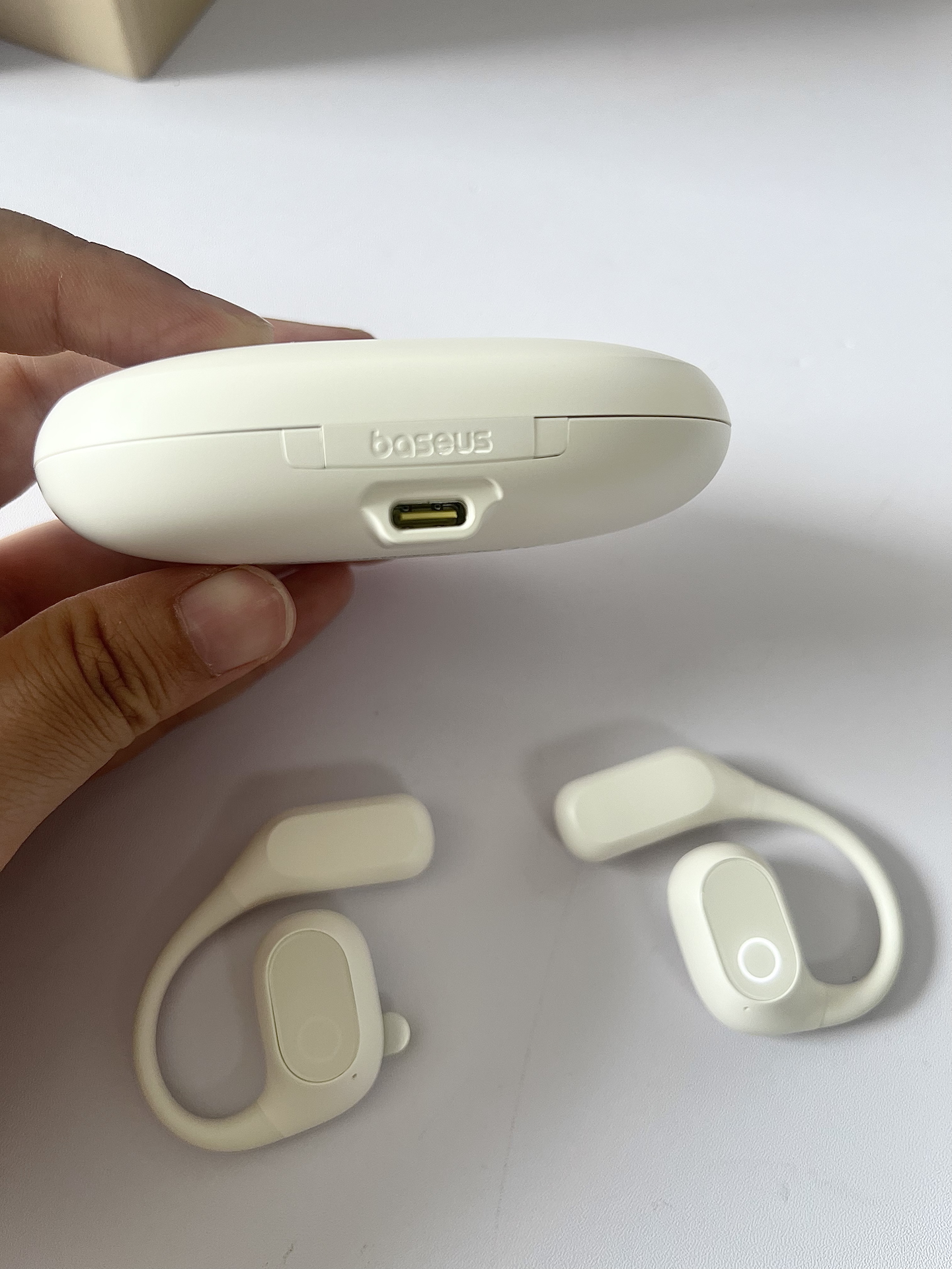 这段时间用倍思这款挂耳式耳机,不入耳设计戴久了也没负担~充电盒小巧便携,续航满足日常 运动时能感知周围,安全感拉满,听歌通话都流畅 不过要是音质解析再细腻点就更完美啦~