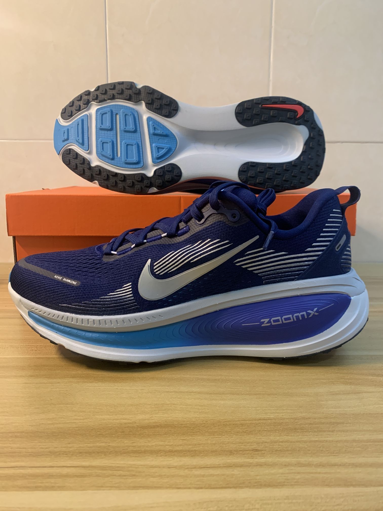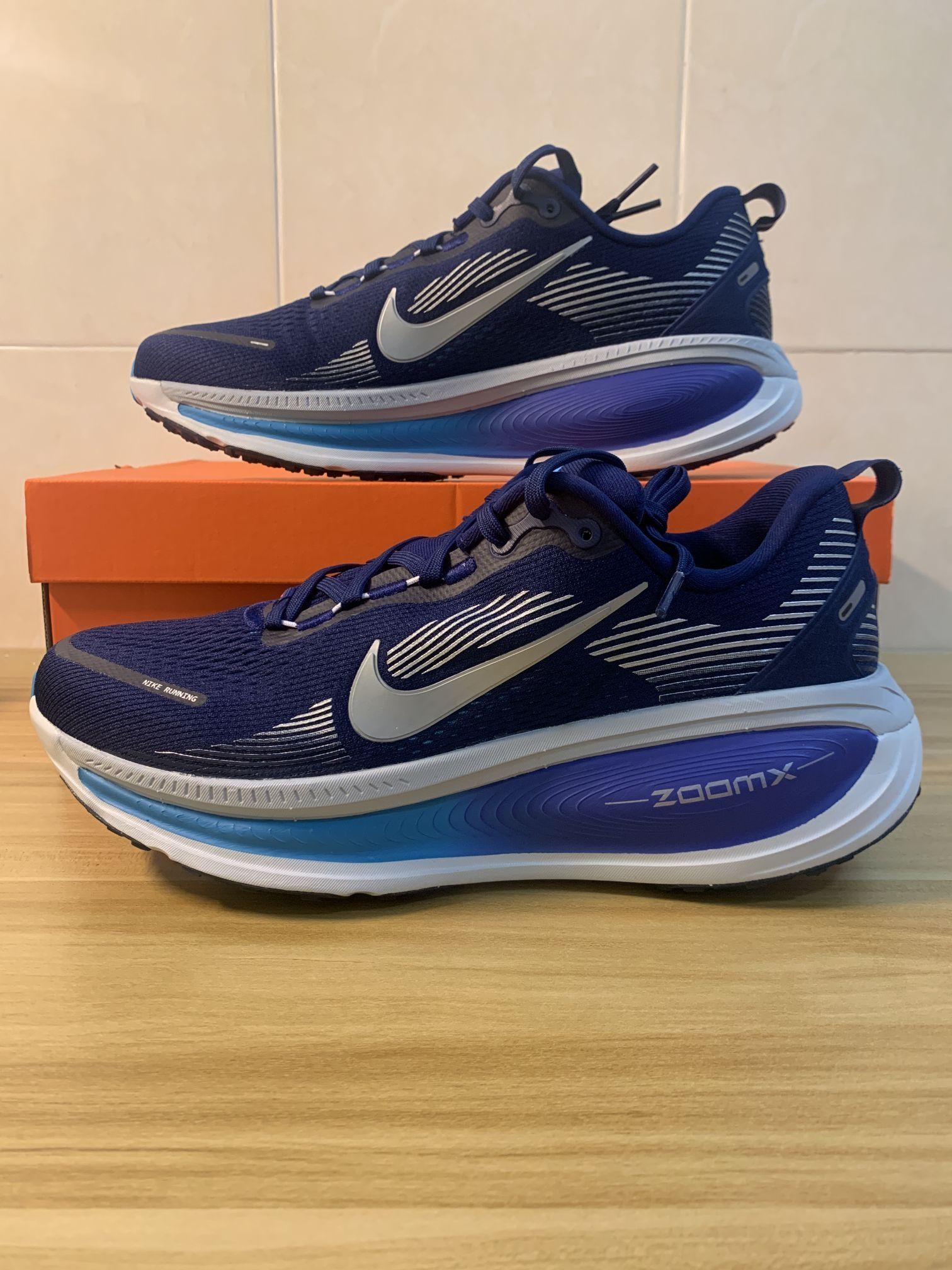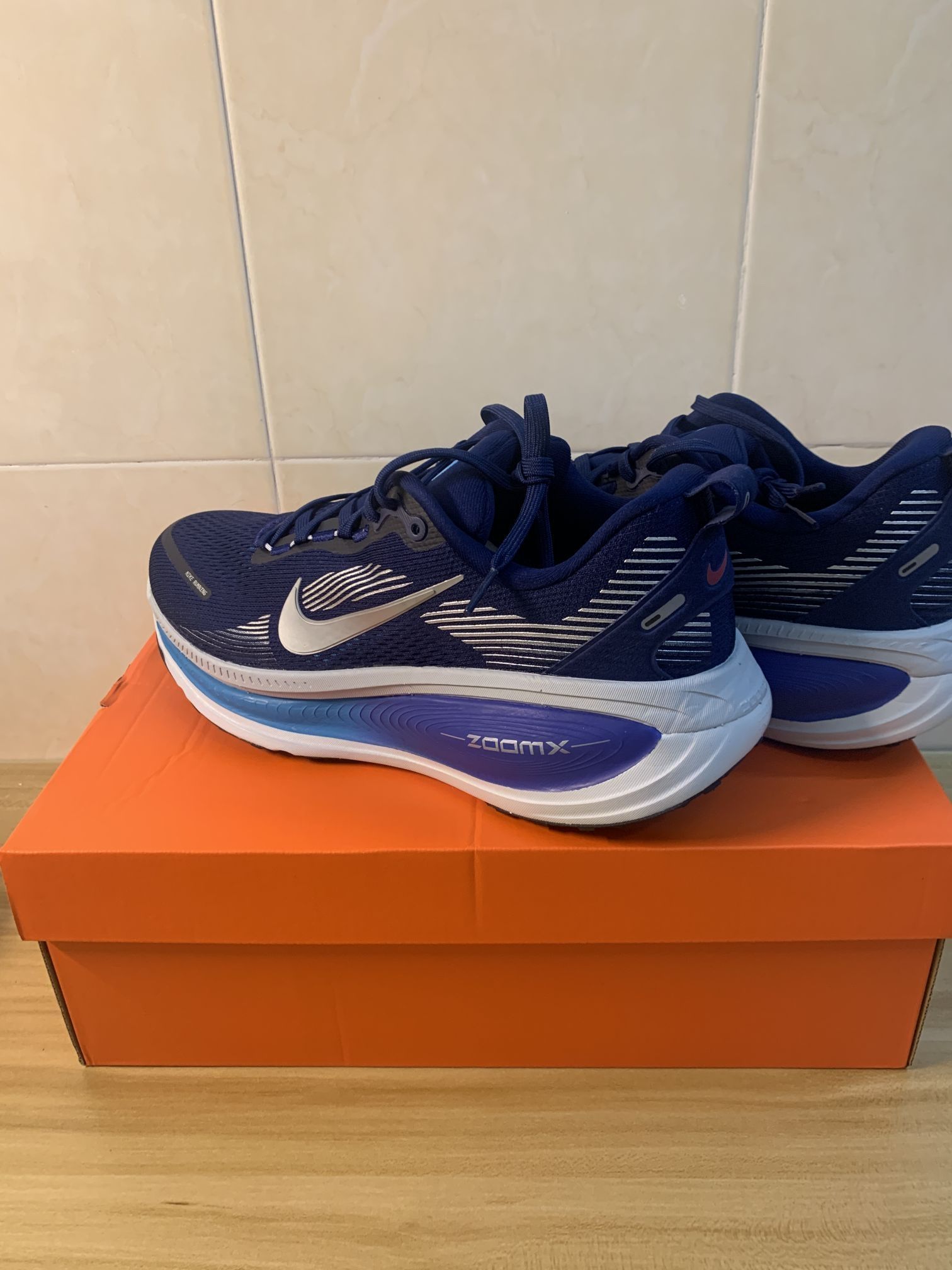 近日通勤频繁穿着这双蓝色款Nike Vomero18,其网面材质手感柔软,鞋舌填充厚度适中,未对脚背产生明显压痕。不过在夏季长时间穿着后,足部仍会微微出汗,建议搭配薄袜以提升舒适度。中底在行走中能清晰体验到前后掌的缓震差异:前掌反馈弹韧,回弹明显;后跟落地则过渡流畅,没有拖沓之感。 鞋底在干燥路面上抓地表现稳定,湿滑路面尚未测试。后跟TPU加固结构为足跟提供了有效支撑,鞋码按常规US码选择即可,贴...