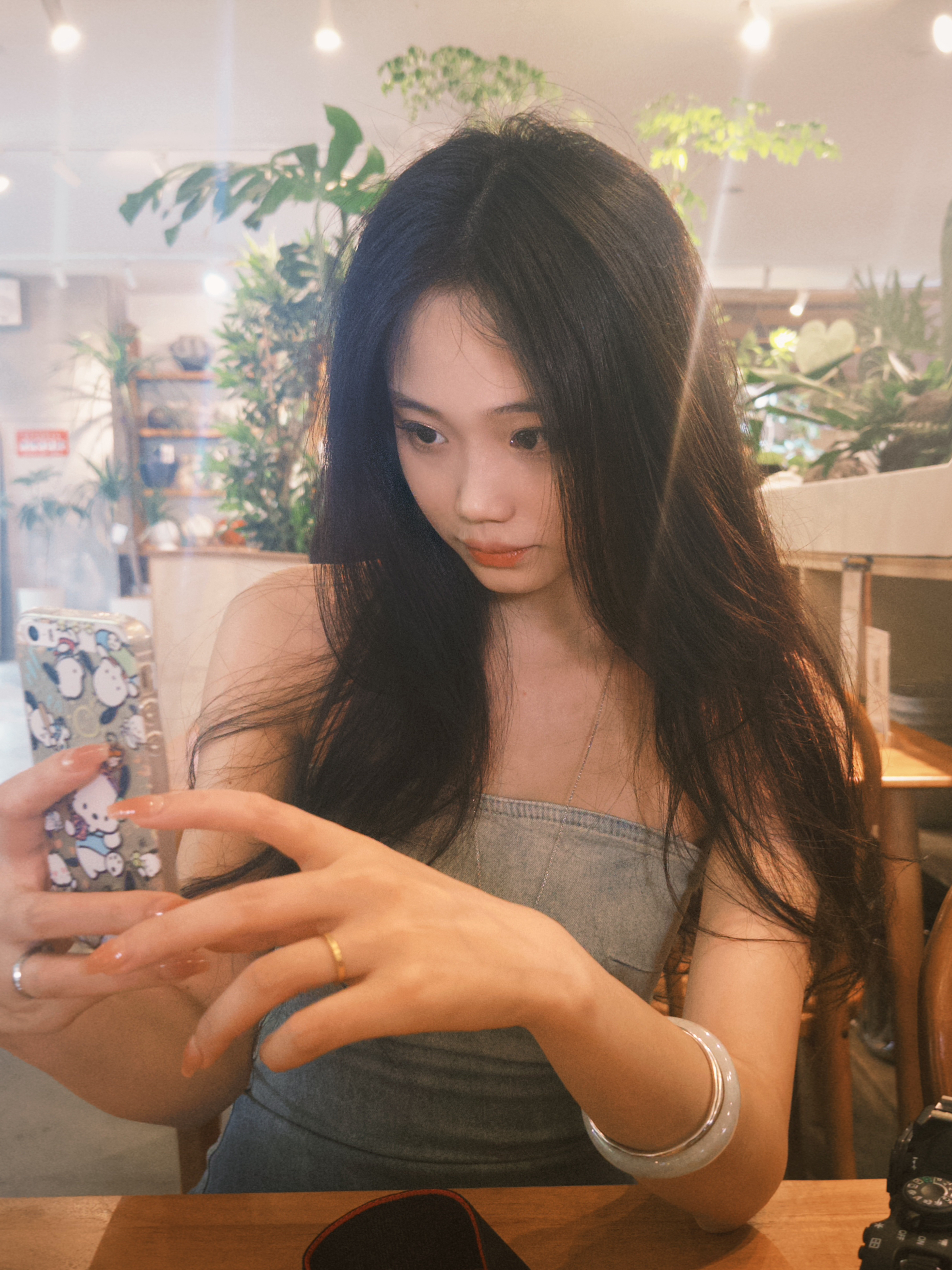 没想到牛仔裙和森系咖啡厅意外的出片!虽然是长裙,但是小个子也能稳稳驾驭~我觉得蛮有高级感嘟,爱啦!