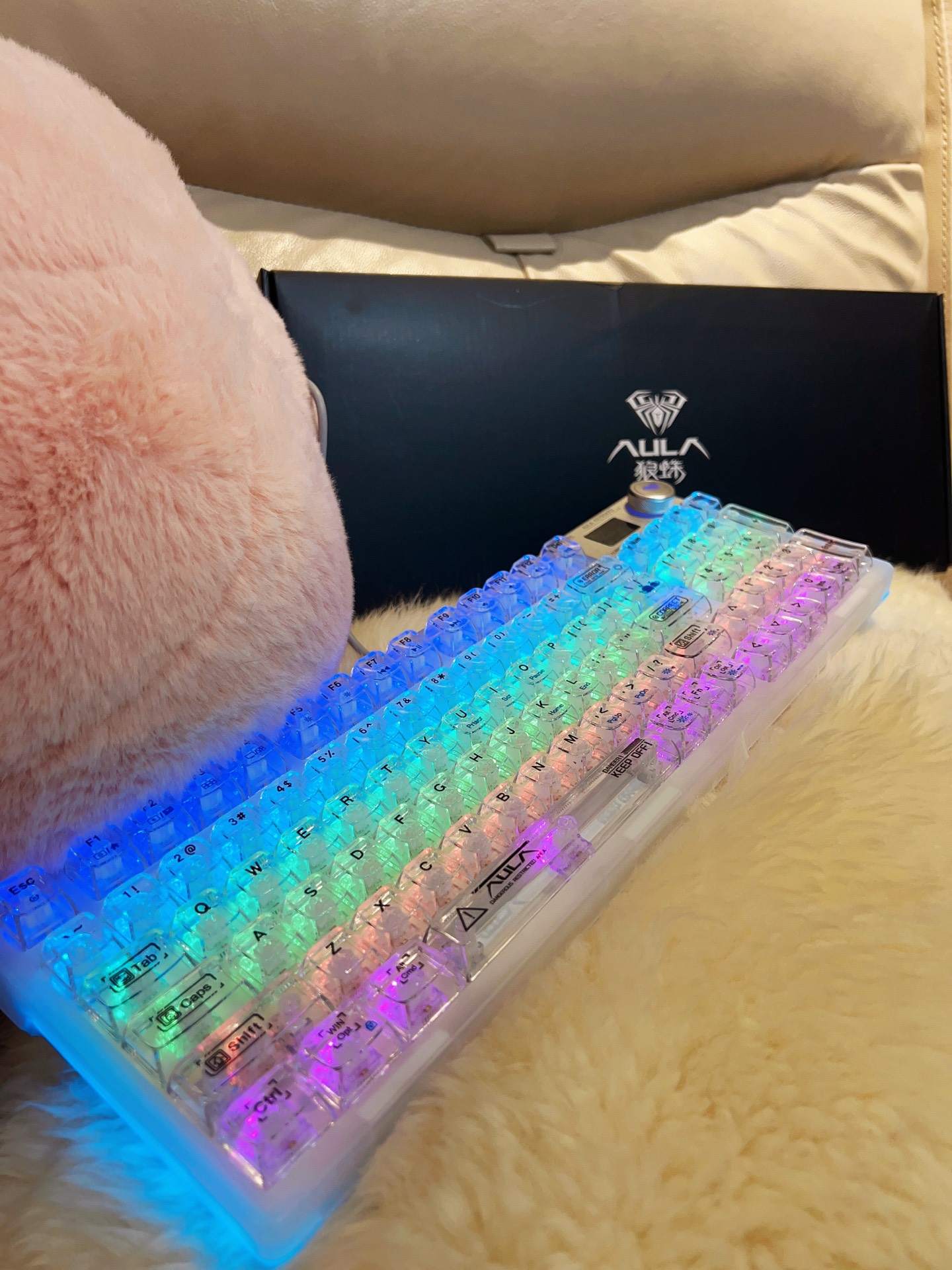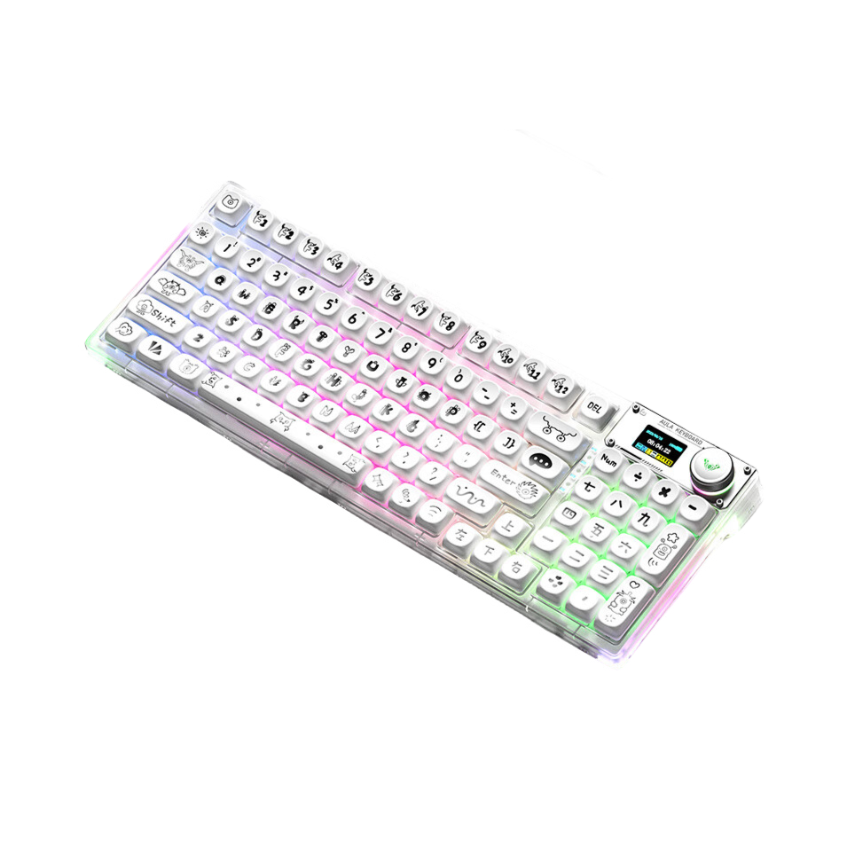 本篇笔记关联了AULA/狼蛛 F98pro 无线/三模 机械键盘 94键 热插拔 冰晶轴 灰木轴 带屏幕 全键 线性轴 下灯位 客制化 热拔插 屏显 麻将音 白透小怪兽等商品,为用户提供真实的使用体验和购买参考。
