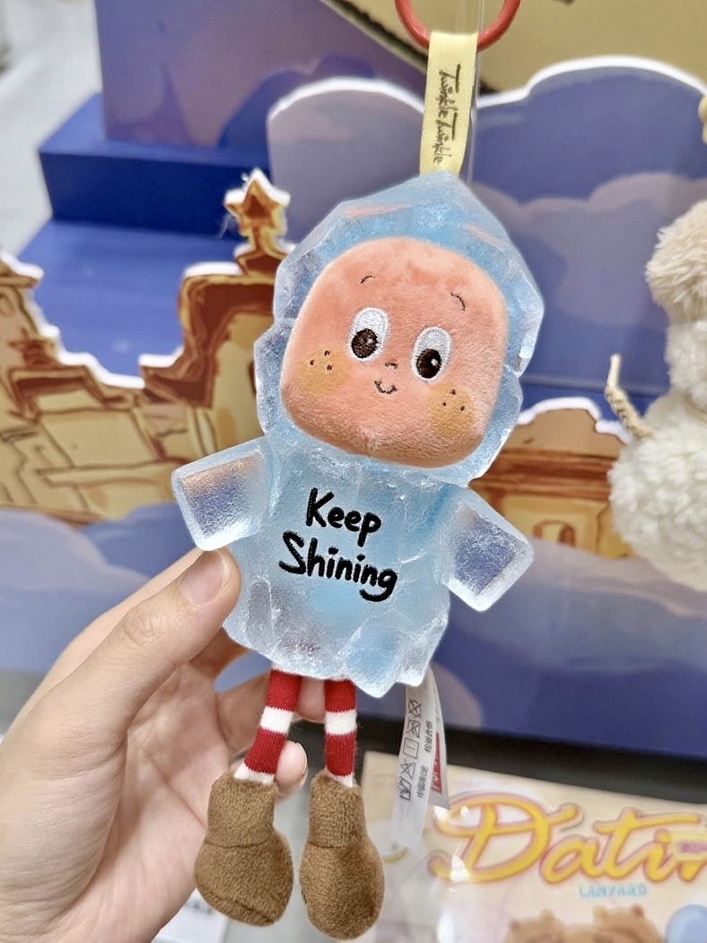 我入的星星人盲盒,一觉醒来其中一个居然像冻成冰块一样,透明外壳裹着毛绒星星人,莫名更有玩趣感了! 短毛绒摸着软乎乎的,不同款造型都好有想象力,挂包上或者放桌面当小摆件,看着心情都亮堂~不过盲盒嘛,开出来是啥全看运气,像开盲盒老手的我,偶尔也会抽到没那么戳我的款,但整体系列创意真的拉满!喜欢潮玩、爱新鲜感的宝子可以冲,拆盒那刻的惊喜感太上头啦~