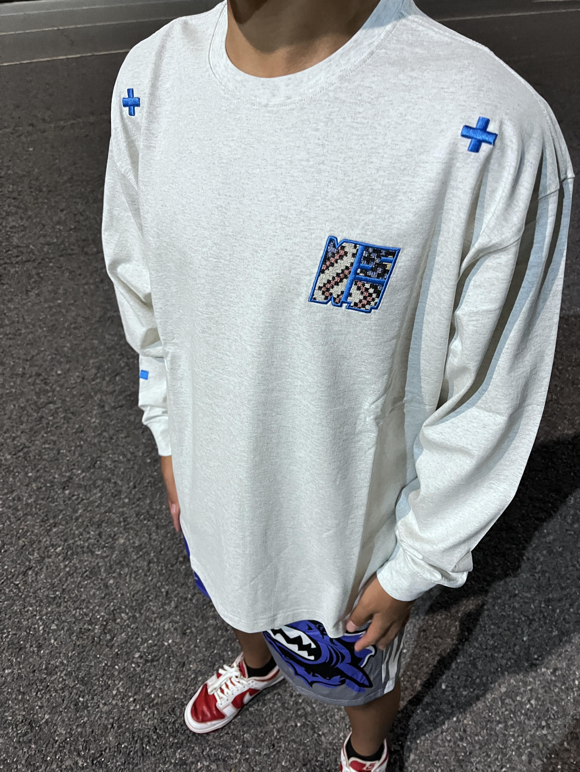 NSTNEW START 复古民族风宽松长袖T恤 简简单单 复古风~慵懒舒适感我的菜! 搭配宽松短裤超绝 关键是我上身效果也挺不错的舒服的料子 我穿起来也舒服 做工精细衣服上的图案是刺绣 白灰的颜色怎么搭配都不会出错 上身高级感满满 学生党就这样穿