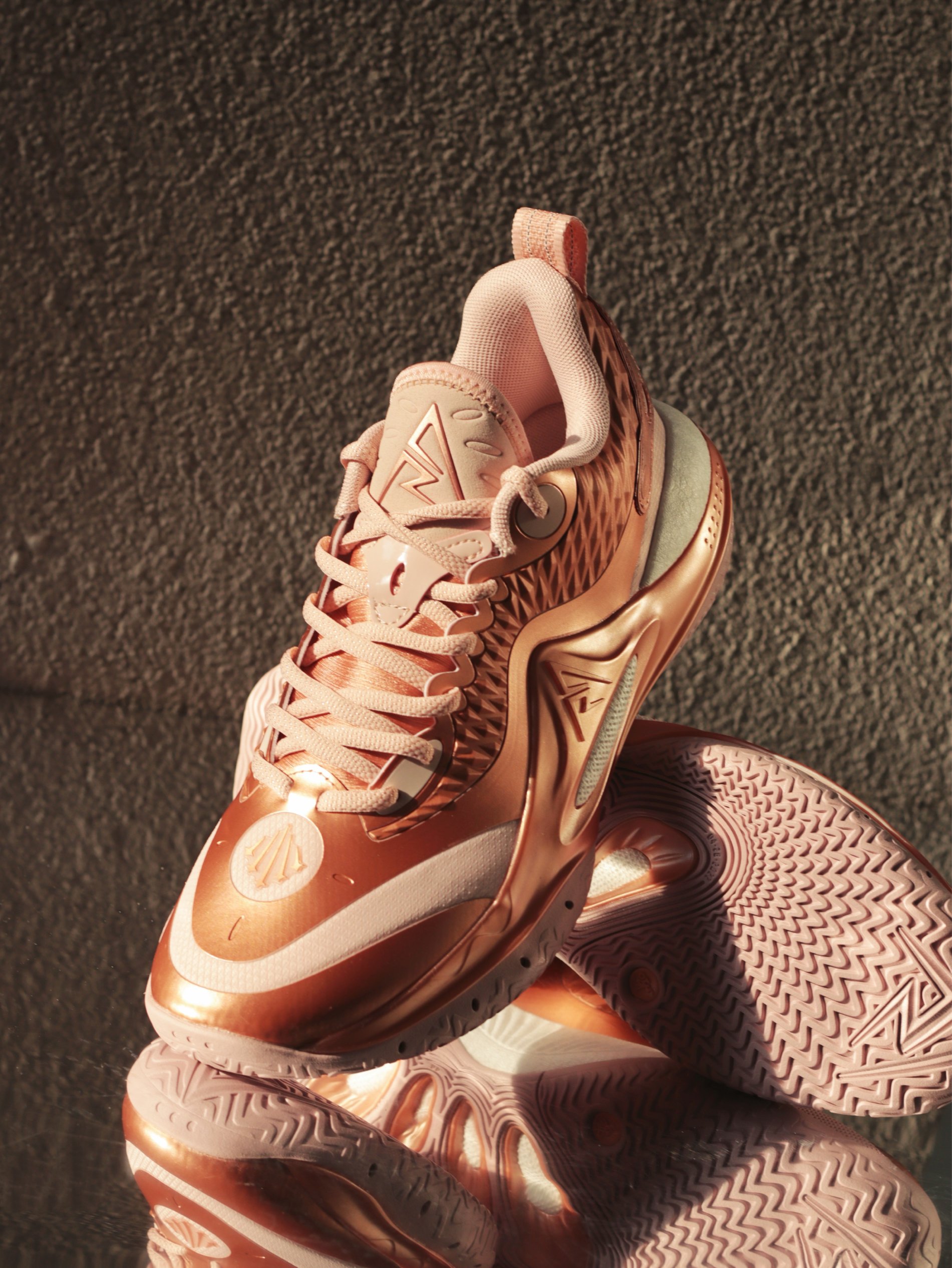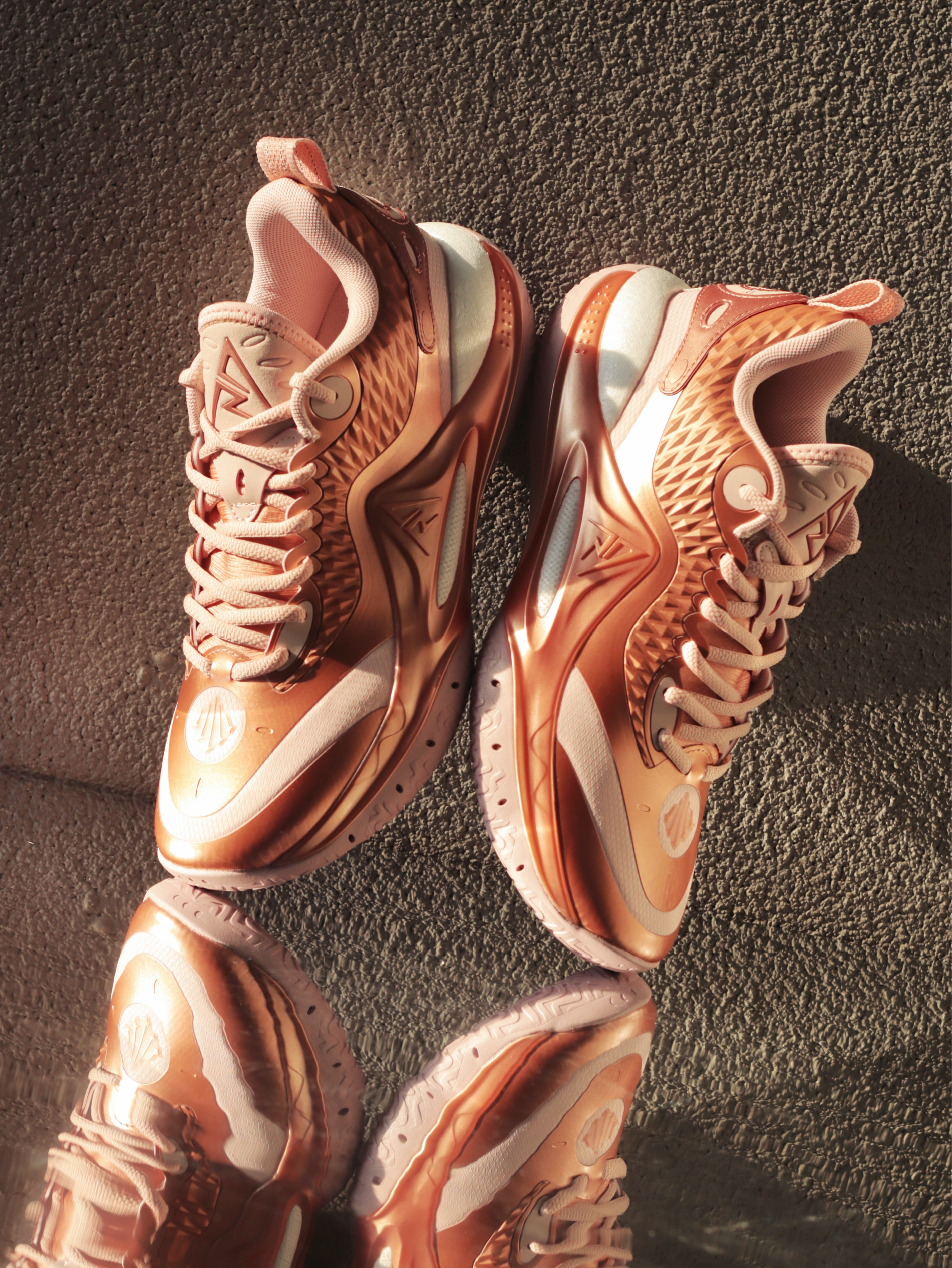 之前我跟大家分享过里夫斯2代的“千锤百炼”配色,这次的新配色“玫瑰金”,感觉可以组一个金角&银角大王鸳鸯了! 玫瑰金配色的鞋面也是很有金属光泽质感,特别是在阳光下很闪耀!我感觉也是寓意着里夫斯的成长历程,是金子总会发光的! 上脚之后鞋楦是很舒适的,包裹感不错!中底比较韧弹,缓震我中小体重感觉完全够用了!大底的防滑耐磨表现也挺优秀~ 尺码不偏,这个配色的颜值大家觉得如何呢?
