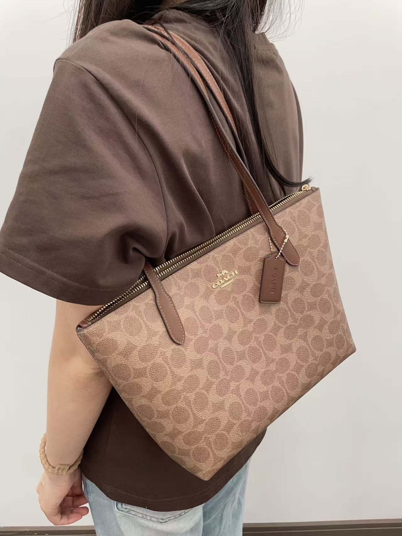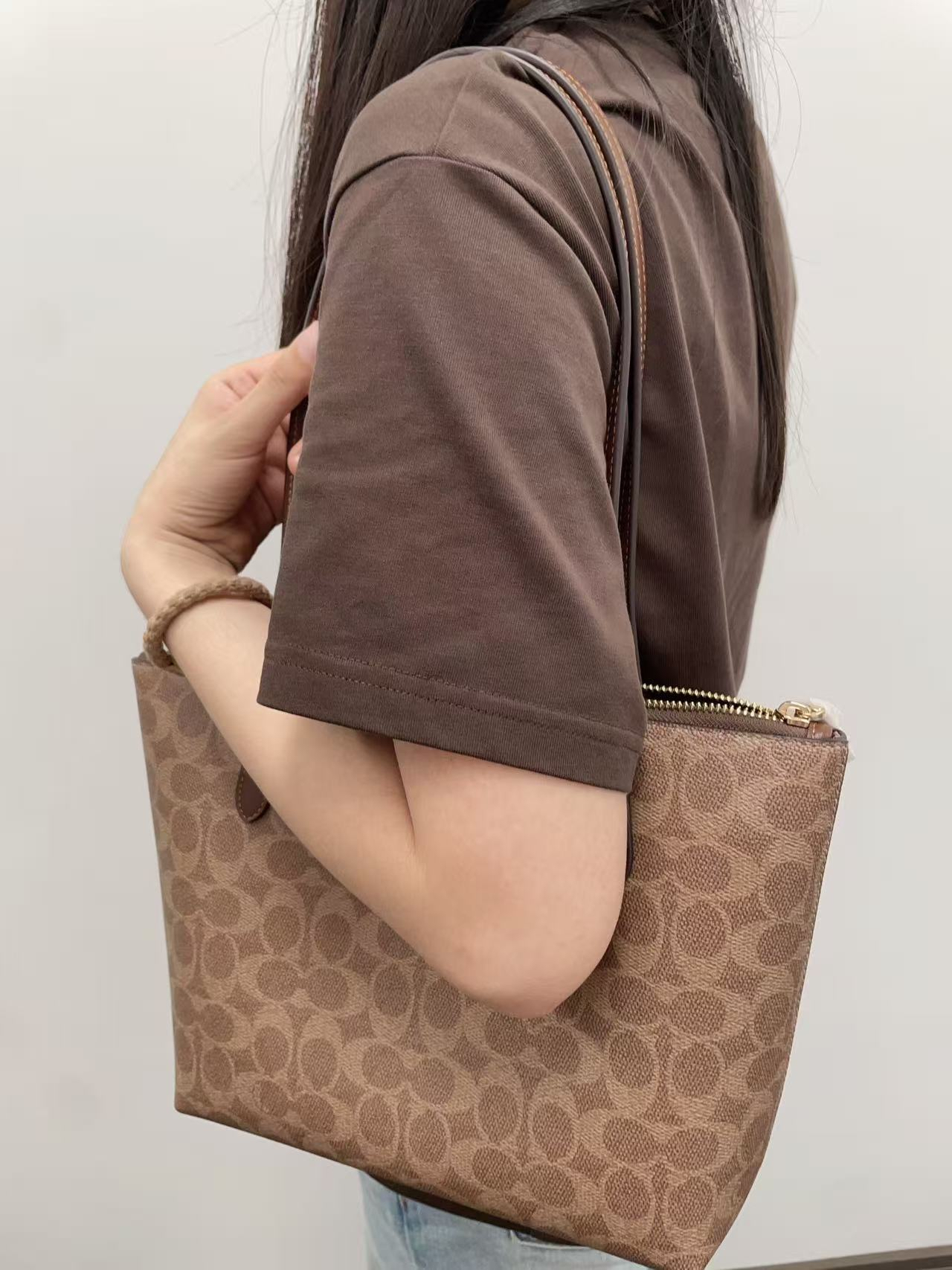 本篇笔记关联了Coach Fiona 24 中号 品牌印花金属Logo帆布拼皮革手提购物袋托特包单肩包 深棕色等商品,为用户提供真实的使用体验和购买参考。