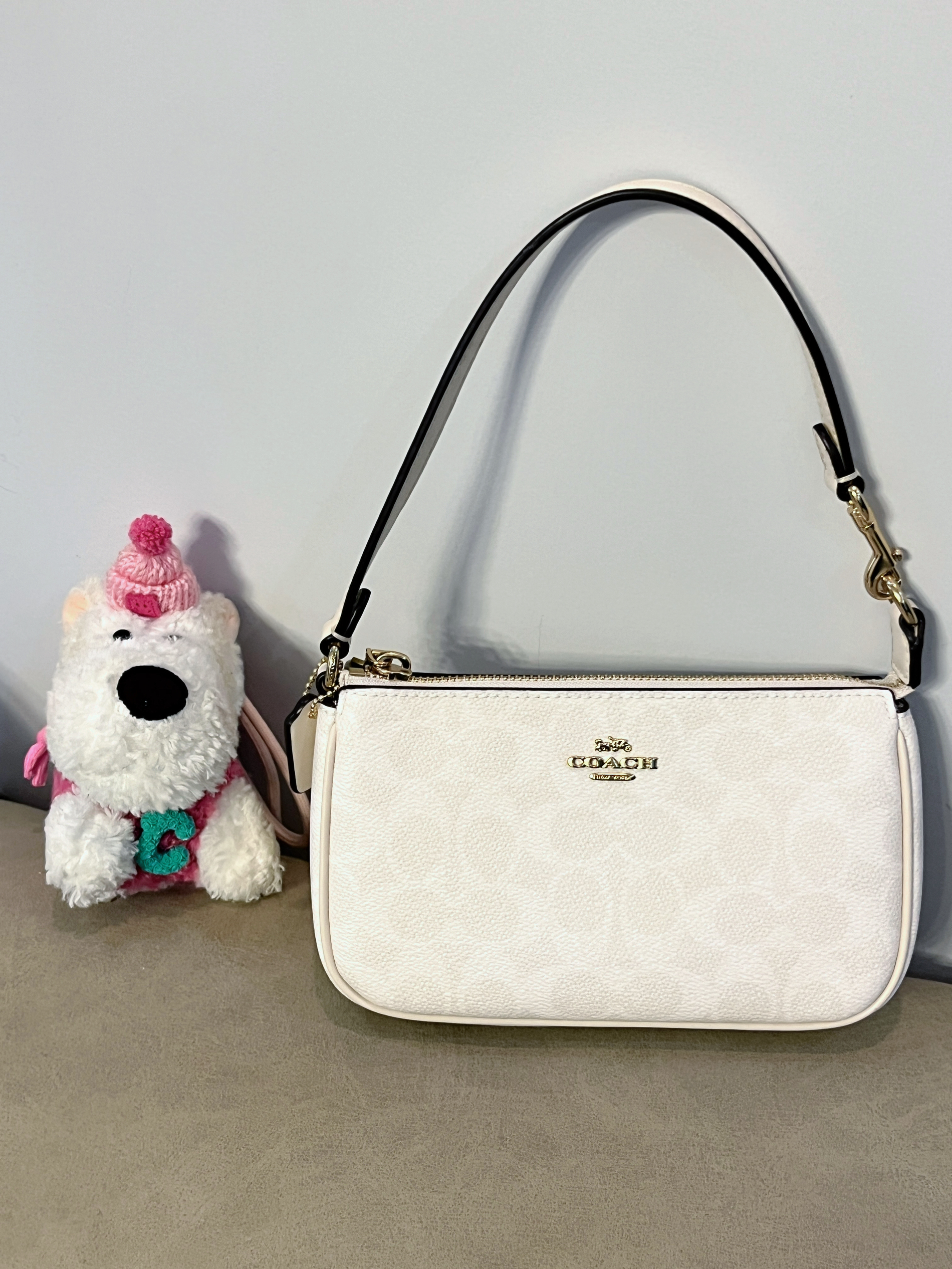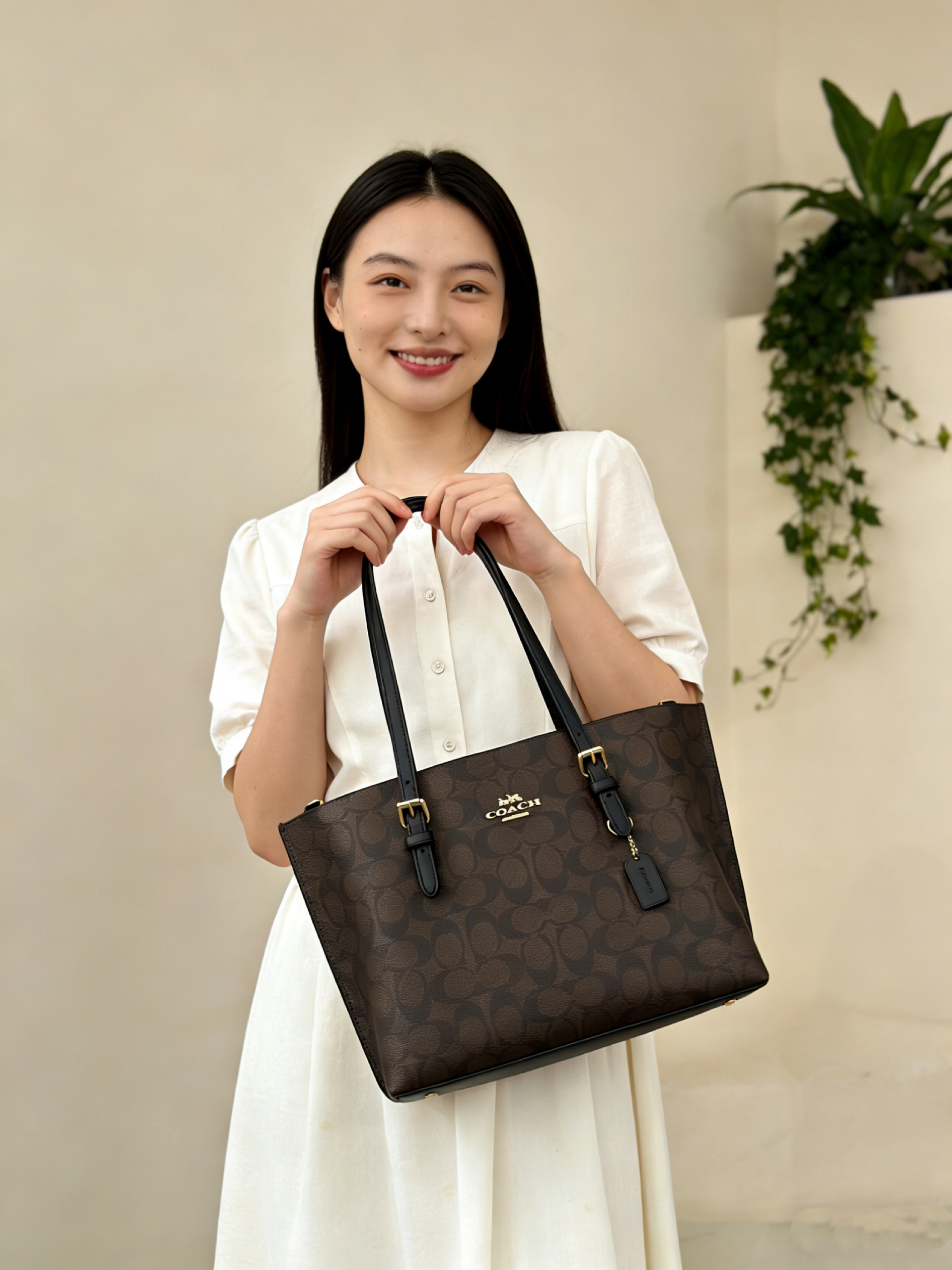 本篇笔记关联了Coach Fiona 24 中号 品牌印花金属Logo帆布拼皮革手提购物袋托特包单肩包 沙黄色拼粉笔白色等商品,为用户提供真实的使用体验和购买参考。