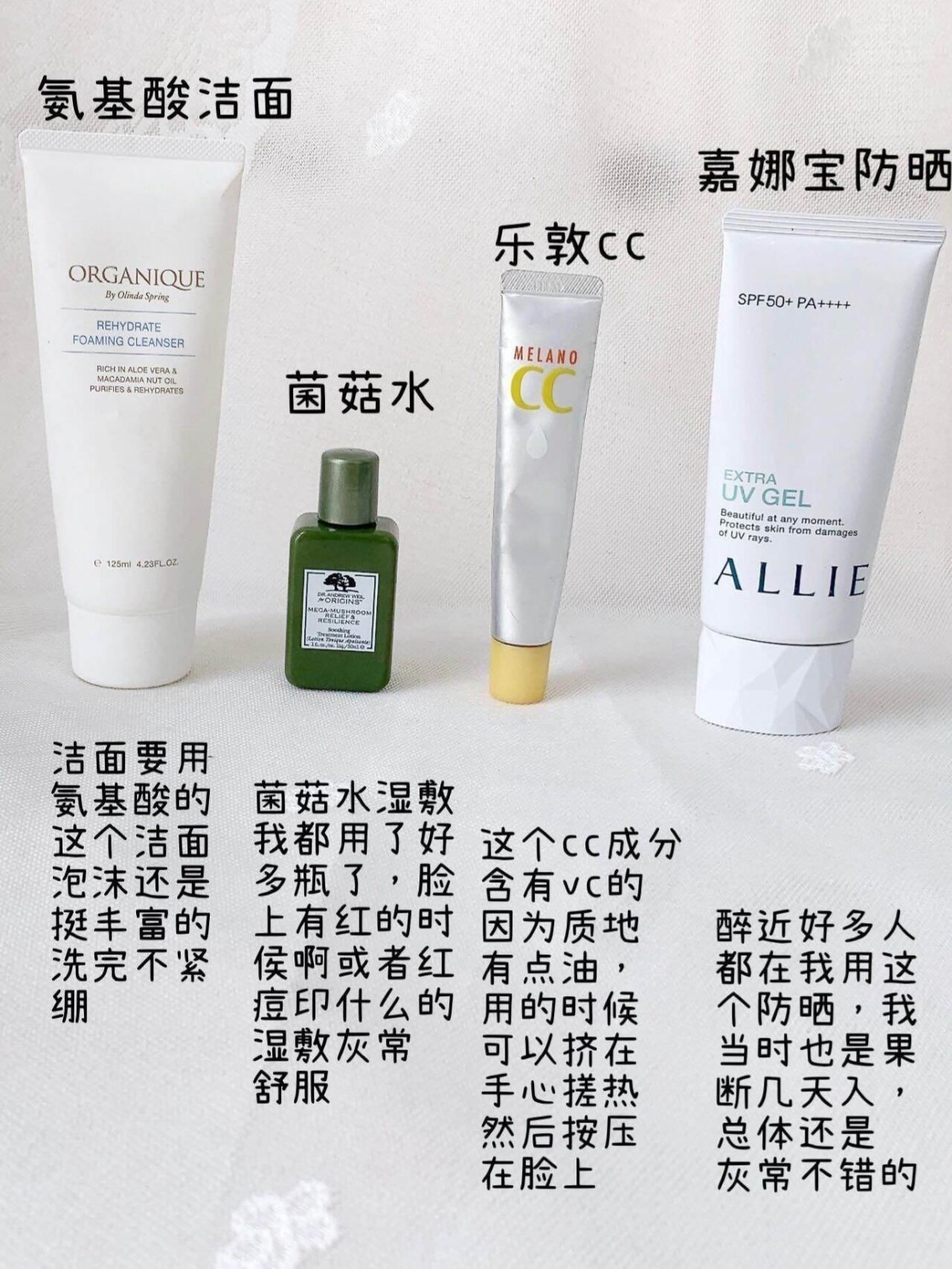 早C:洁面→湿敷菌菇水→挤CC在手心里搓热按压上脸→涂防晒 晚A:洁面→芦荟胶敷脸→挤一管发光瓶涂抹上脸→挤在手心黄豆大小A醇乳化上脸 刷酸:水杨酸面膜涂抹上脸(早C晚A期间不要用)→芦荟胶敷脸→色修涂抹上脸→涂抹去痘印面霜