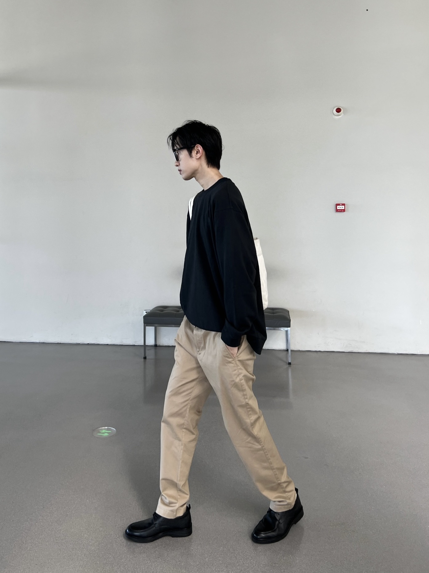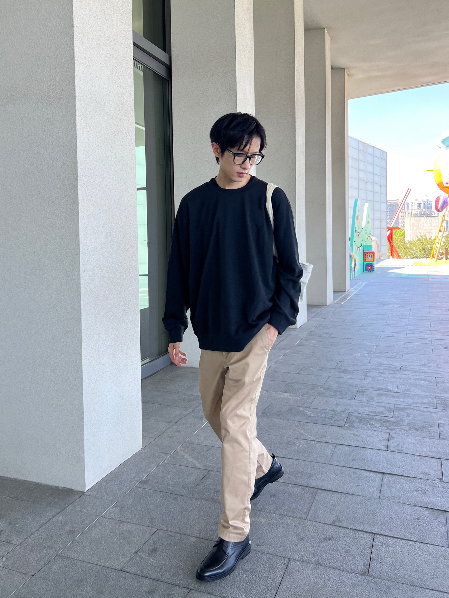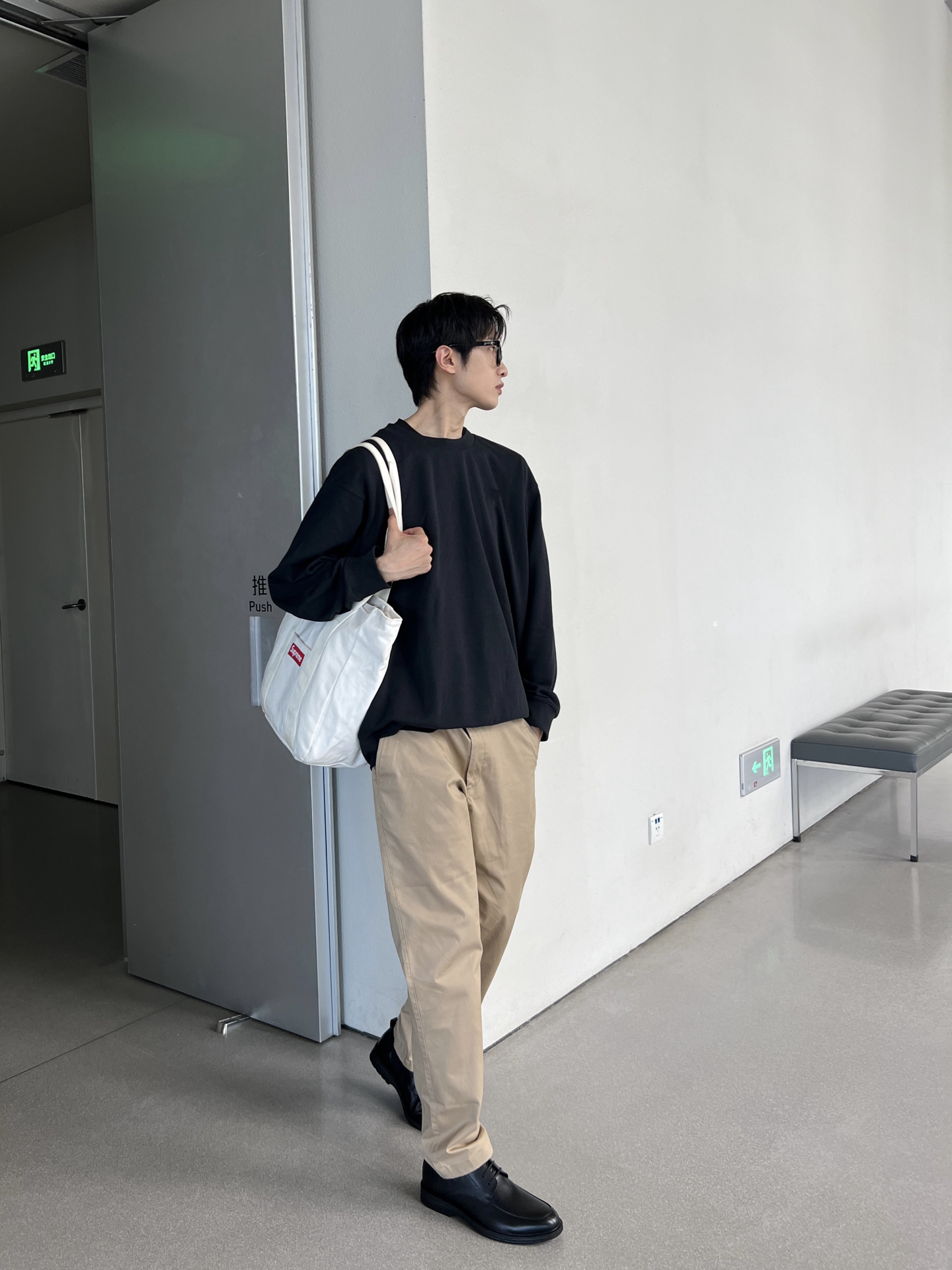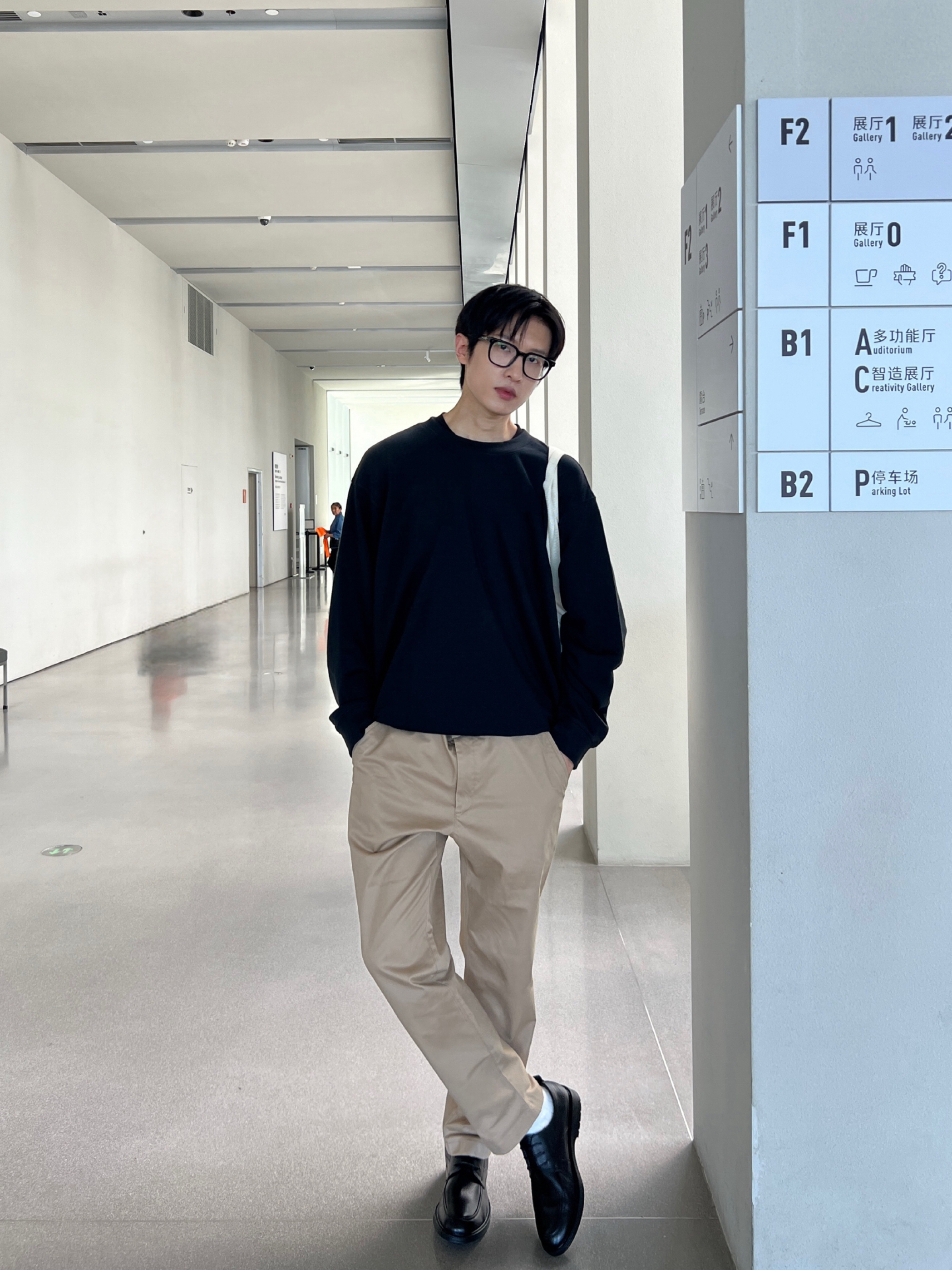 今天穿的略有一些轻熟 简单的搭配 看起来更干净历练 整体黑色和卡其色 撞色的恰到好处