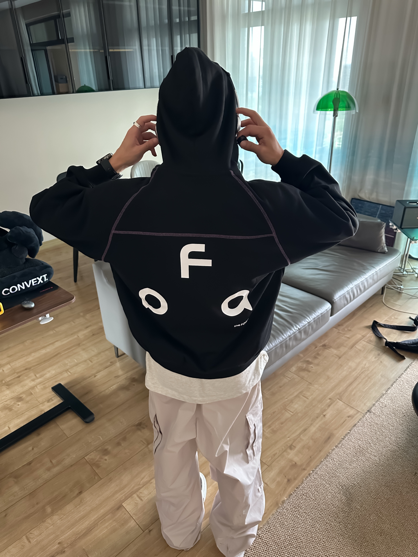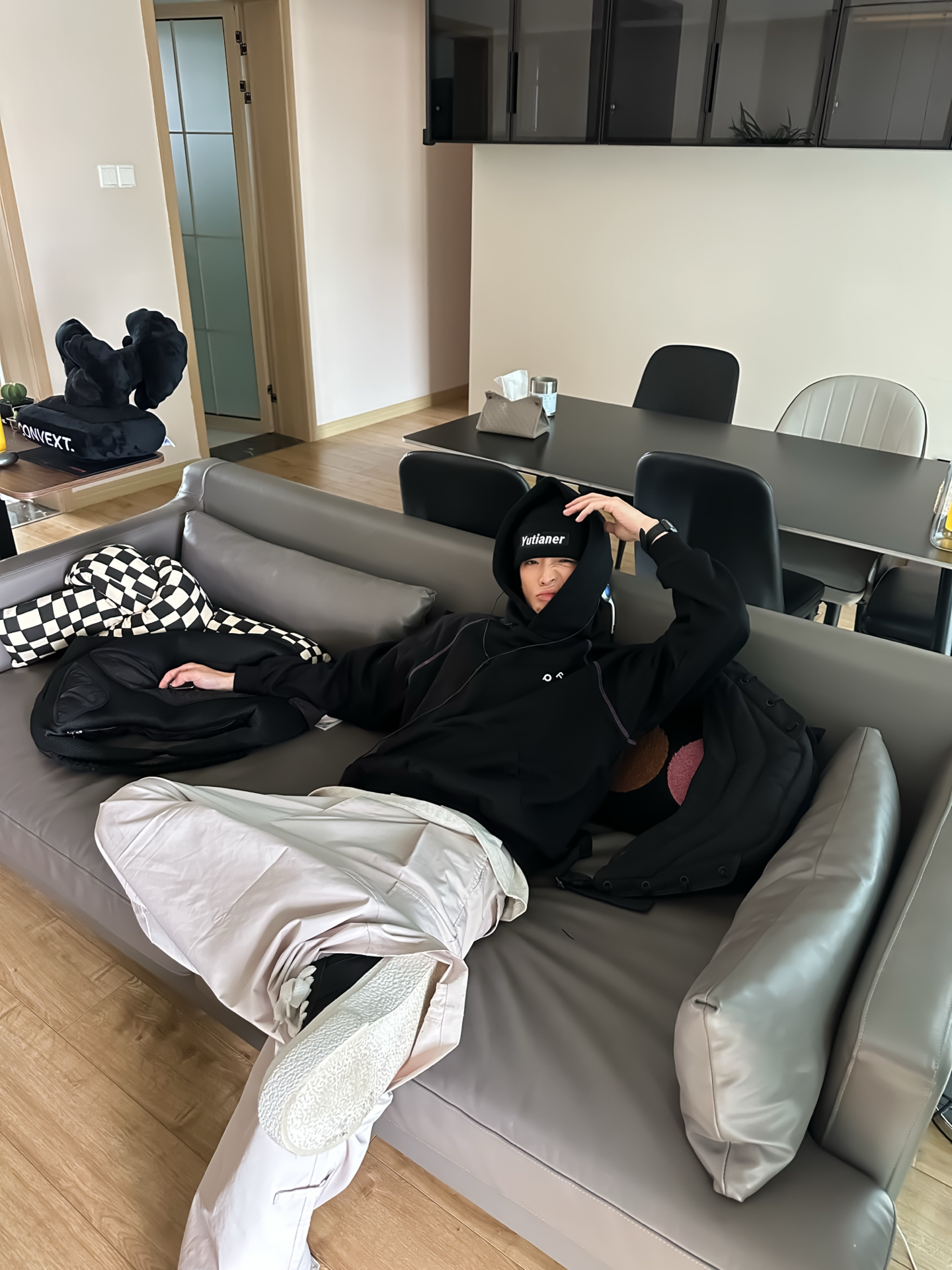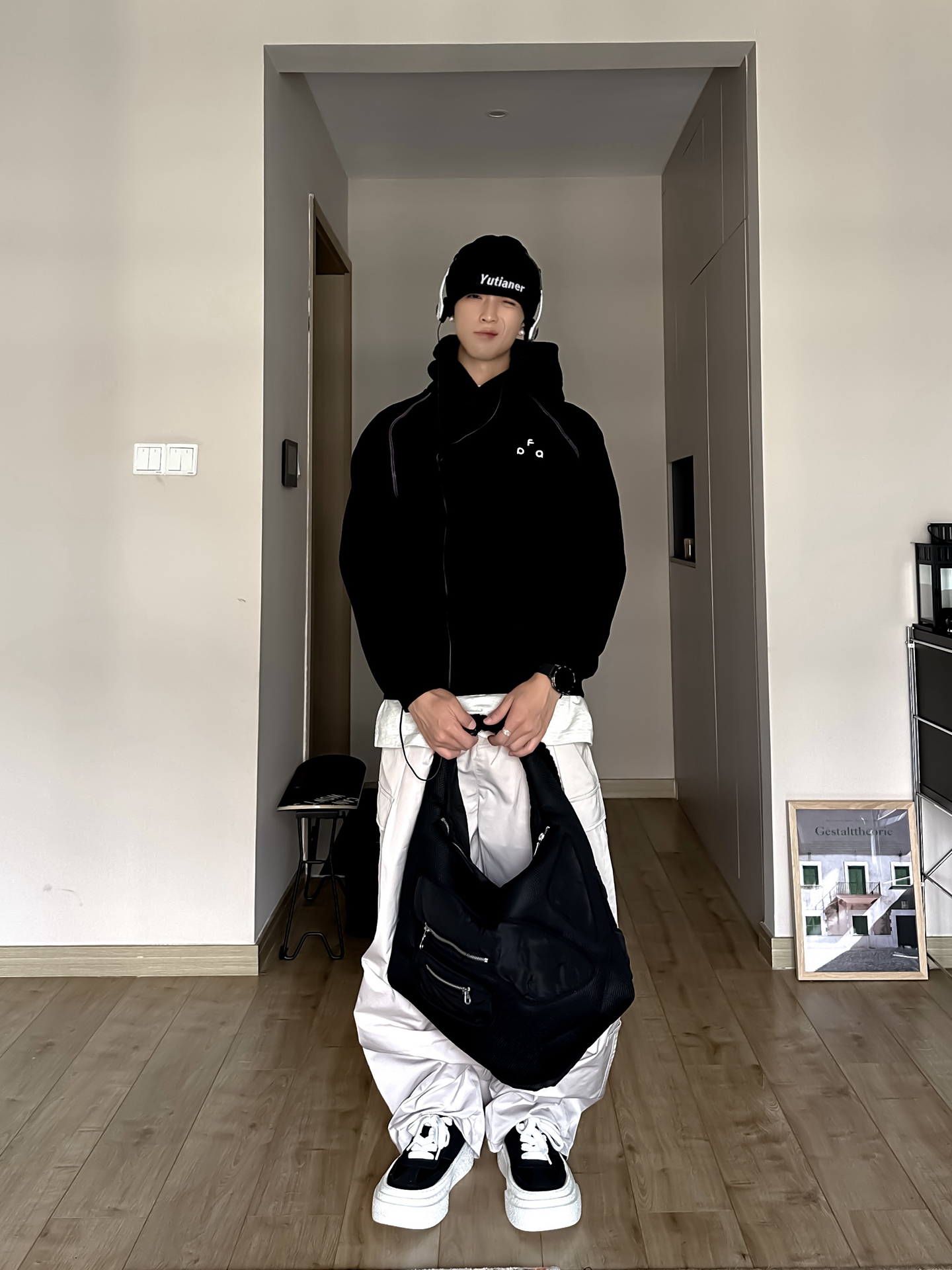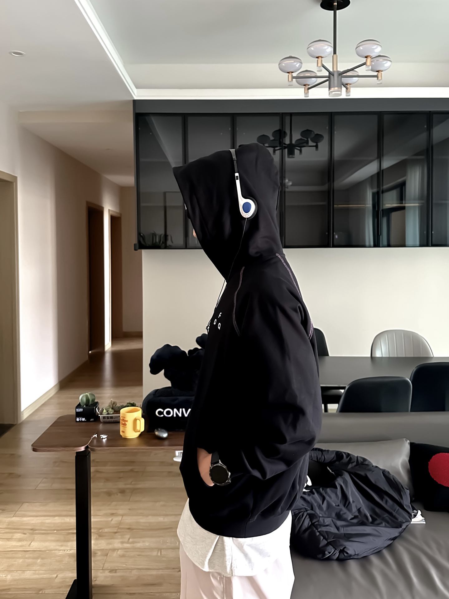 衣柜里总得有件「随便抓都不出错」的卫衣 懒人直接照抄👇5分钟快速出门 ▪️卫衣:FPA装色卫衣(背后三角标暗藏亮点) ▪️裤子:米白工装裤(显腿直还能兜东西) ▪️鞋子:黑白板鞋(和上衣顺色不违和) ▪️心机配饰:冷帽遮油头+耳机挂脖增加氛围感 · 黑色耐脏不显旧 · 套上就走不用纠结 · 冷帽一戴谁还管我洗没洗头