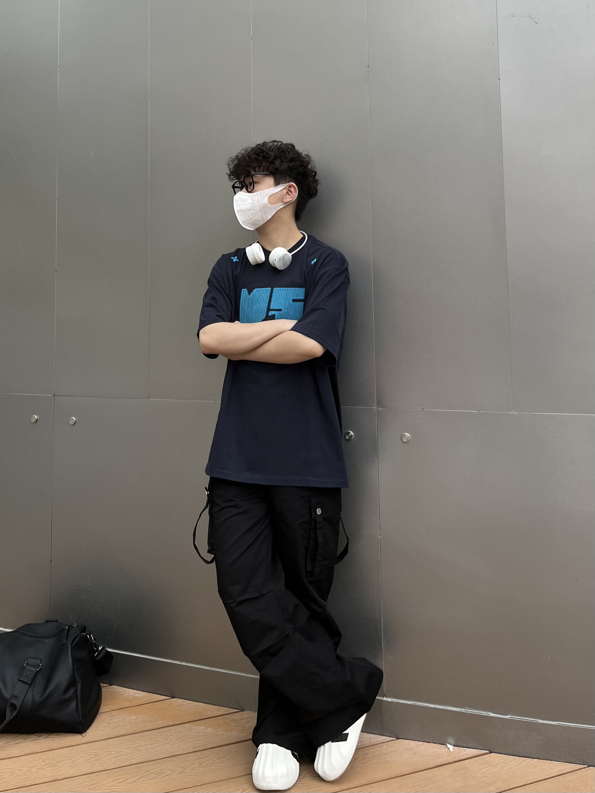 哈喽这里是乐言同学🤠 不同专业的同学怎么穿❓我想代替运动系的男生给大家推荐套美式工装风🔭 上衣是藏青色的刺绣印花T恤,高克重的短袖上身挺阔,一穿一个不吱声😼裤子是黑色的工装裤,可以自己调节微喇或者是直筒,设计细节很到位!