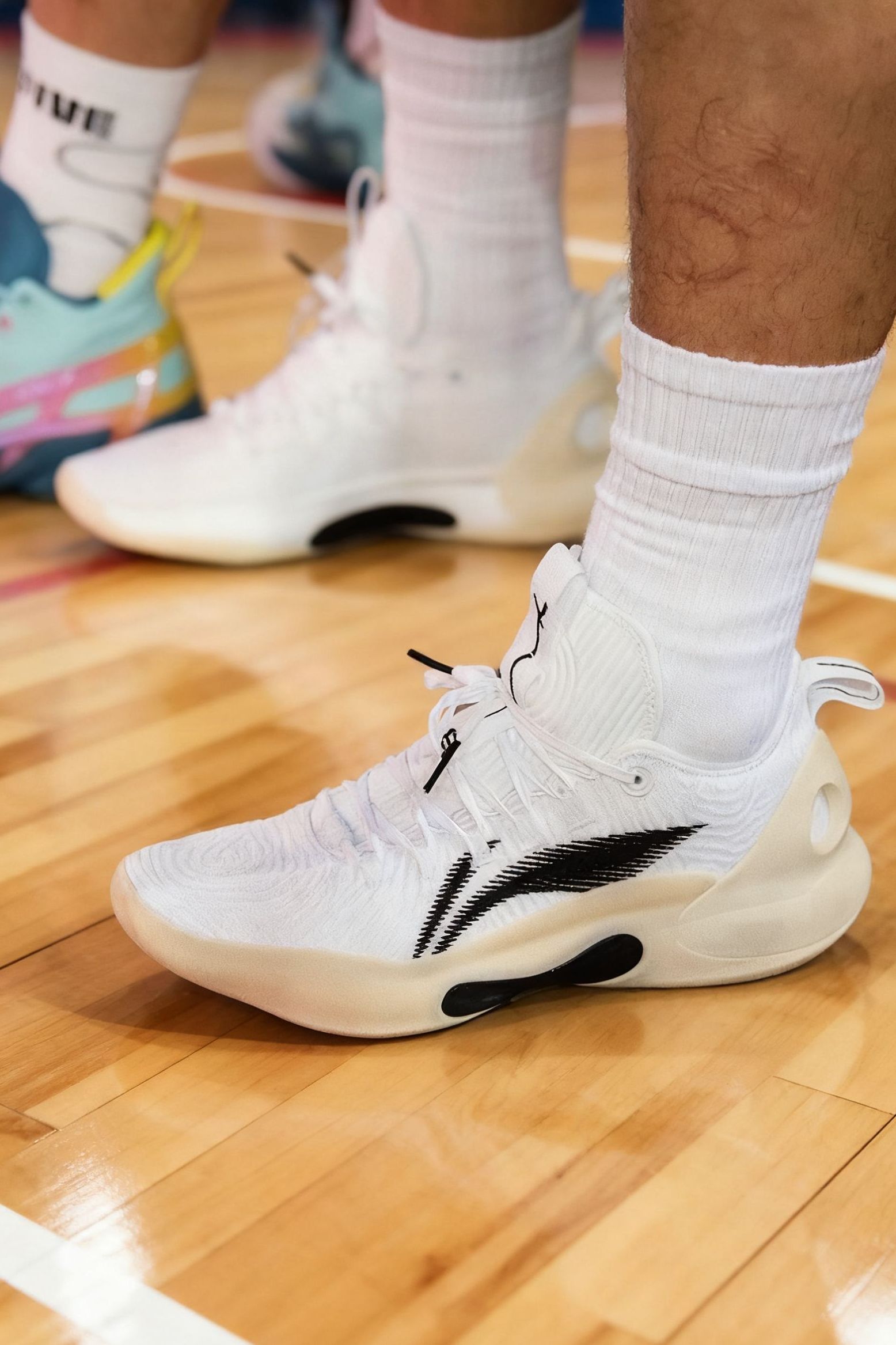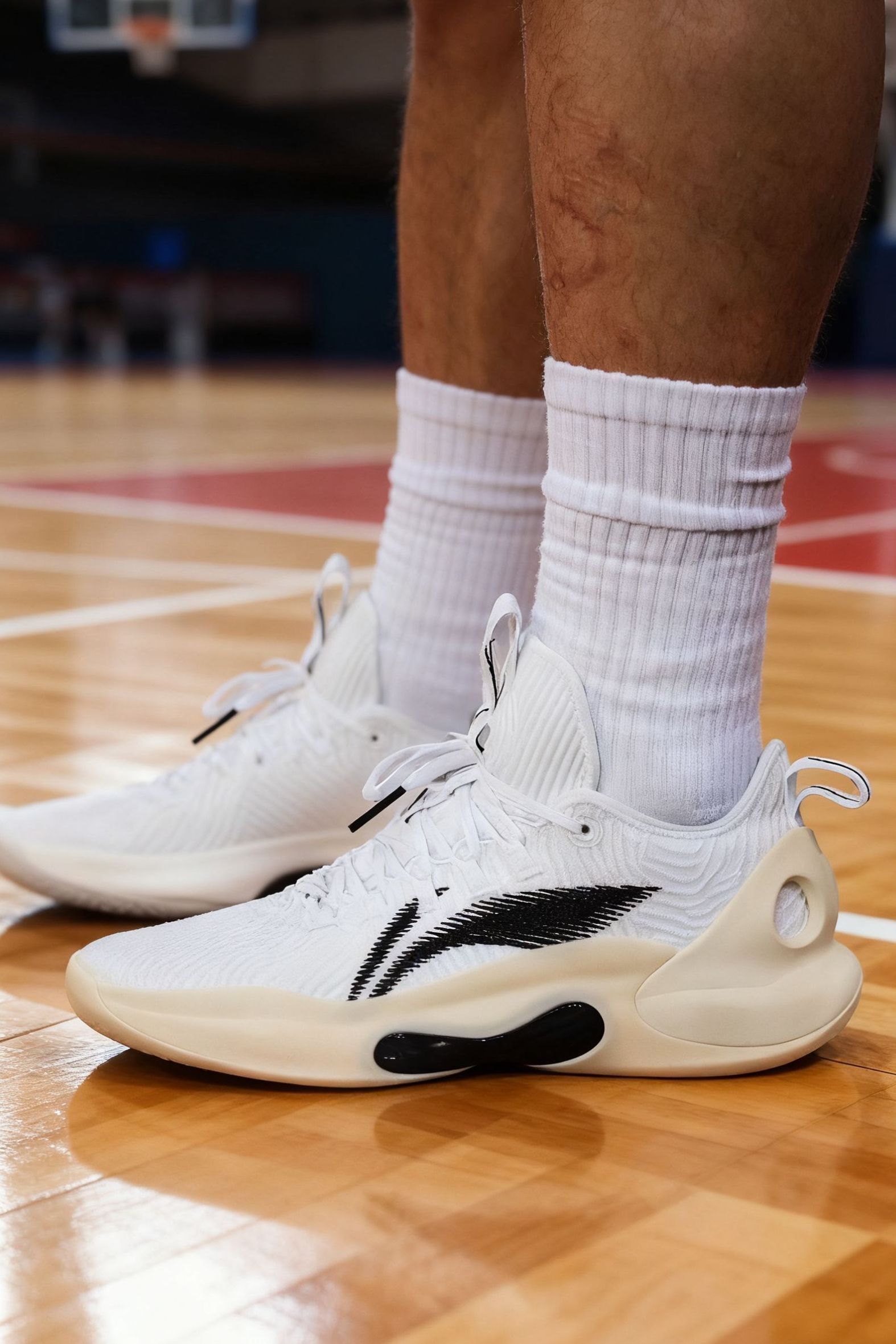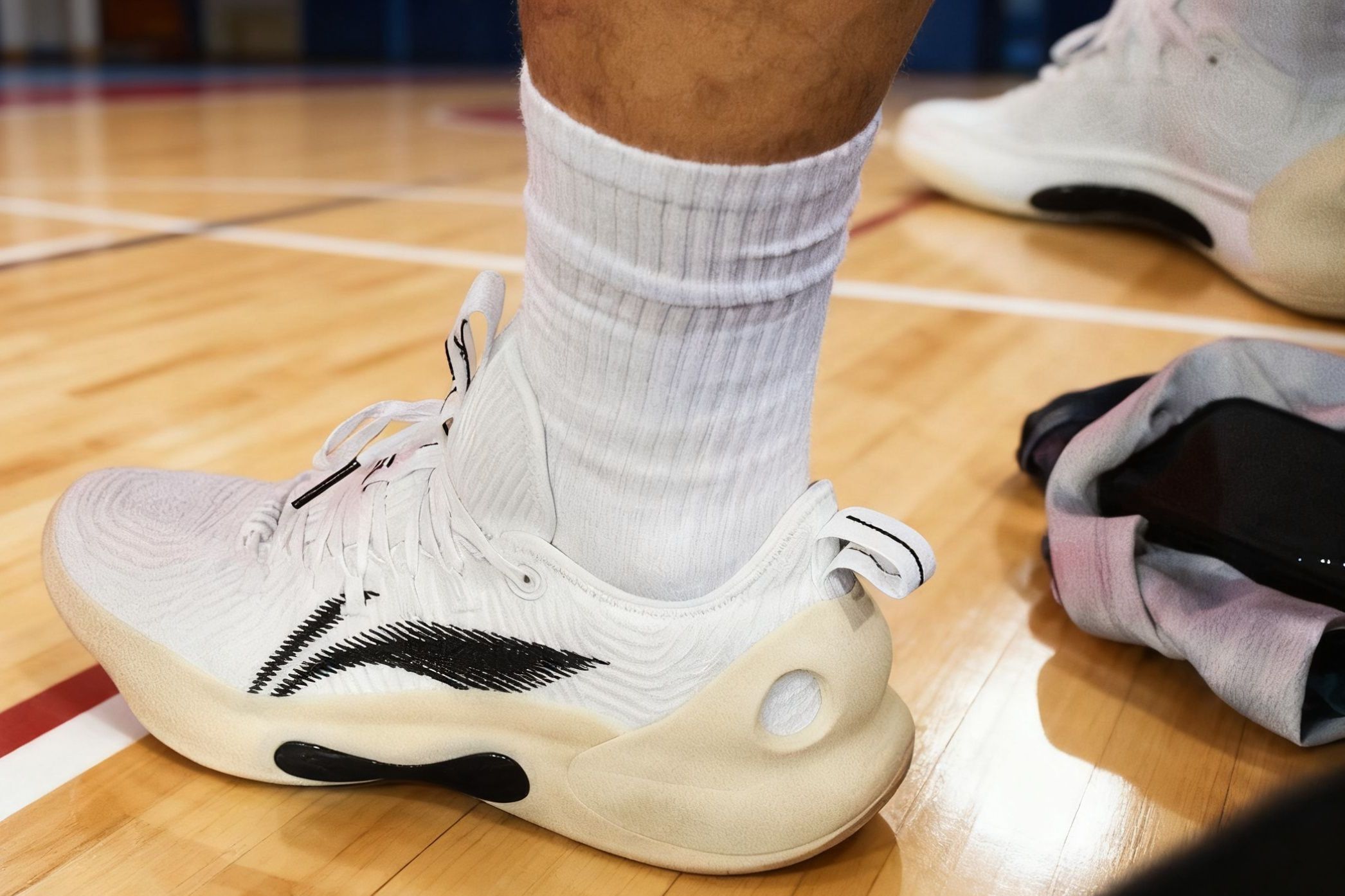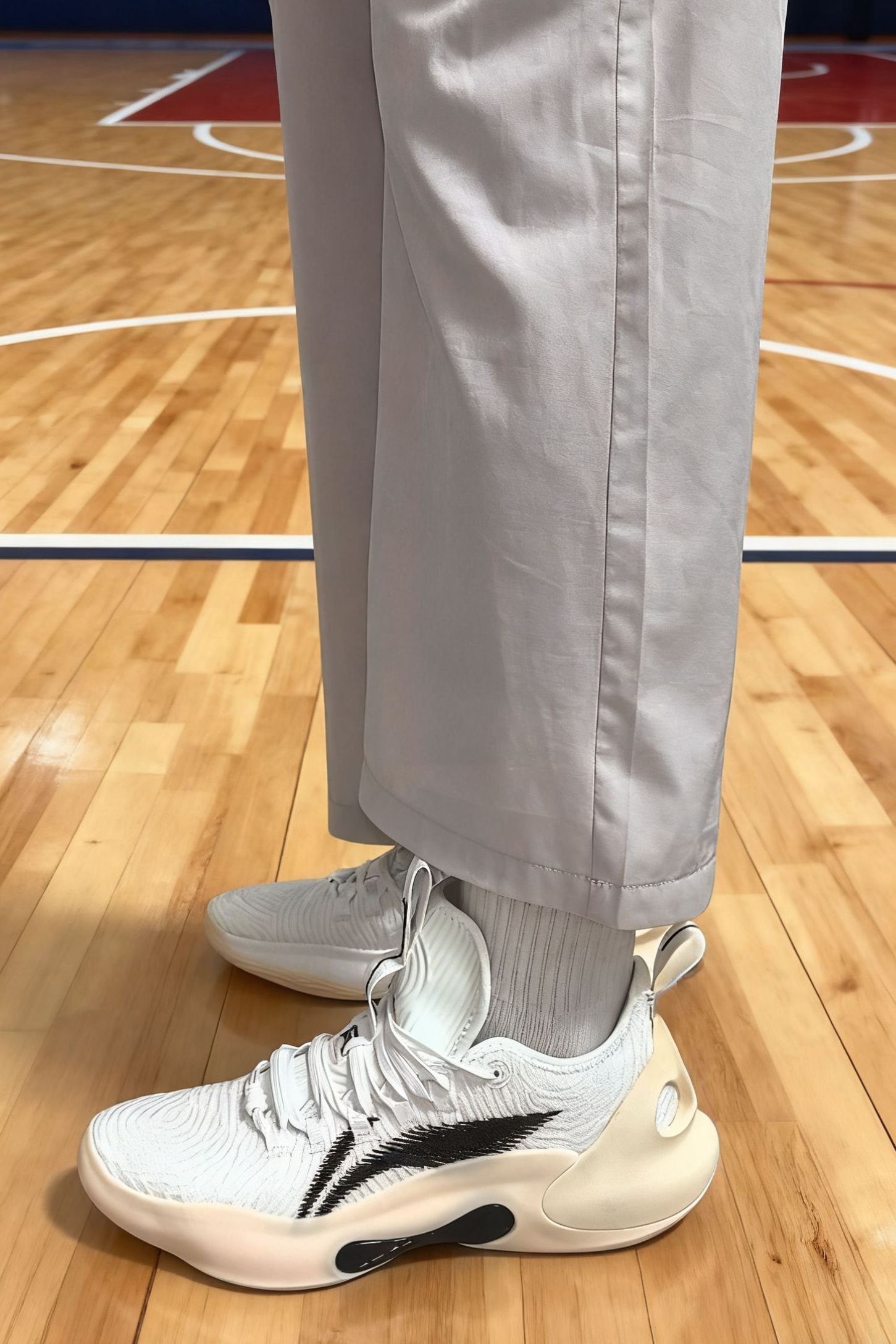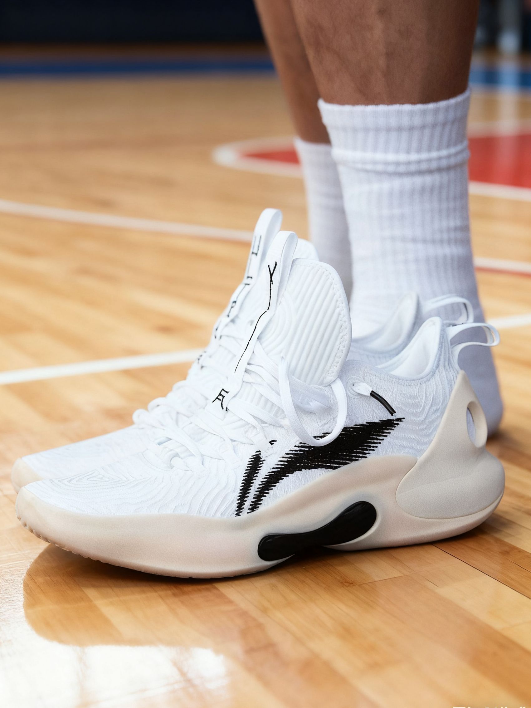高密度编织鞋面+动态飞线实现“鞋脚一体”,正常脚选正码,瘦脚建议小半码。全掌GCU止滑科技在室内木地板表现惊艳,落灰状态下仍能即停即走;外底硬度66邵氏A,外场实战50小时纹路磨损仅2mm,耐磨度过关。