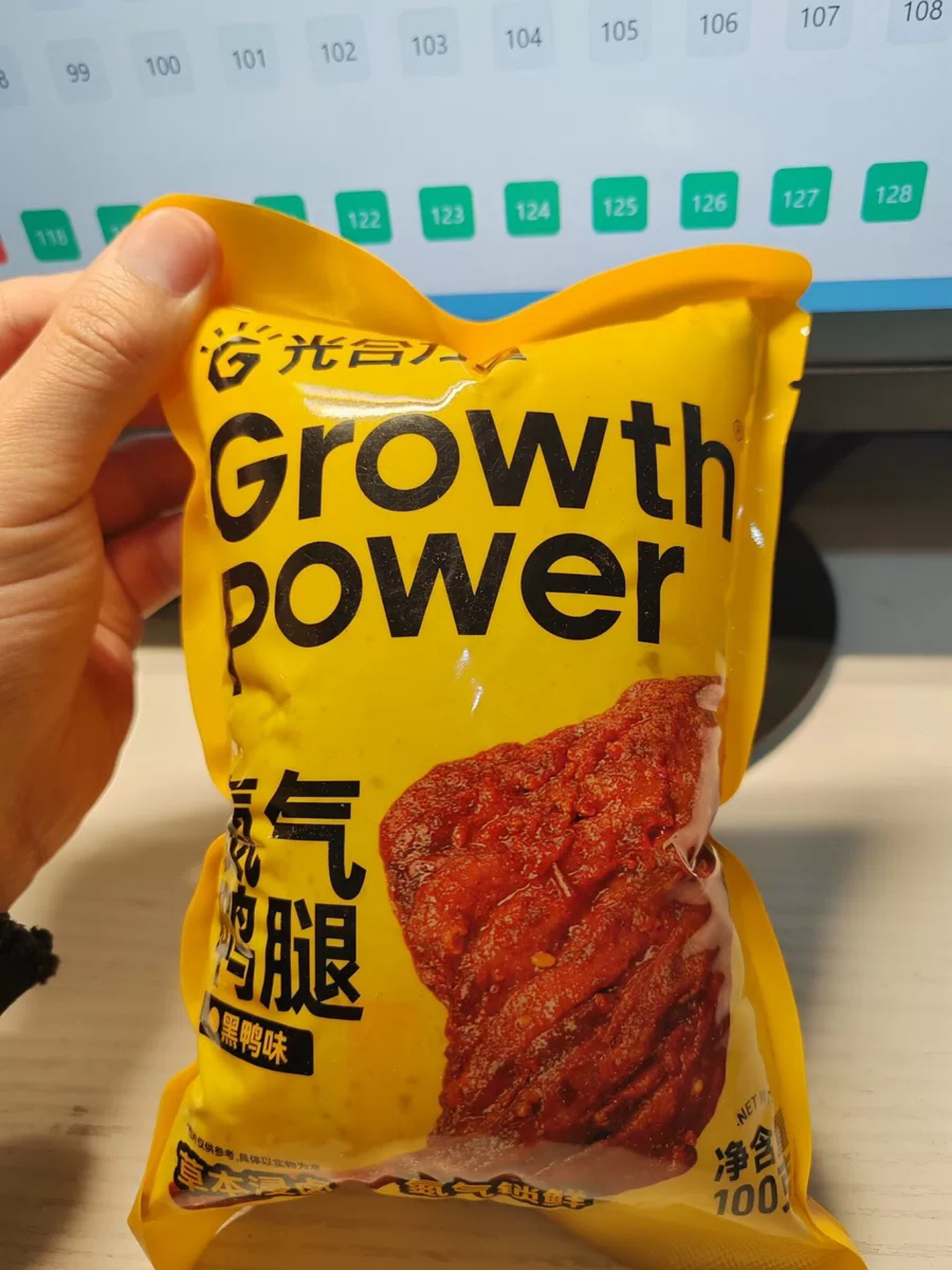 本篇笔记关联了Growthpower/光合力量 黑鸭味 100g 氮气大鸭腿 袋装 解馋夜宵充饥开袋即食锁鲜卤香辣 100g等商品,为用户提供真实的使用体验和购买参考。