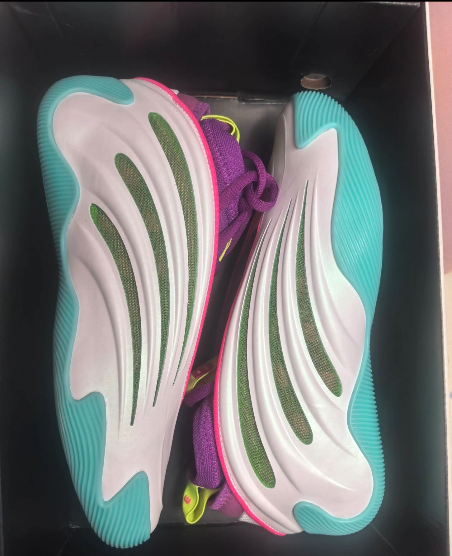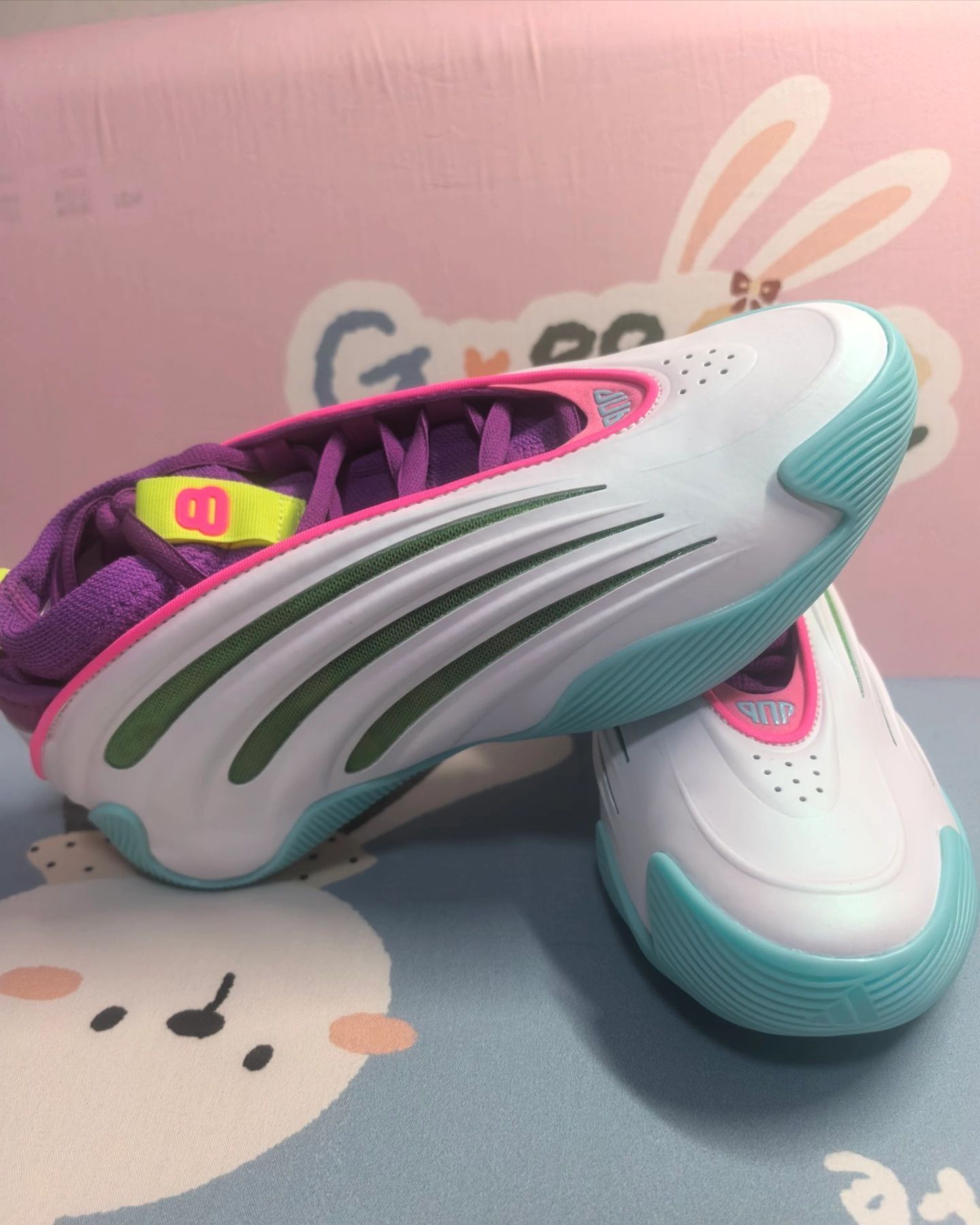 其实我是一个极度简单主义者,但是真的有被这双五颜六色的球鞋亮眼到,白绿粉紫薄荷色混搭,球鞋,看起来很有科技感,拿到手质感超棒。穿上脚包裹感好,鞋子内衬是包裹整个脚的,尤其是鞋底的抓地力啊,特别强,适合打球,喜欢突破的,尤其是跟地面嘎嘎作响的声音,特别带劲!