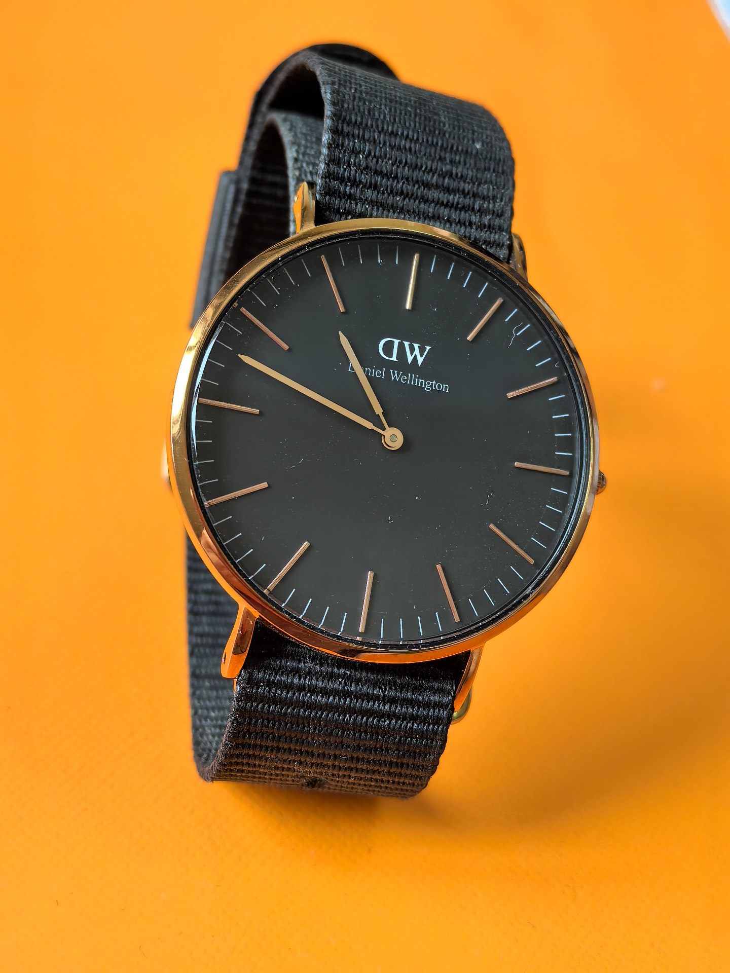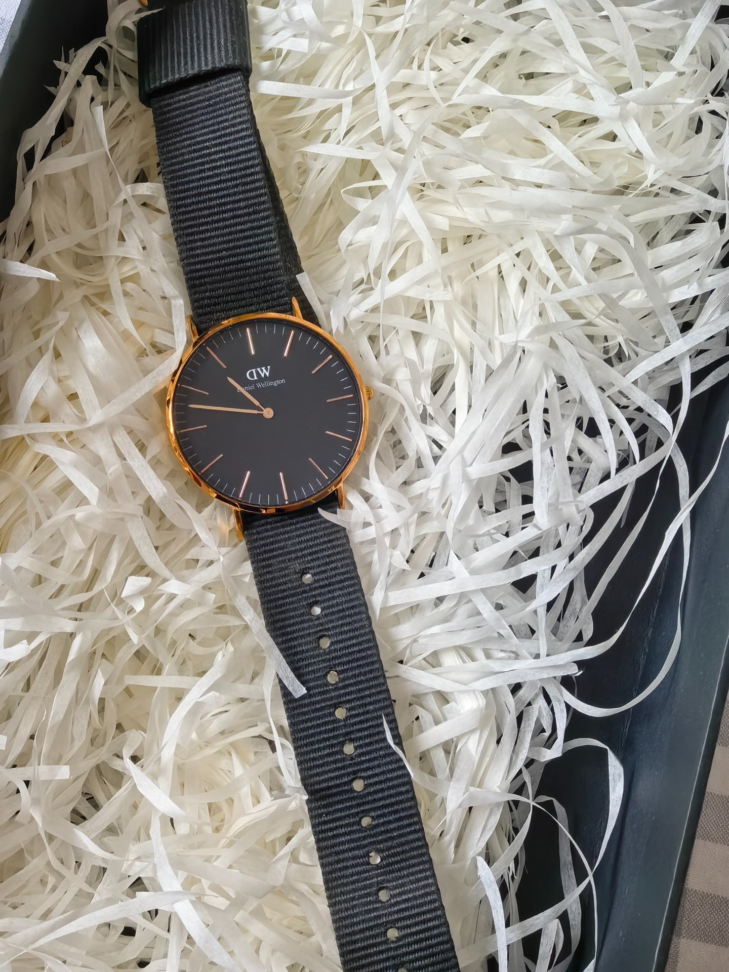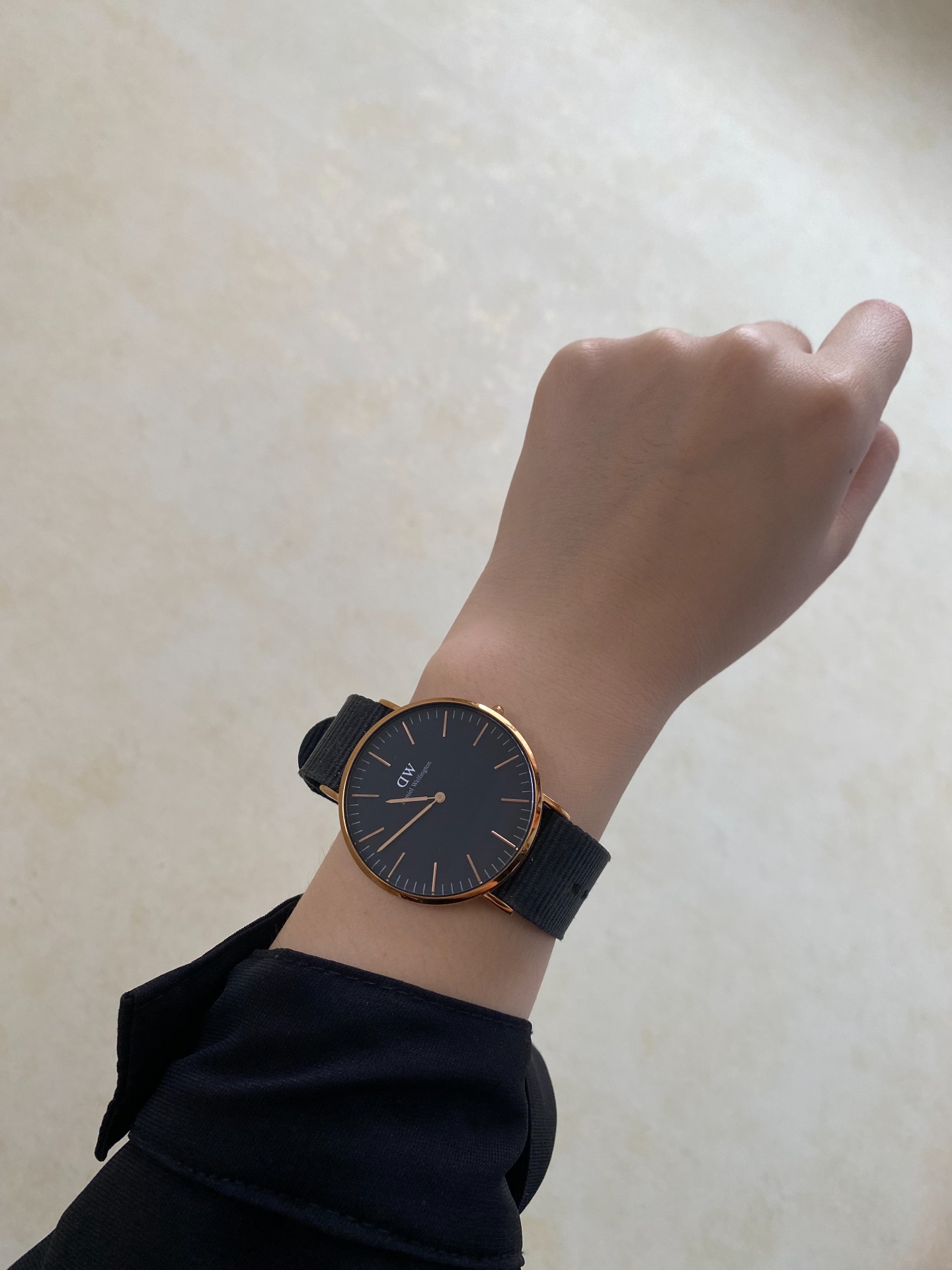 我上大学买的第一块表,尼龙表带软乎乎不磨手腕,透气是透气,但没皮表带钢带好打理😅。黑金色表盘没秒针,简约大气还百搭,正装休闲装都能搭~价格对学生党友好,还能和对象做情侣款,我觉得值👍!
