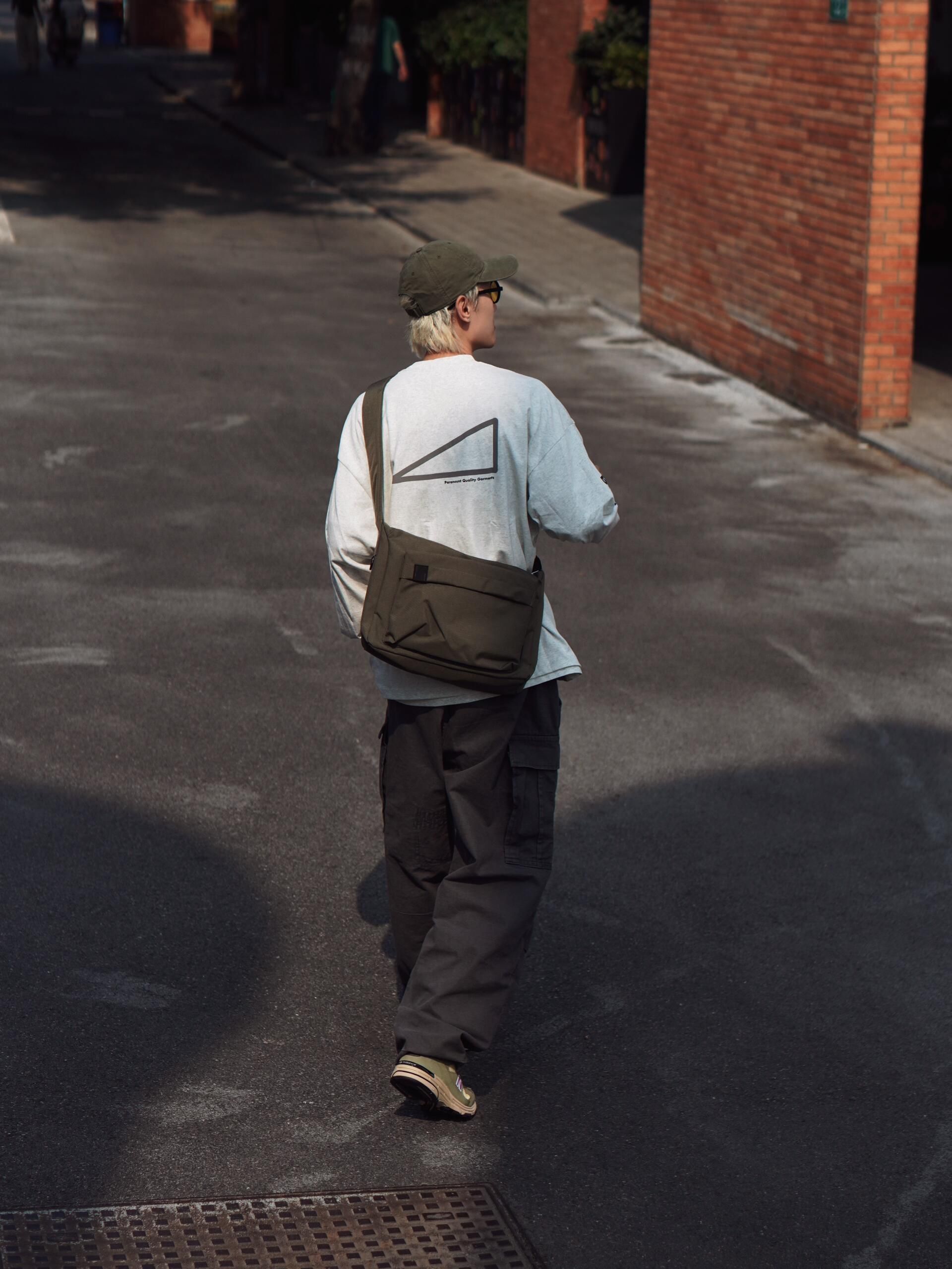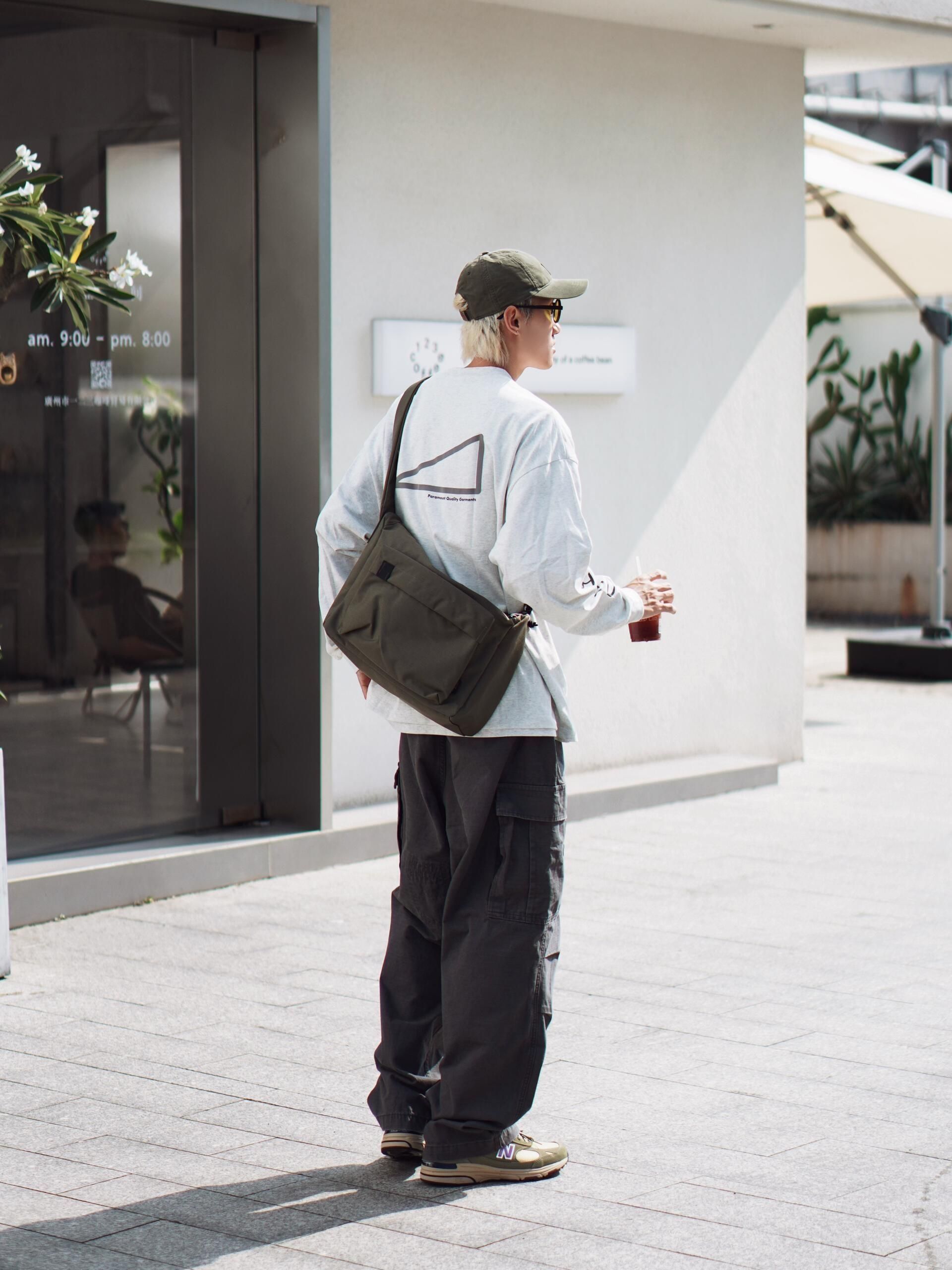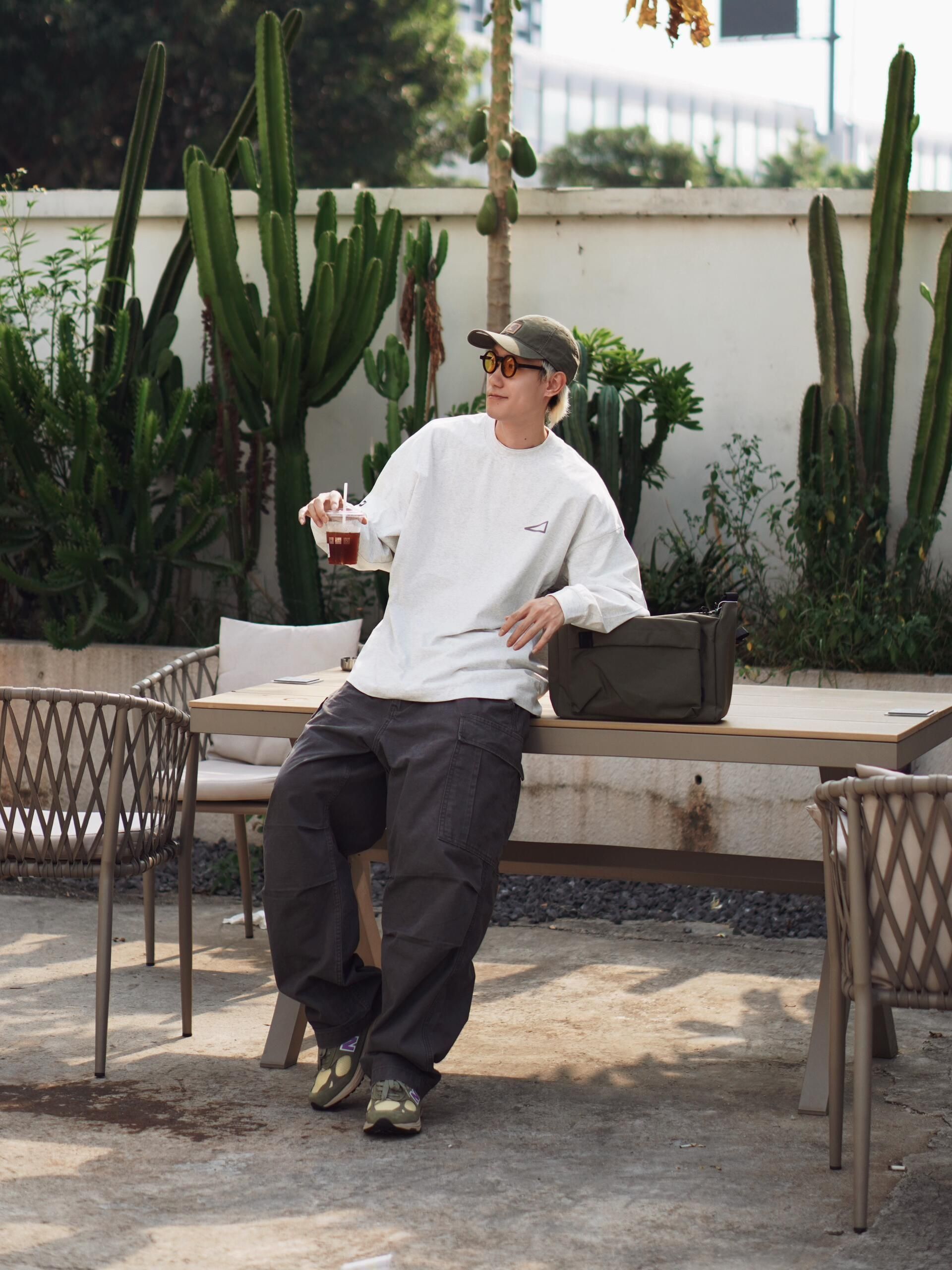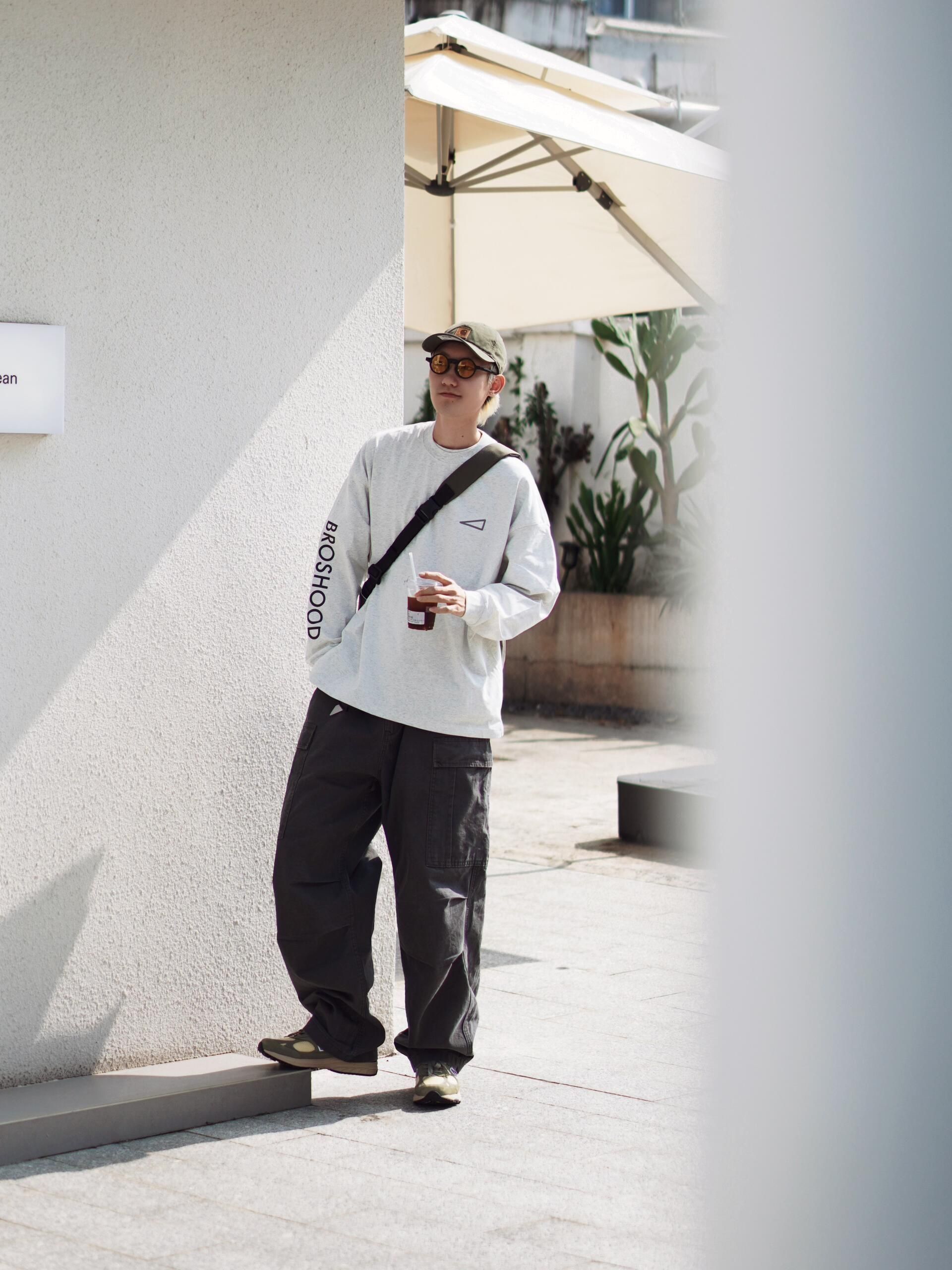 🎈一套慵懒随性的日系工装风穿搭,把秋日的舒适感拉满~ 🎈上衣选了件浅灰色的oversize长袖,宽松的版型自带随性氛围,胸口的小三角标细节感拉满,单穿就很有层次。 🎈下装是深灰色的工装阔腿裤,大口袋设计复古又实用,阔腿的剪裁对各种腿型都很友好,走路带风的感觉谁懂! 🎈搭配了橄榄绿的棒球帽和同色系的老爹鞋,呼应整体色调的同时,让风格更统一。再挎上一个黑色斜挎包,日常出街装个手机、耳机完全...