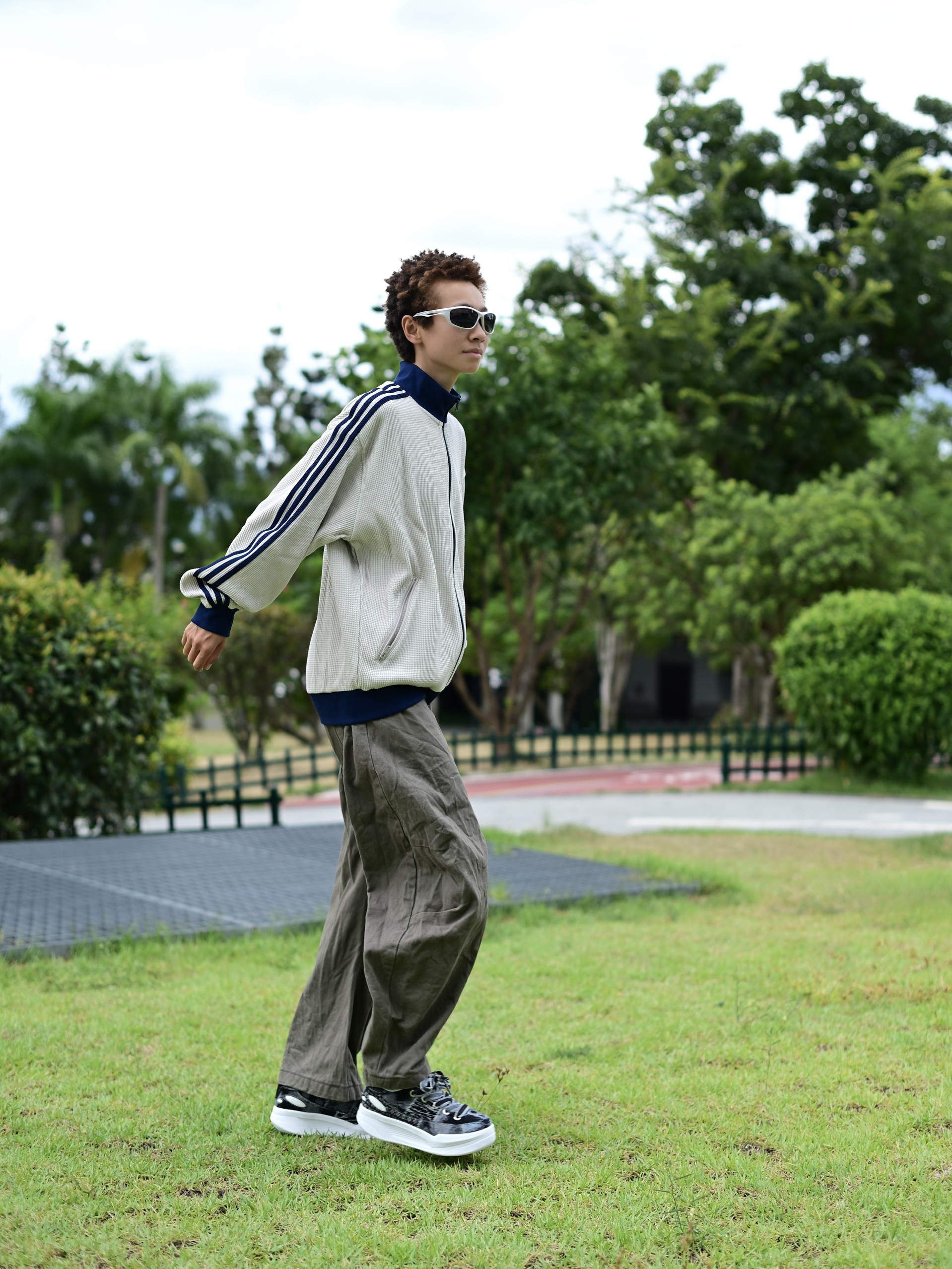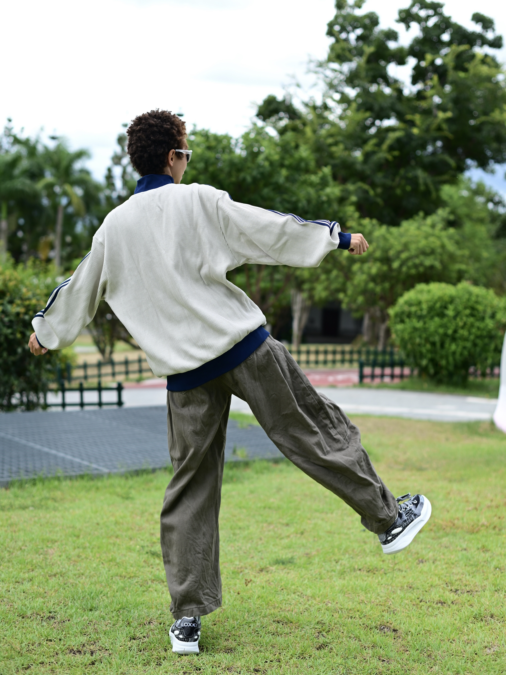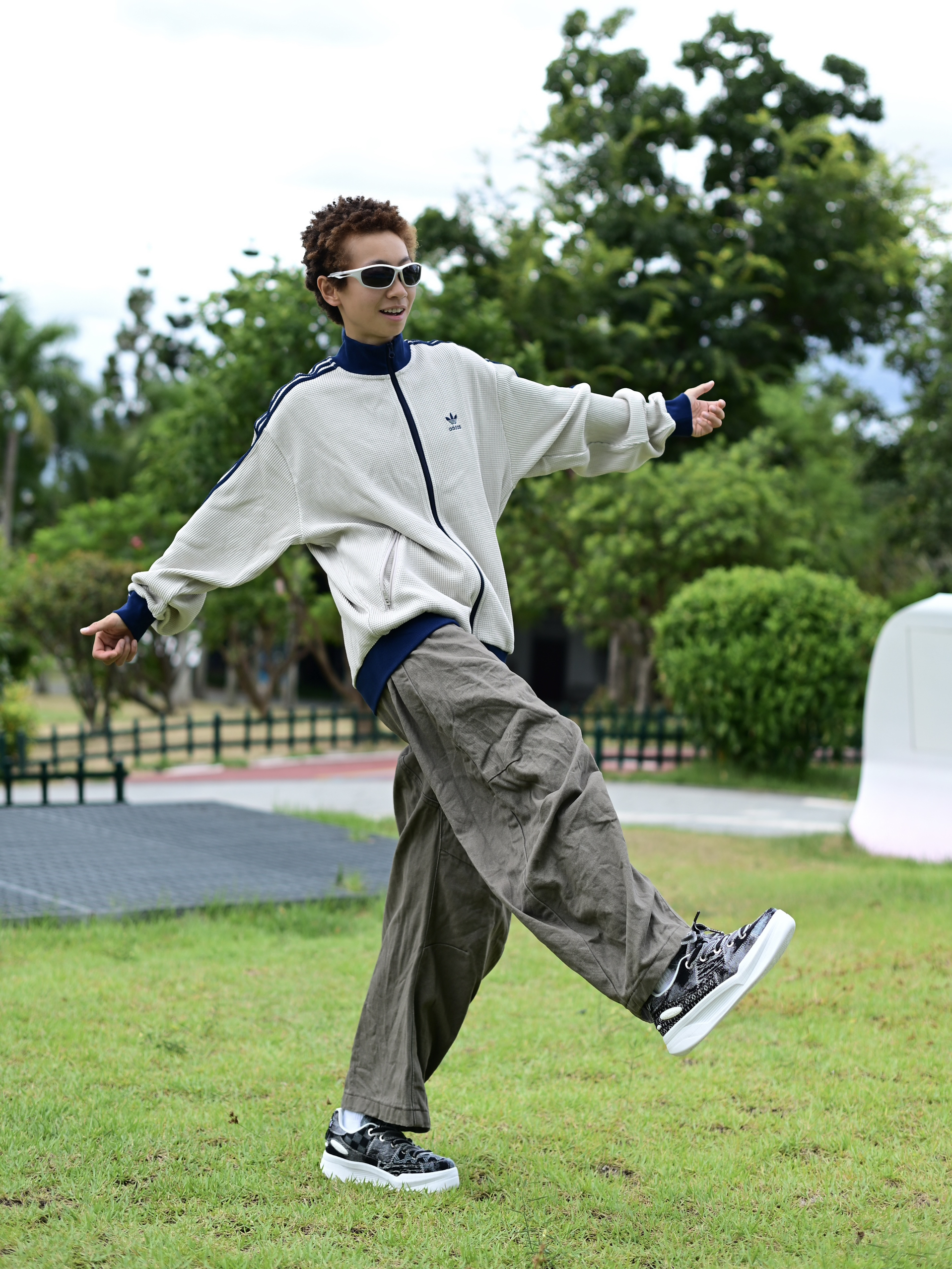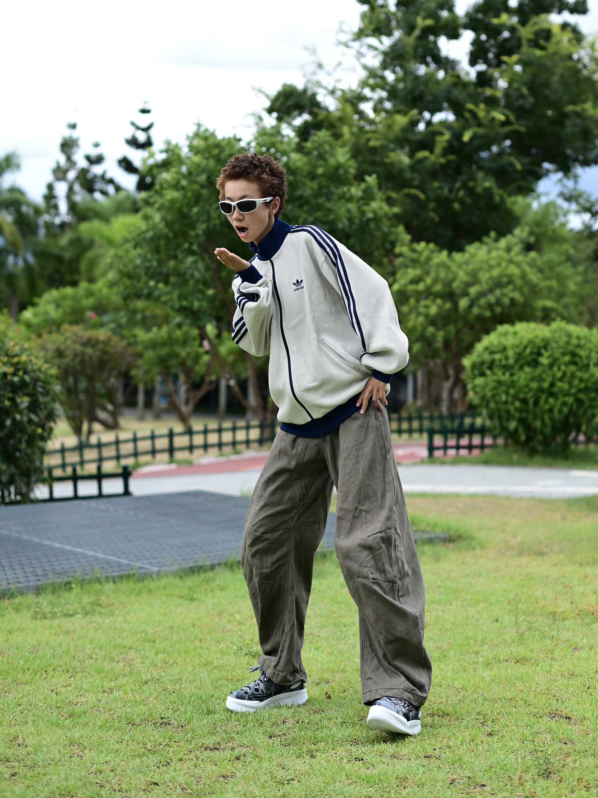 欢迎进入无敌小圆哇子的穿搭分享频道 172CM|55KG 👔:m👖:m|👟:39码 上身复古阿迪外套和弯刀裤轻松穿出90年代复古腔调! 上脚LOXKI Alpha小圆鞋~ 不规则丹宁拼接设计自带复古滤镜 Go 出街!