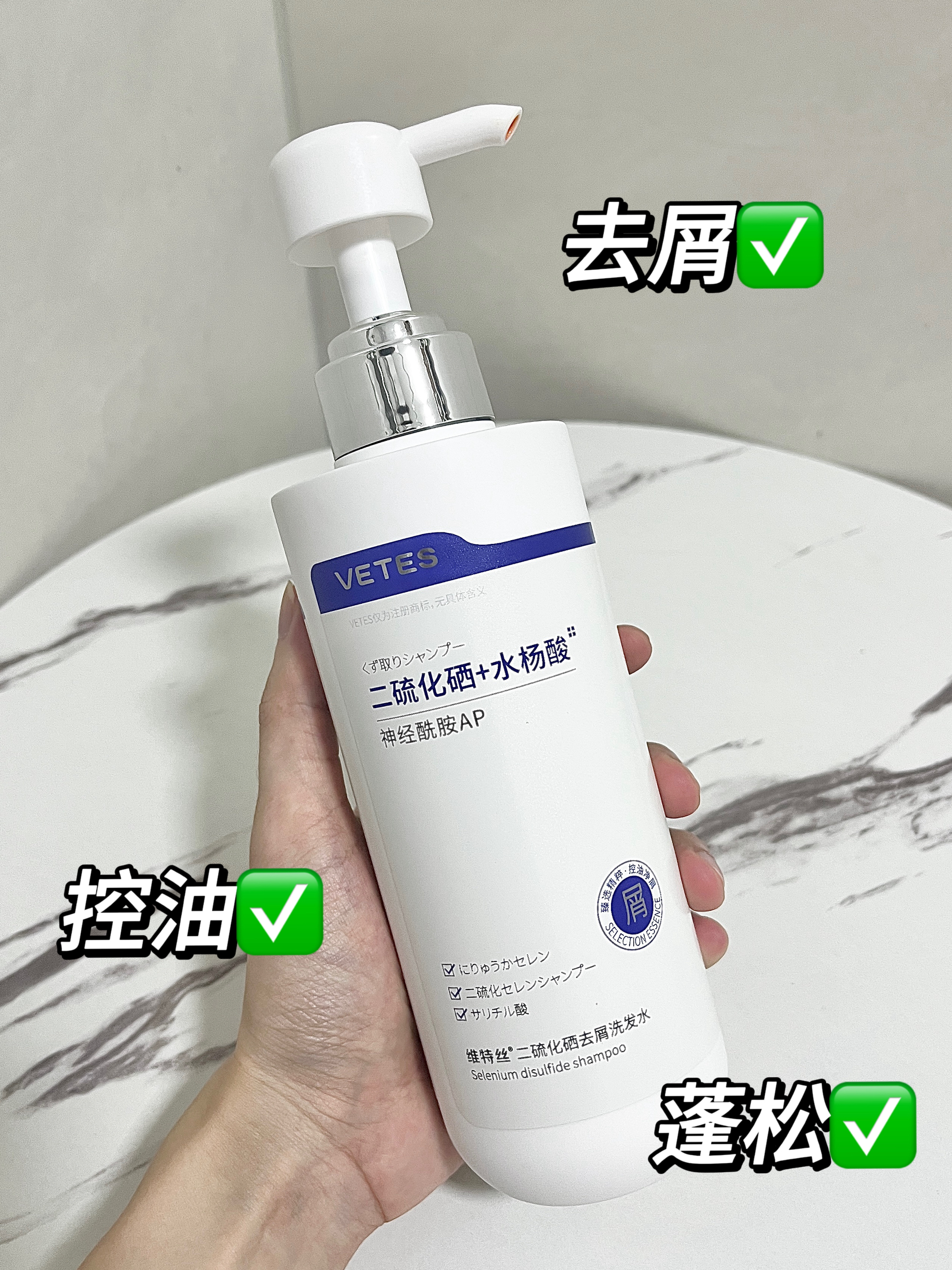 之前头屑老反复,头皮痒得老想抓,头发还爱出油贴头皮,试了好多洗发水都没用。 换维特丝二硫化硒去屑洗发水后终于好了!洗着不刺激,头皮挺舒服。现在头屑基本没了,也不咋痒,洗完能撑到第三天还清爽,头发也蓬松了。500ml挺大瓶,性价比实打实的高~