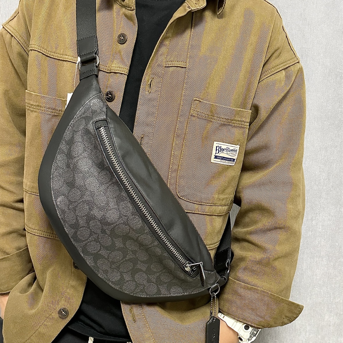 本篇笔记关联了Coach Warren 29 大号 经典老花铭牌拉链开合经典涂层帆布拼牛皮胸包斜挎包腰包 木炭色拼黑色等商品,为用户提供真实的使用体验和购买参考。