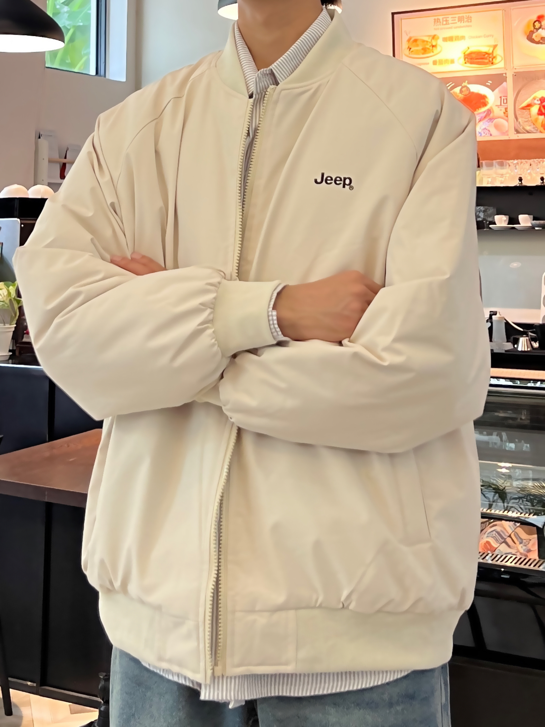 本篇笔记关联了Jeep/吉普 美式棒球领拉链保暖防风棉服 男女同款 P834MWM702 卡其 等商品,为用户提供真实的使用体验和购买参考。
