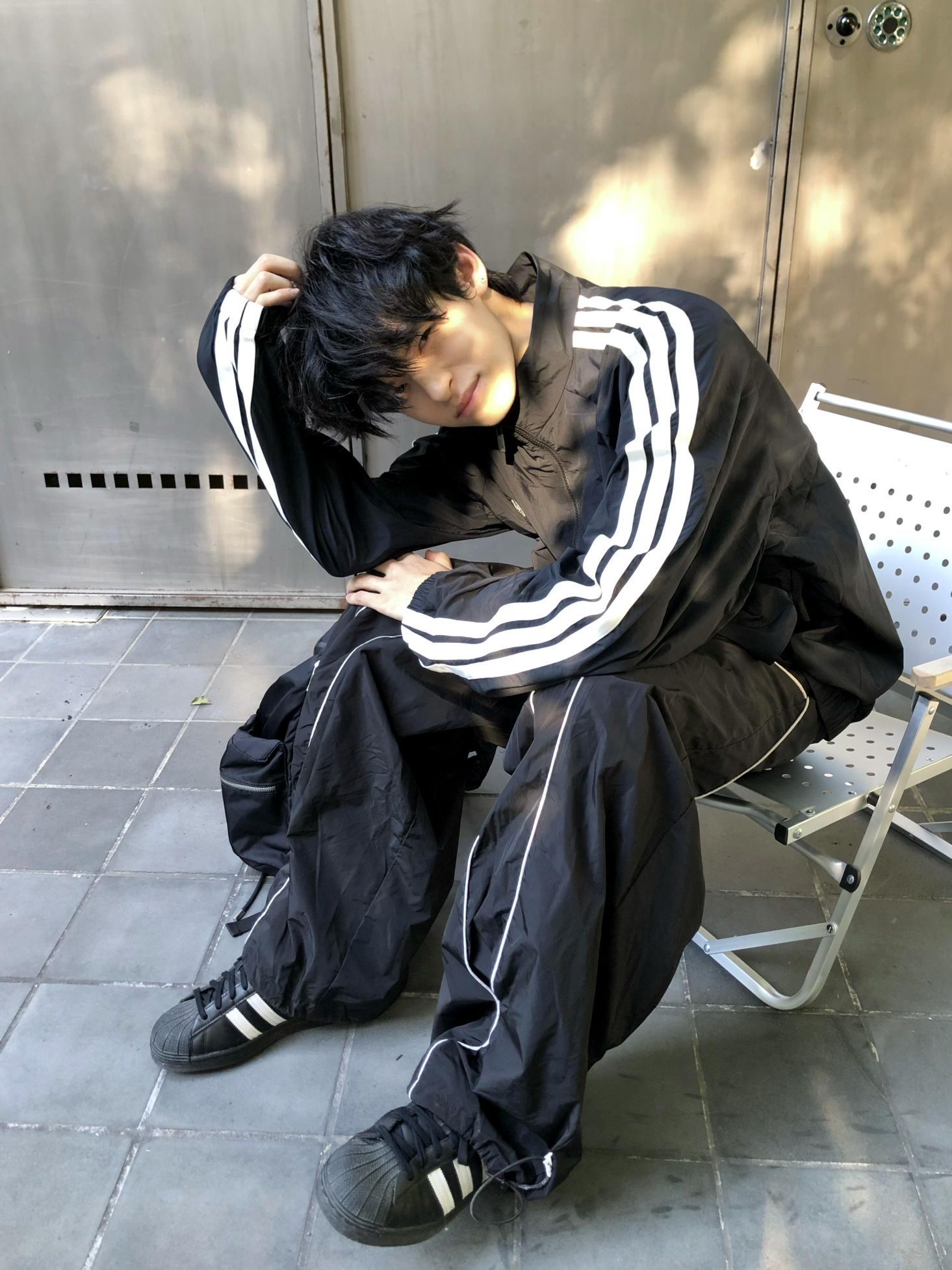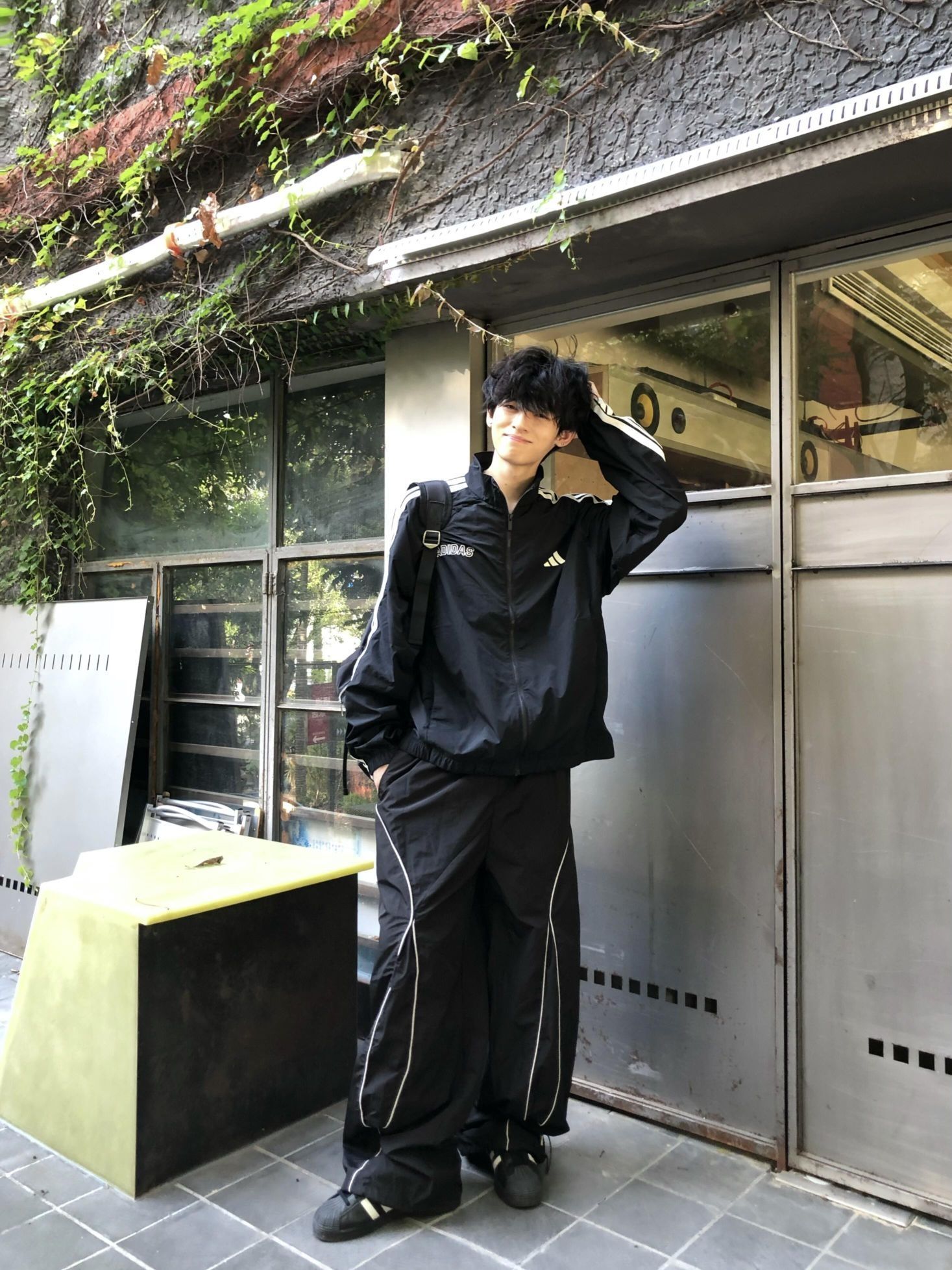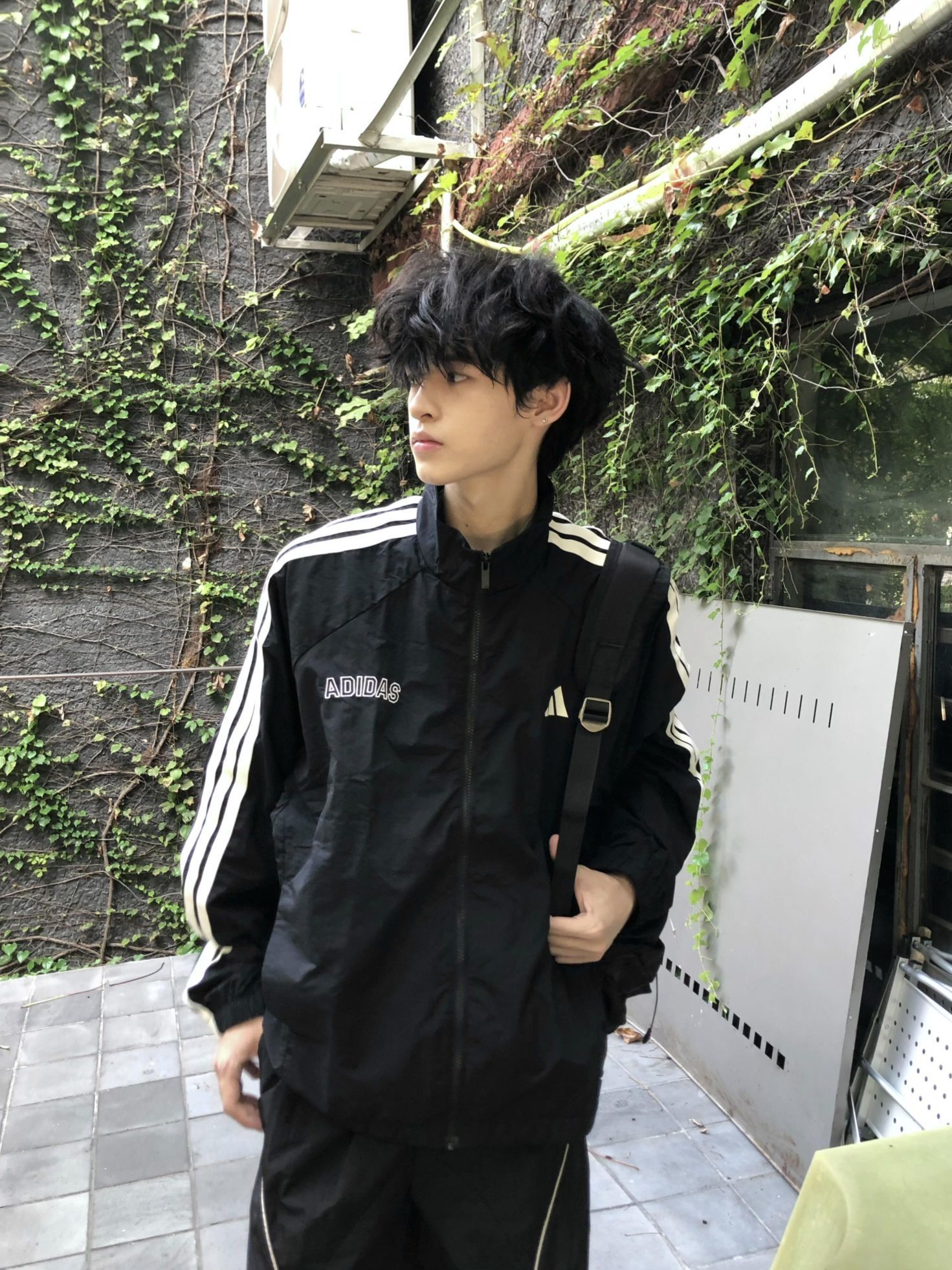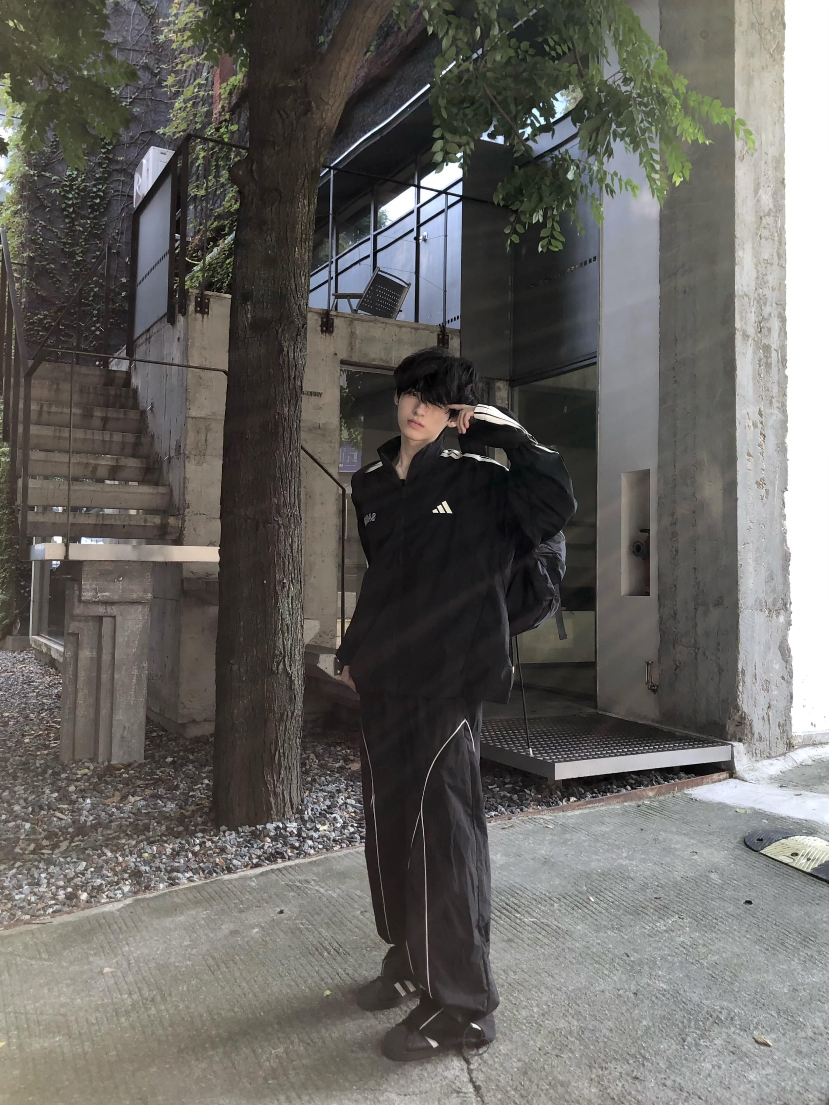 黑武士阿迪套装太绝了! 经典三道杠外套+线条阔腿裤,宽松随性还显腿长,配贝壳头复古感拉满~ 一套搞定穿搭,舒适又潮酷,阿迪男孩日常就是这么简单帅!
