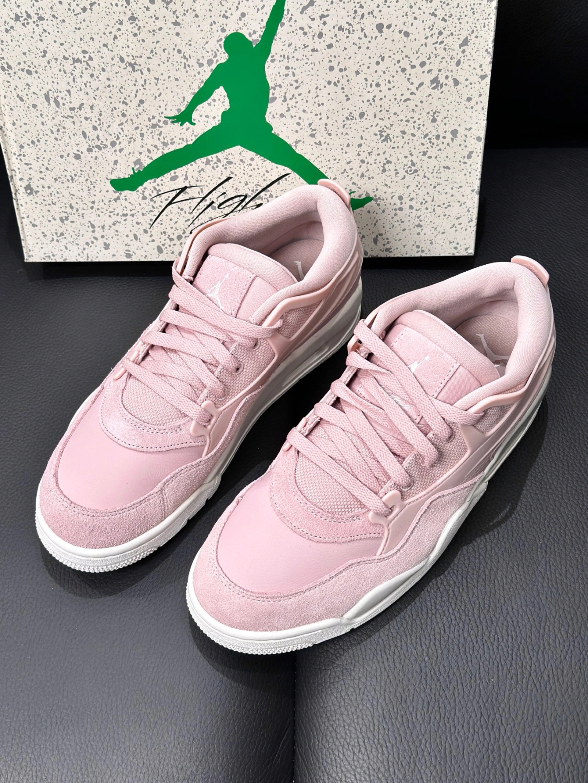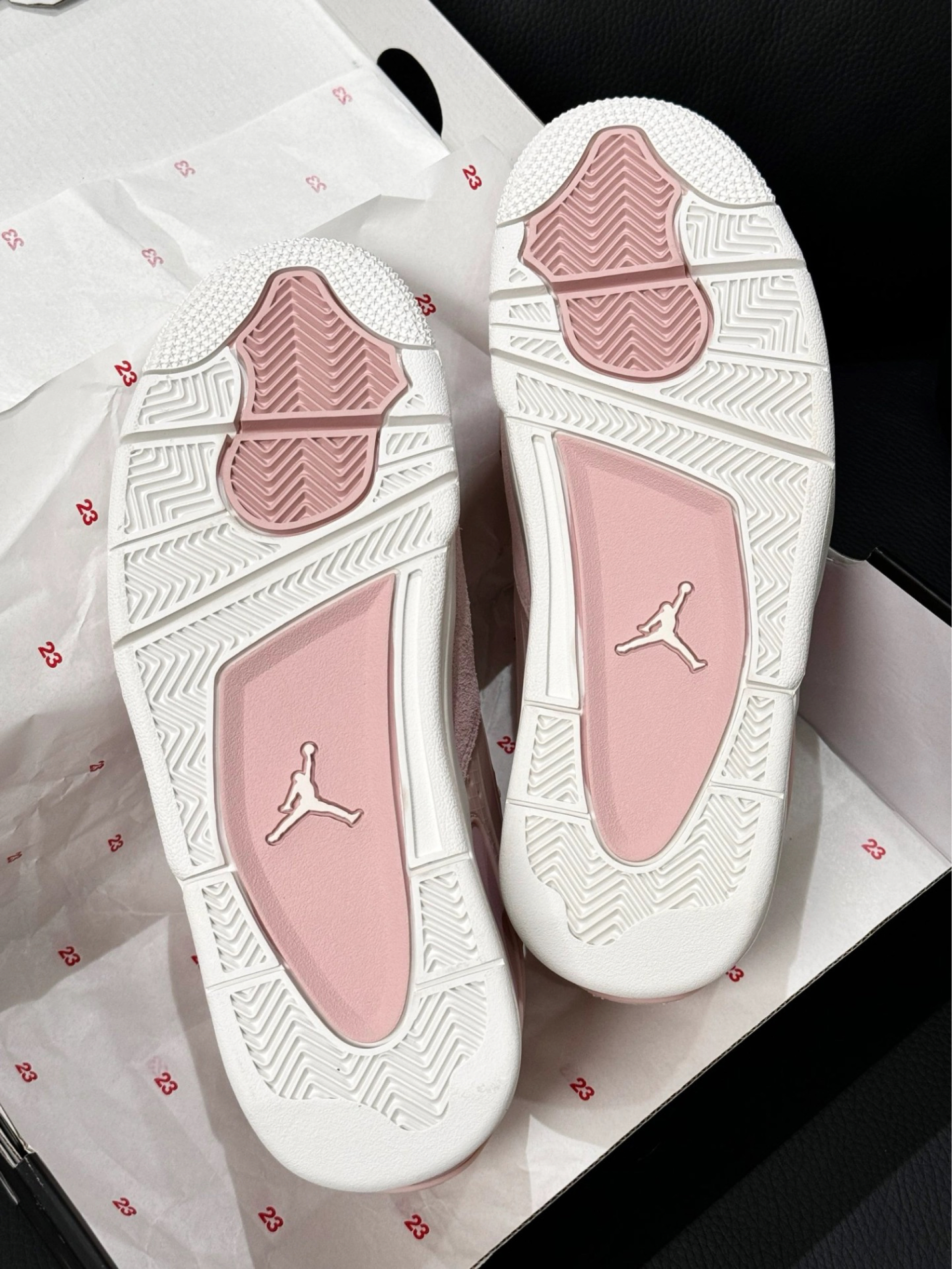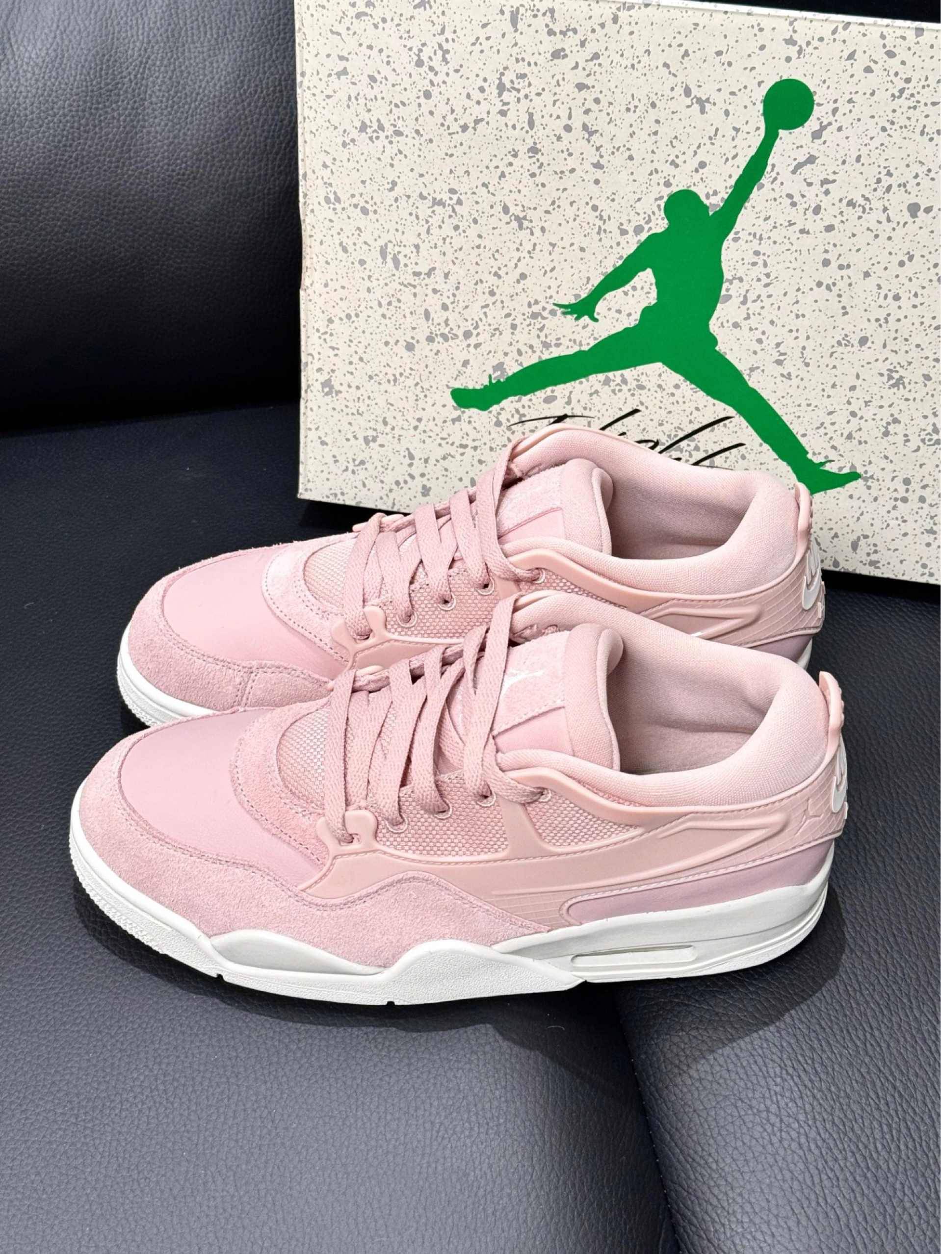 AJ4RM新配色来啦 粉粉的好可爱☺ 一整个心动住了家人们 粉色搭配白色点缀,好温柔啊🎀 鞋面采用翻毛皮和麂皮材质,质感满满 内含气垫,脚感hin好 低帮aj4的鞋型,很适合女孩子穿 这个秋天很难不爱啊