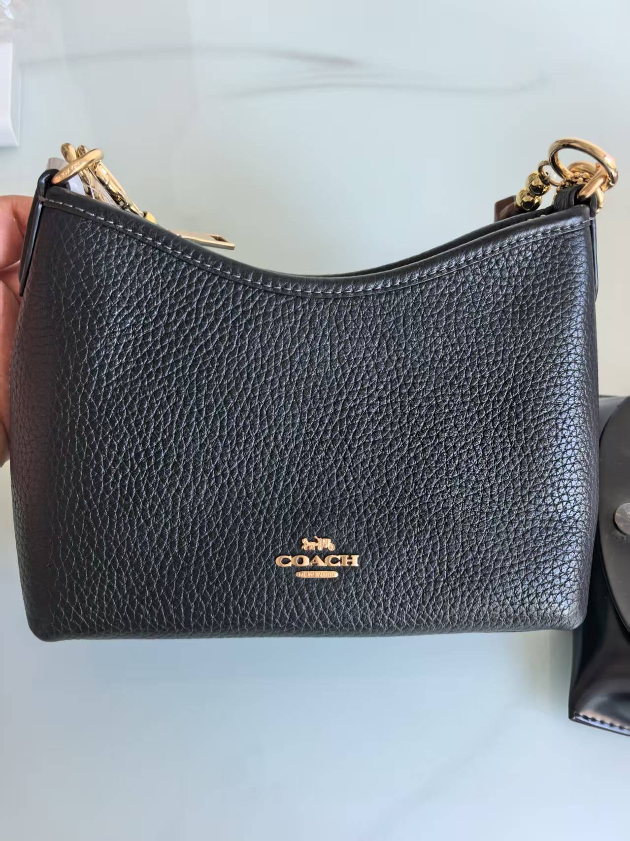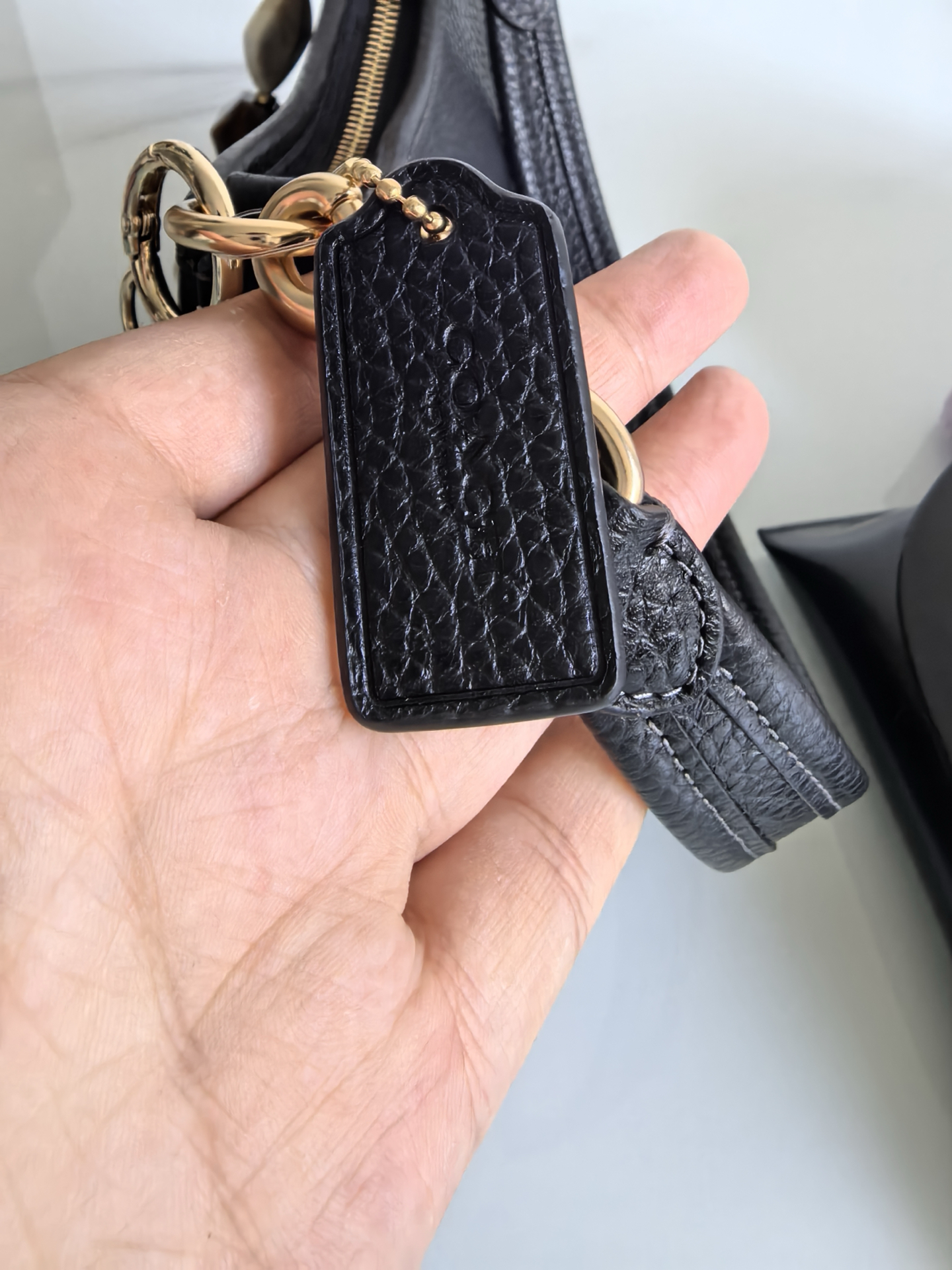 姐妹们,COACH的审美真的很在线唉! 这款COACH Laural 19绝对拿捏时尚感和气质, 这款一改经典马车老花满印,而且纯黑色荔枝纹,加上金属logo,背上气质100➕! 黑色荔枝纹不易有摩擦痕且气质柔软,不易有褶皱,还非常耐脏喔。 这款内容量还是蛮大的,十一放假🏖️背着粗去耍也相当不错哒。 我还给配了个小配饰,嘿嘿,增加了点珠光宝气
