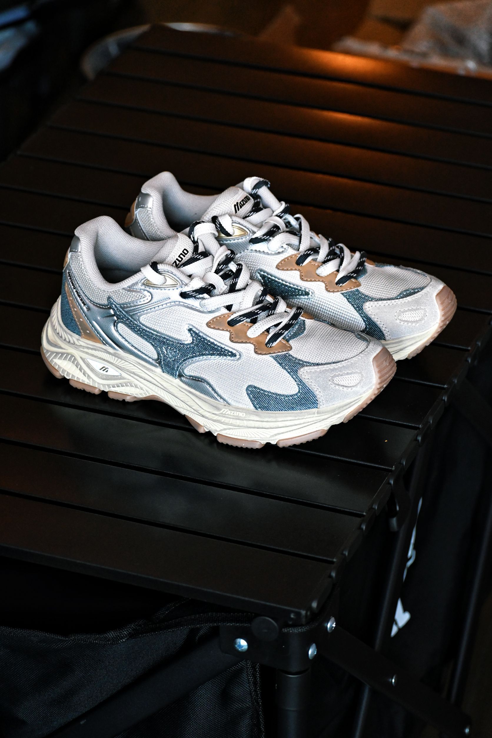 终于等到了Mizuno Racer S 的牛仔蓝版本 实物的颜值是出奇的高 Racer s本身就是一个非常复古的慢跑鞋版型,白蓝的鞋面搭配一个奶白中底,整体非常的清爽 鞋身很轻,比较适合拿来日常通勤,双鞋带的设计也很有创意 搭配身日系穿搭出门,复古街头感这不就来了吗
