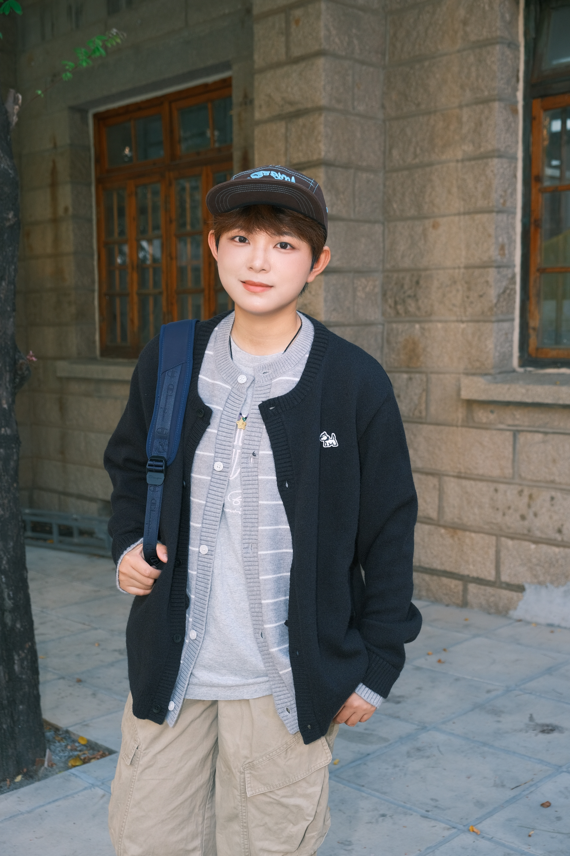 周末出门瞎逛就该这么穿!😎 今天主打一个“舒服到不想回家”的随性风~ 黑色针织开衫叠穿灰色条纹内搭,慵懒感直接拉满✨ 卡其色工装裤的大口袋装个耳机、钥匙啥的,不要太方便! 重点是我这只藏蓝拼灰的书包🎒,容量大到能塞下我的小水壶和漫画书,背起来还贼轻,配这身look简直是校园剧男主既视感! 棕色大头鞋一蹬,帽子一戴,走在路上都觉得自己活力值爆棚🚶♂️ 这种舒服又有范儿的穿搭,周末逛公园、压马路绝...