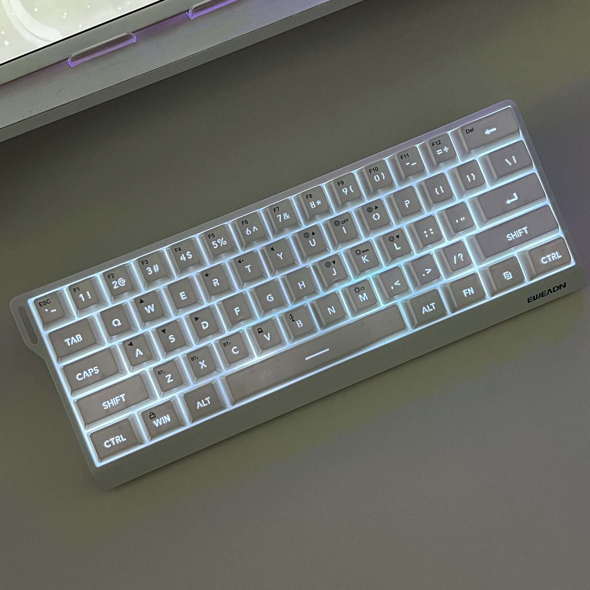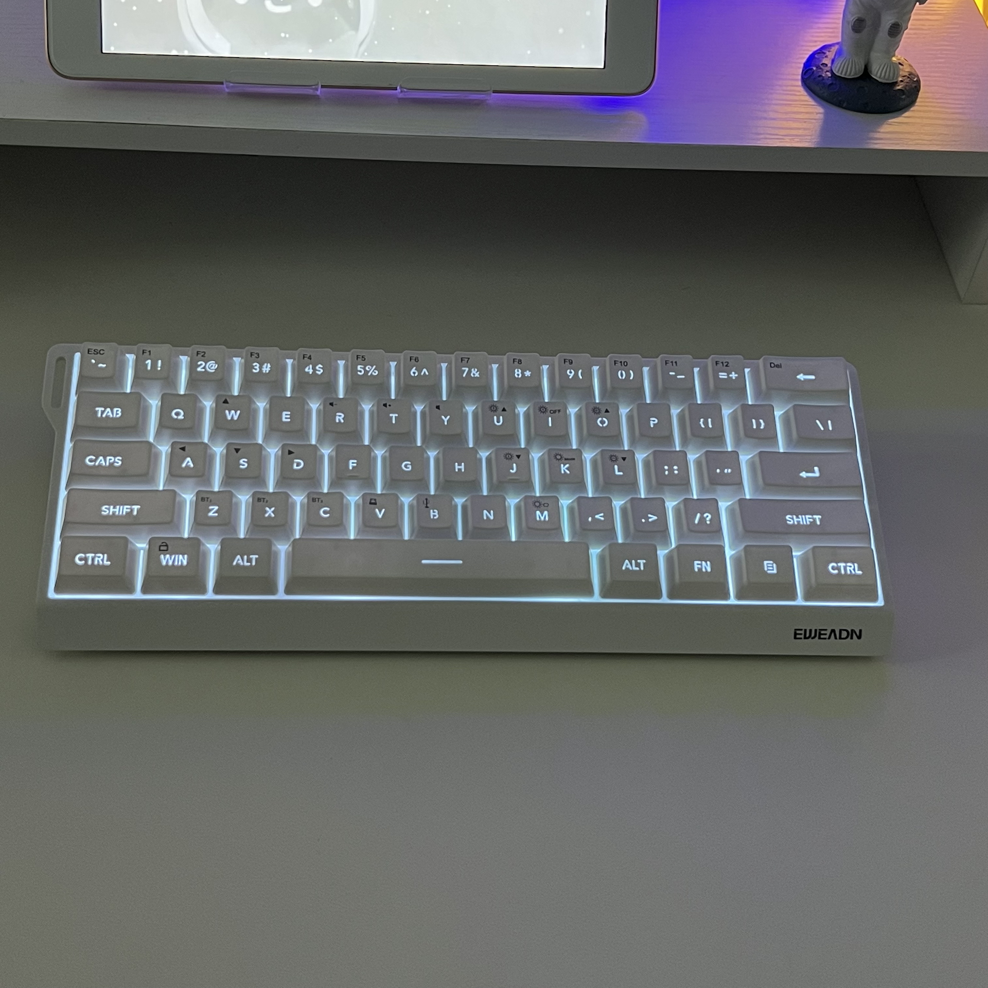 我入手这键盘后,办公都变快乐啦~61键小巧便携,放桌上不占地方,还有炫彩灯效,加班都不觉得累!三模连接很方便,就是没有手托长时间打字手腕有点酸🥲 但整体真的香!