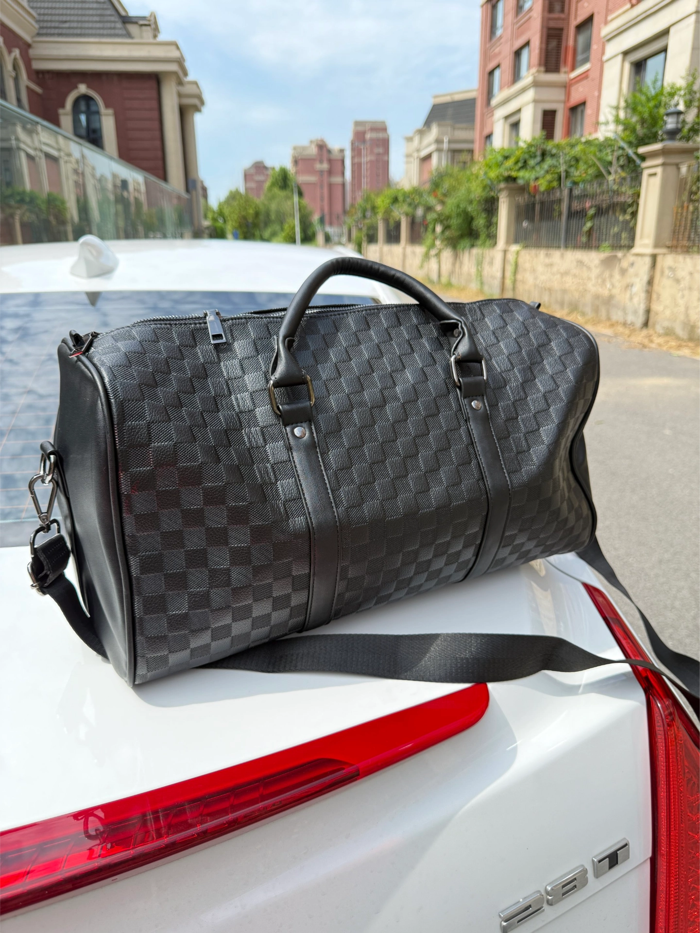 宝子们,我发现棋盘格元素真的是穿搭神助攻!最近入的这款斜挎包,PU皮质棋盘格好有质感,包型立挺不软塌,短途旅行装东西完全ok~自己背帅,送男友也很合适😎 不过单肩背久了肩带有点勒,咱就是说有利有弊吧~搭工装风绝绝子,初秋氛围感直接拉满,感觉我也能当穿搭博主啦hhh🥳