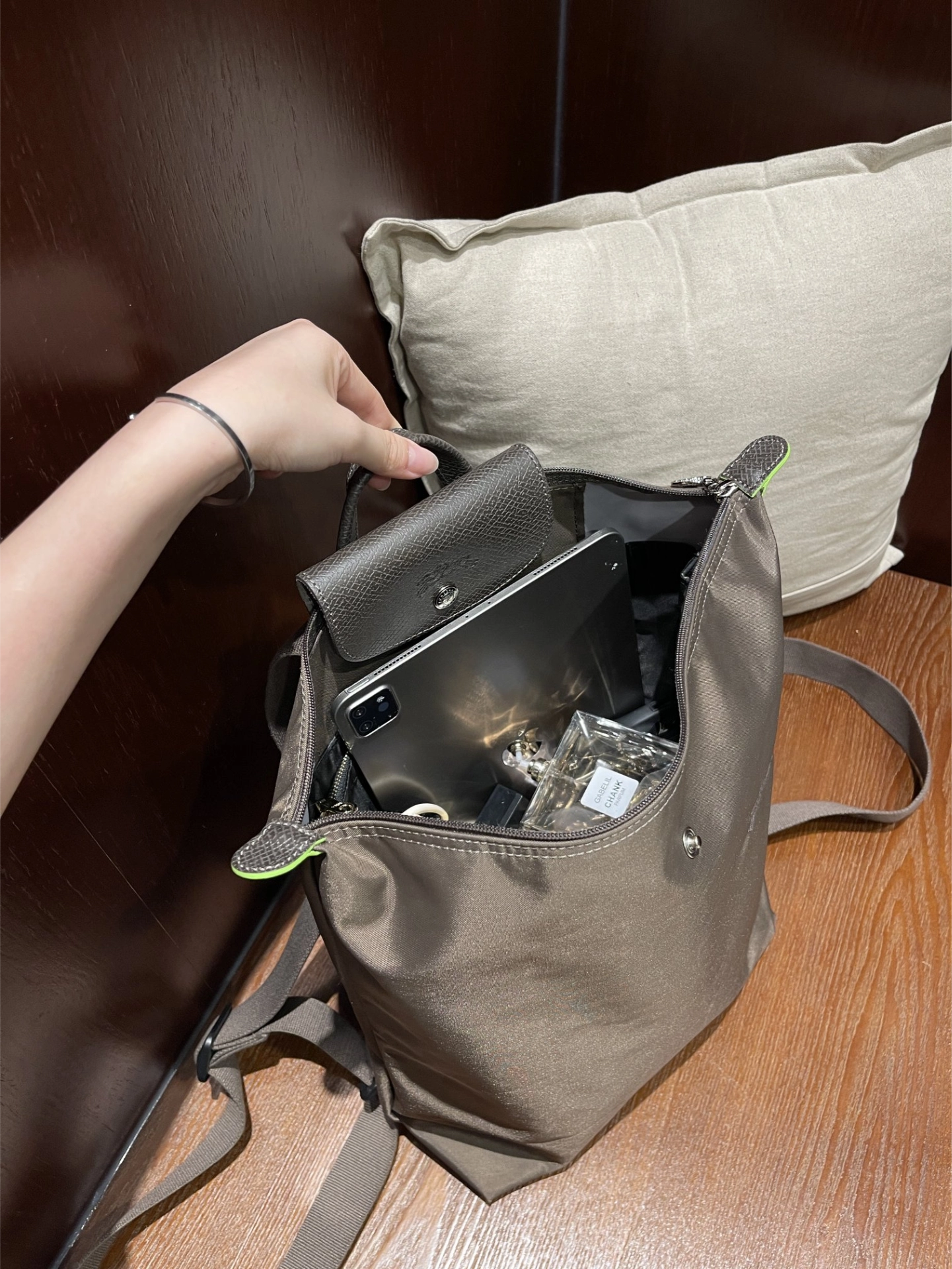 珑骧双肩包真的很能装~容量也很适合日常出门 但是作为处女座真的很难忍受包包内里杂乱无章的 所以几乎容量大一点的包包我都会配个内胆包 我之前也有给包包搭配过其他材质内胆 但是效果都没那么显著 这次入手的是杜邦纸内胆 也是第 1次尝试这种材质的内胆 这个内胆包的尺寸刚刚好 成功的撑起了包包 这样包包不放东西的时候也不会软塌塌的了~