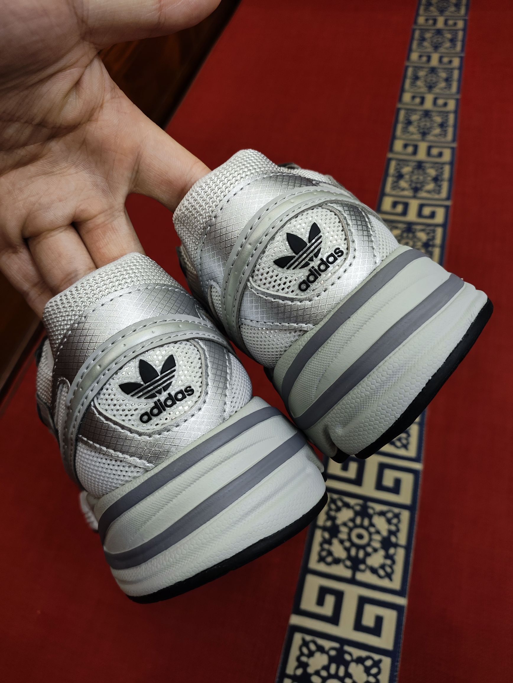 这双银灰复古鞋真的没人懂它的美吗?😩 我觉得这双鞋真的超可!银灰配色又复古又有未来感,谁穿谁好看! 💕 配色:银灰调yyds!自带复古未来感,像从千禧年穿越而来~美式复古风搭牛仔裤绝了👖,甜酷混搭风配小裙子也超可👗,轻松hold住多种风格~ 🌟先讲讲优点🌟 • 材质:鞋面是织物与皮革拼接,大面积透气网布透气性拉满,夏天穿也不闷脚🌬️;厚底设计悄悄拉长腿线,视觉上直接变身腿精本精,中底还是E...