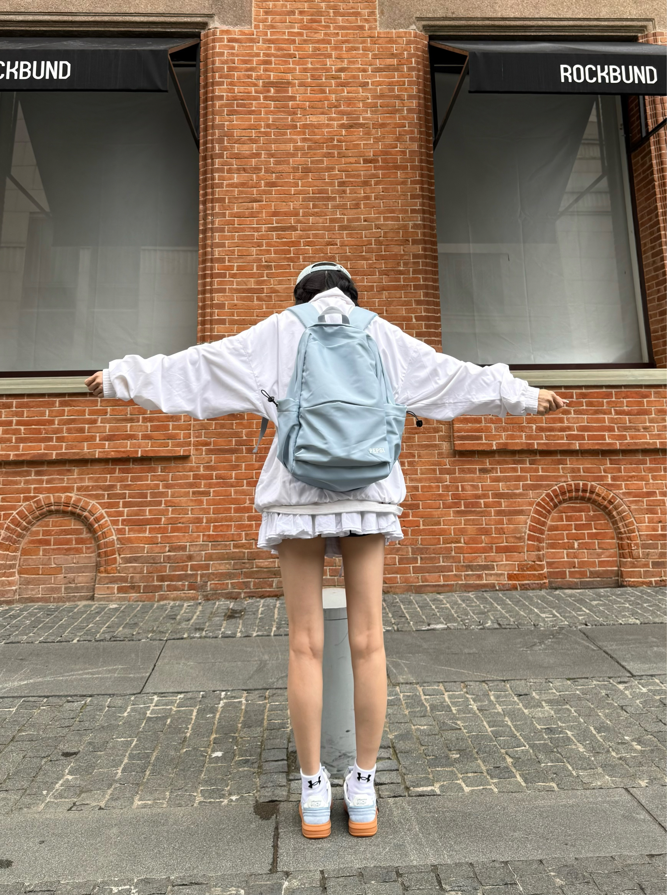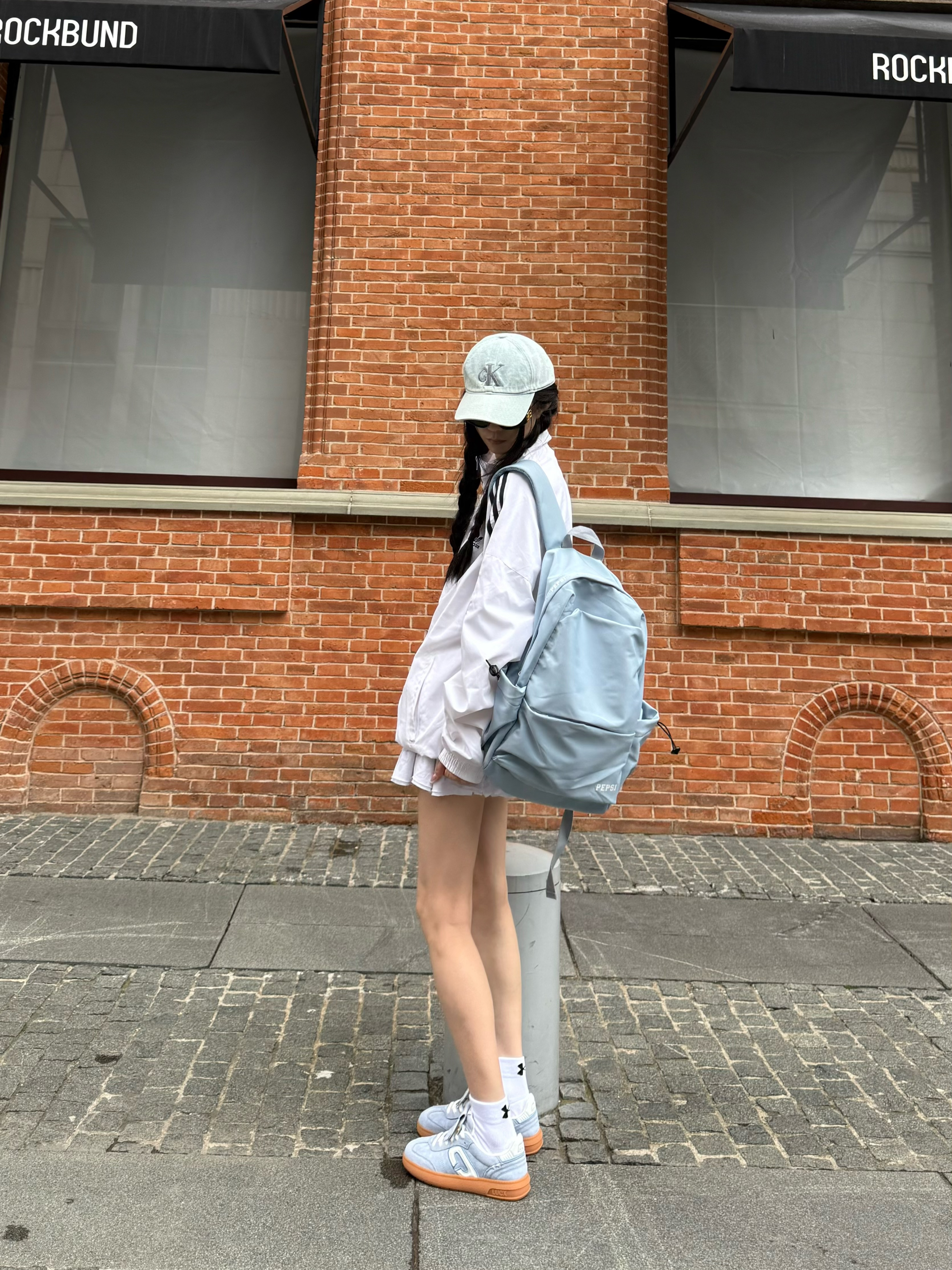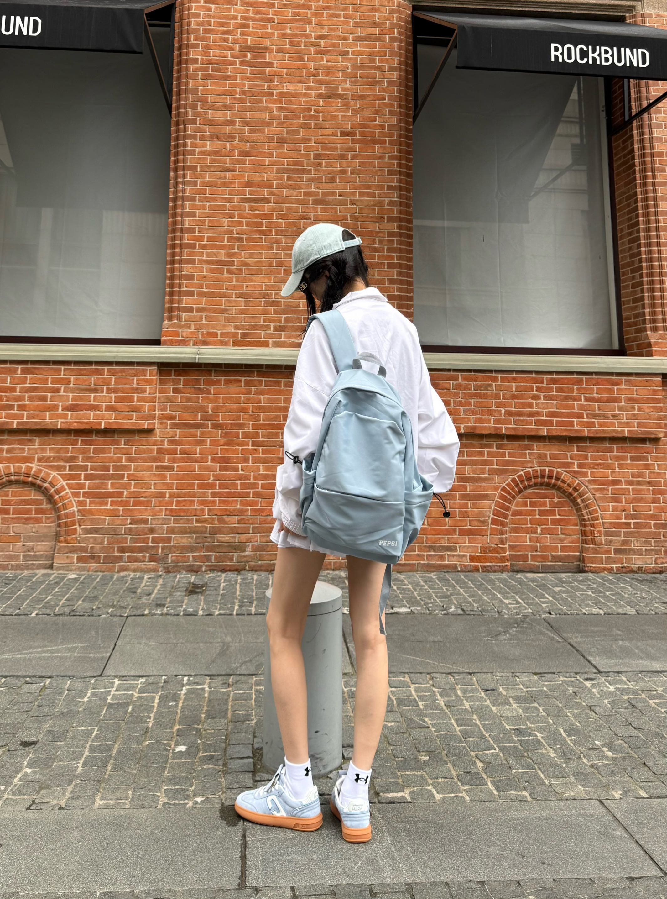 蓝色控狂喜 颜色也很适合早秋穿搭 朋友跟在我后面 说颜色好清爽干净 搭配阿迪外套➕白色蛋糕裙一套干干净净的出门啦 电脑雨伞都可以放下 实用主义妥妥的