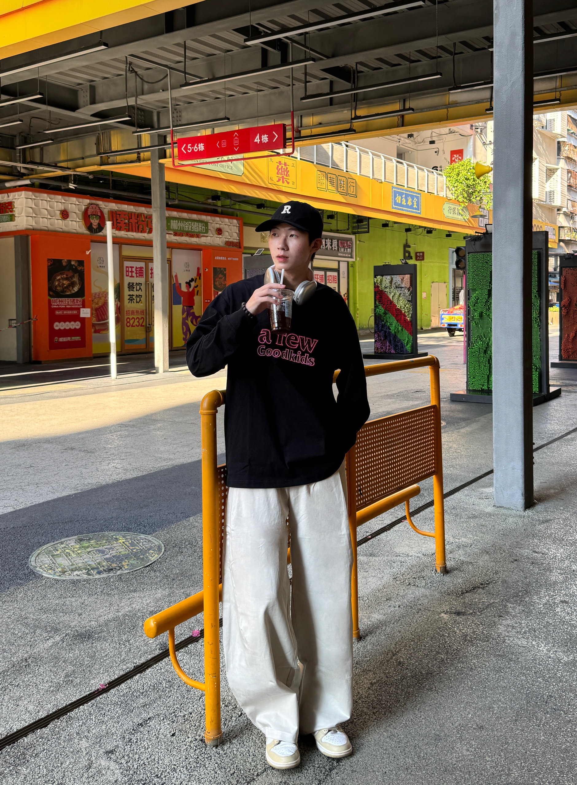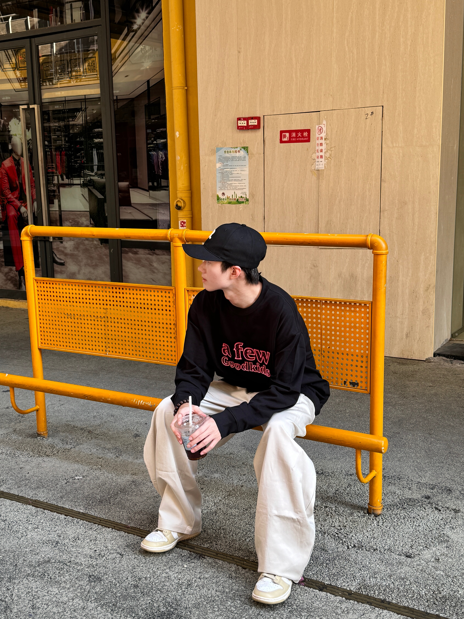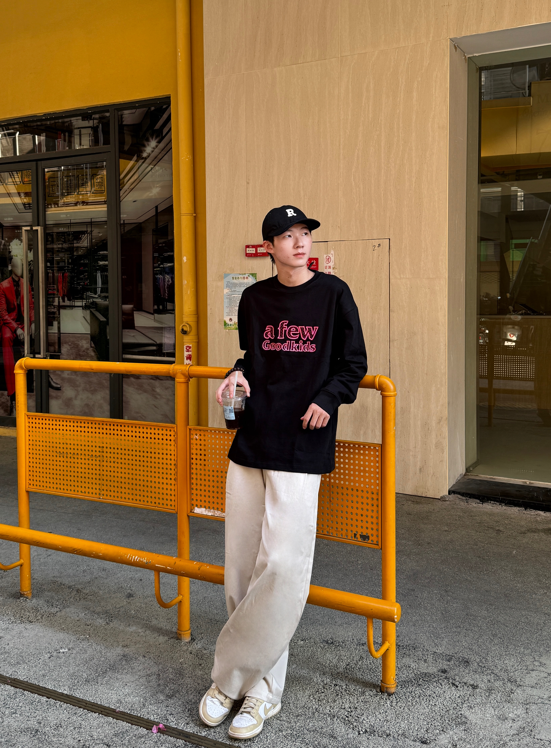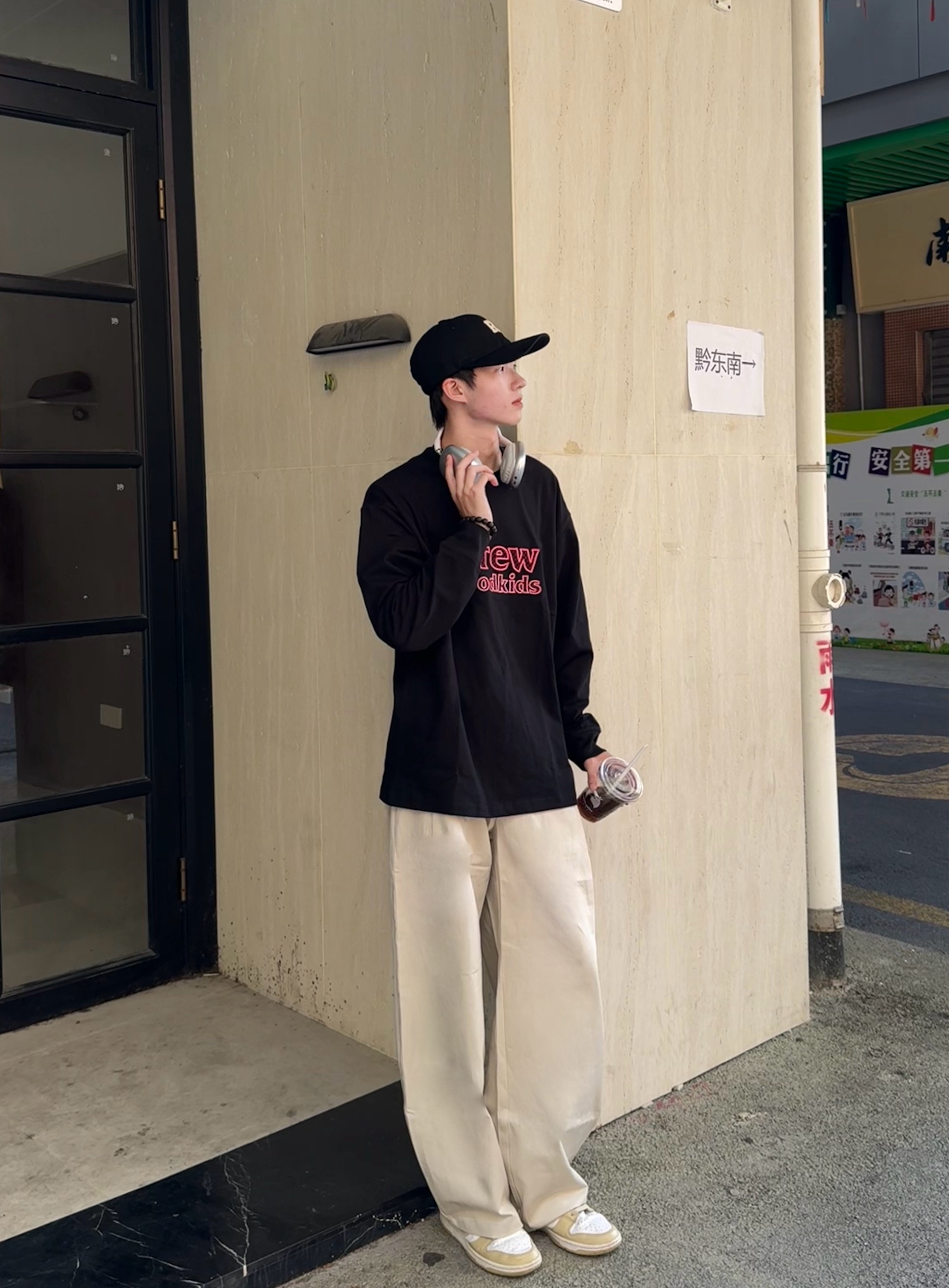 出街干干净净就很帅啦 黑色卫衣是那种软糯重磅棉 简约logo低调有质感 版型宽松不拖沓~ 配上米白色复古直筒裤 帆布材质自带慵懒感 裤脚微堆氛围拉满 黑白配永远的神 清爽又高级的日常感 谁穿谁好看👌🏻